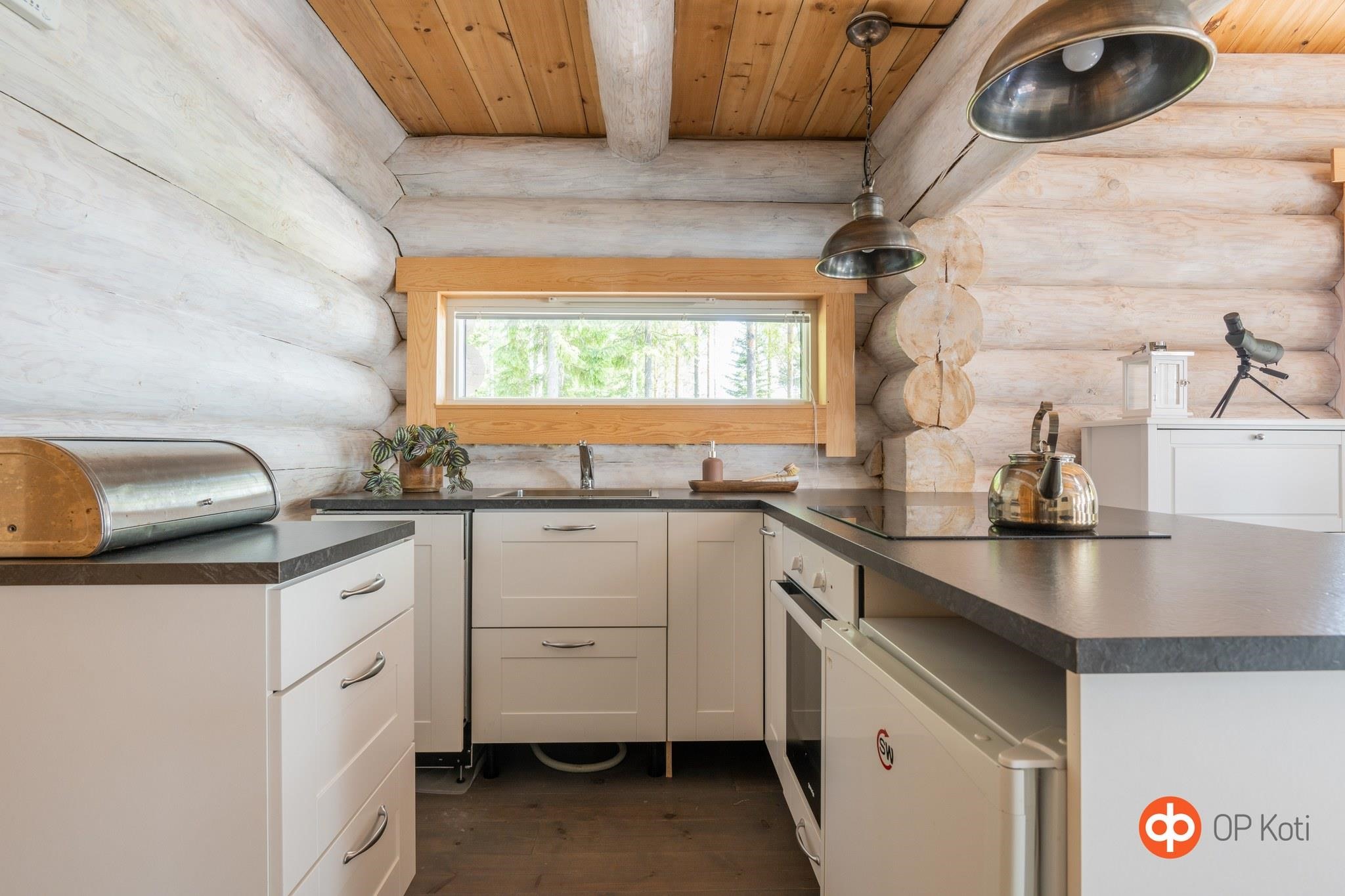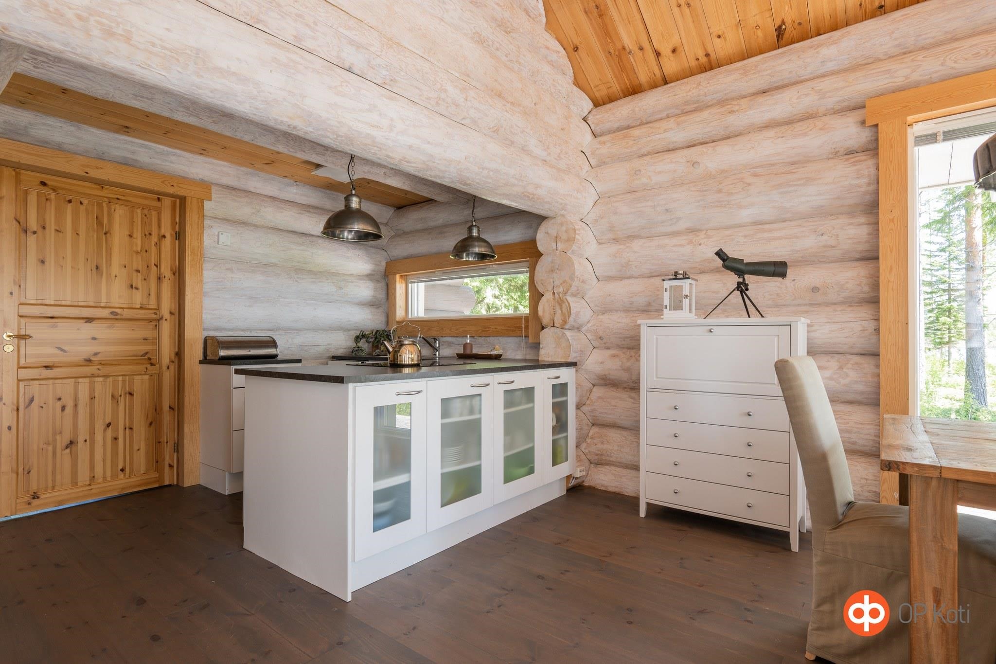 Käsinveistetystä hirrestä rakennettu, erittäin siistikuntoinen mökki on valmistunut 2014 ja tarjoaa paljon viihtyisää asuintilaa. Tupakeittiö, kaksi makuuhuonetta, erillinen wc sekä tunnelmallinen parvi soveltuvat niin perheille kuin ystäväporukoille. Puulattiat ja hirsiseinät luovat lämpimän tunnelman. Erillinen sauna puukiukaalla, pukuhuone ja integroitu ulkopalju kruunaavat rentoutumishetket.