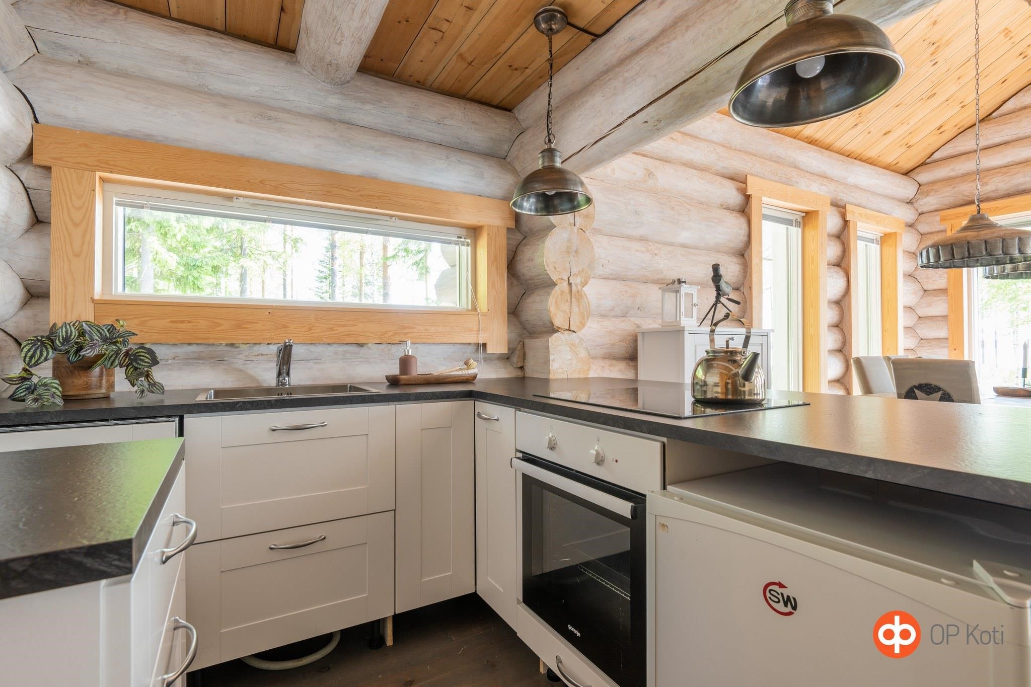- Jääkaappi, erillisuuni, liesitaso, kaapistot, kiinteät valaisimet.