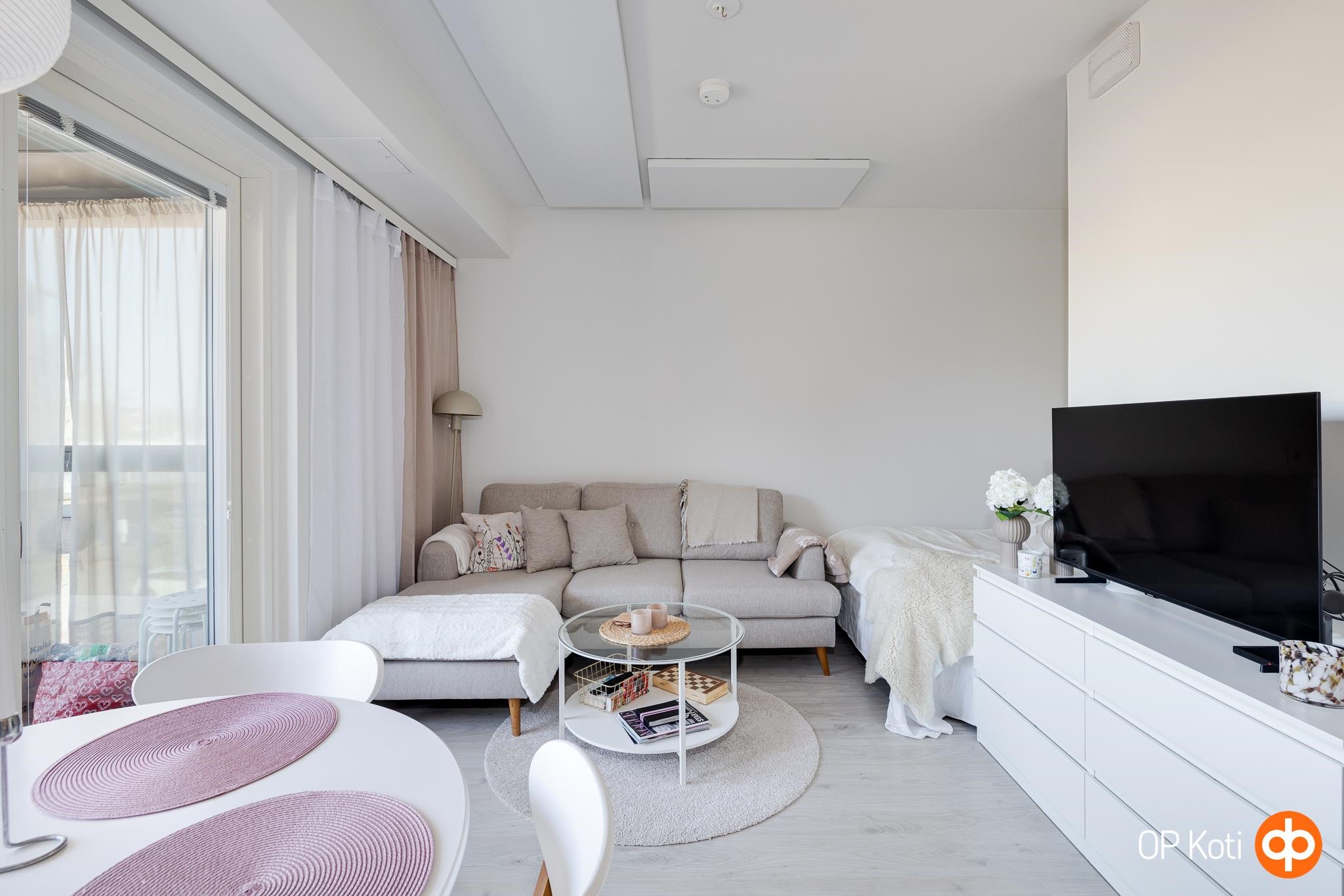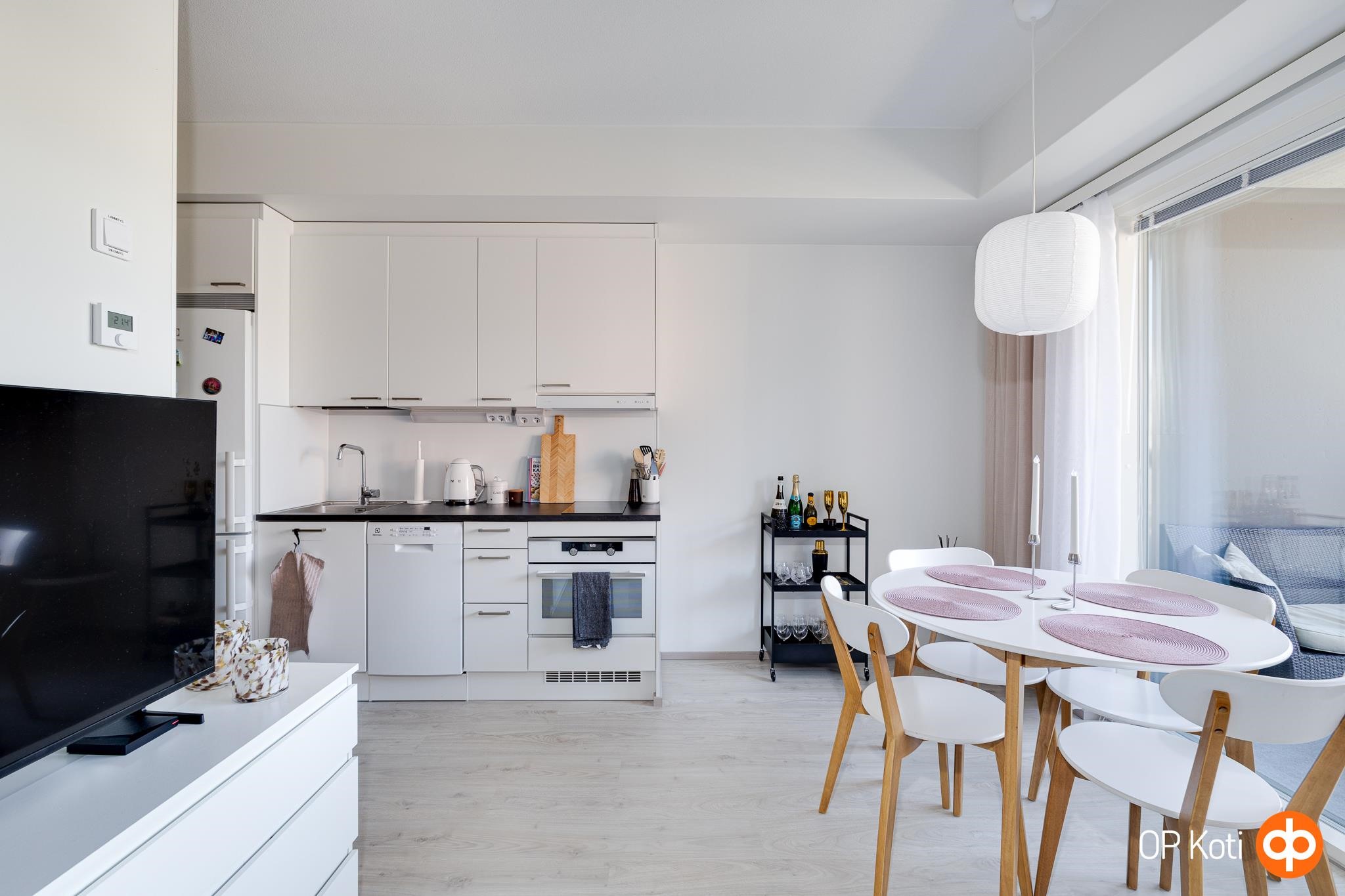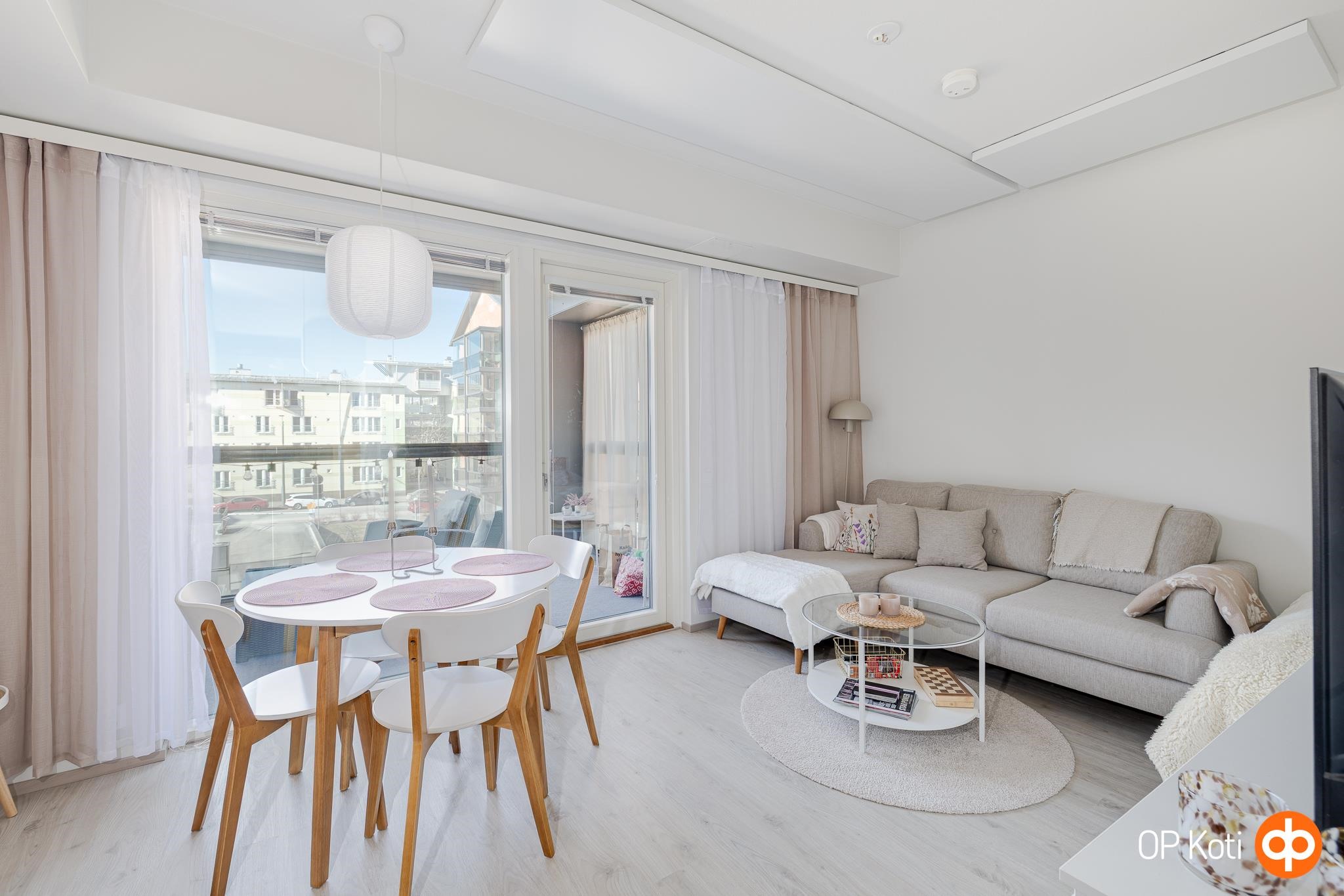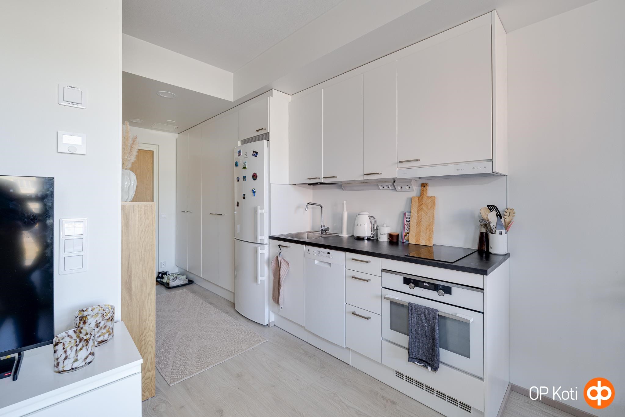 Tämä moderni ja valoisa yksiö tarjoaa toimivan kodin niin kaupunkielämää arvostavalle asukkaalle. Huoneiston avara pohjaratkaisu yhdistää olohuoneen, keittotilan ja makuualkovin saumattomasti, luoden tilaan ilmavuutta ja monipuolisia sisustusmahdollisuuksia. Oma sauna tuo arkeen ripauksen luksusta, ja iso, lasitettu länsiparveke tarjoaa mukavan paikan rentoutua ilta-auringossa. Säilytystilaa löytyy peililiukuovikaapista ja kellarikomerosta, mikä tekee arjesta sujuvaa. Asuntoon kuuluu myös ovipuhelinjärjestelmä kameralla ja tietoliikenneyhteys sekä mahdollisuus ostaa autopaikka omilla osakkeilla vh. 7 500 €. Asunnossa vuokralainen ja huoneisto vapautuu 1.6.