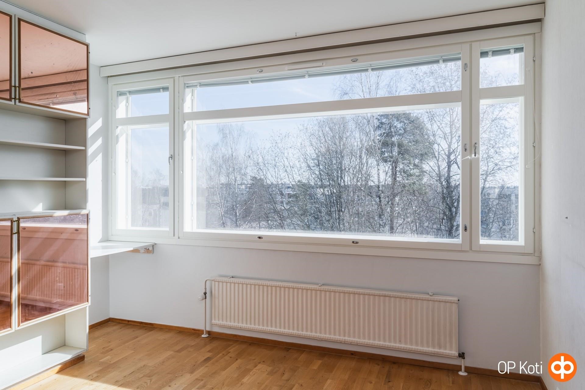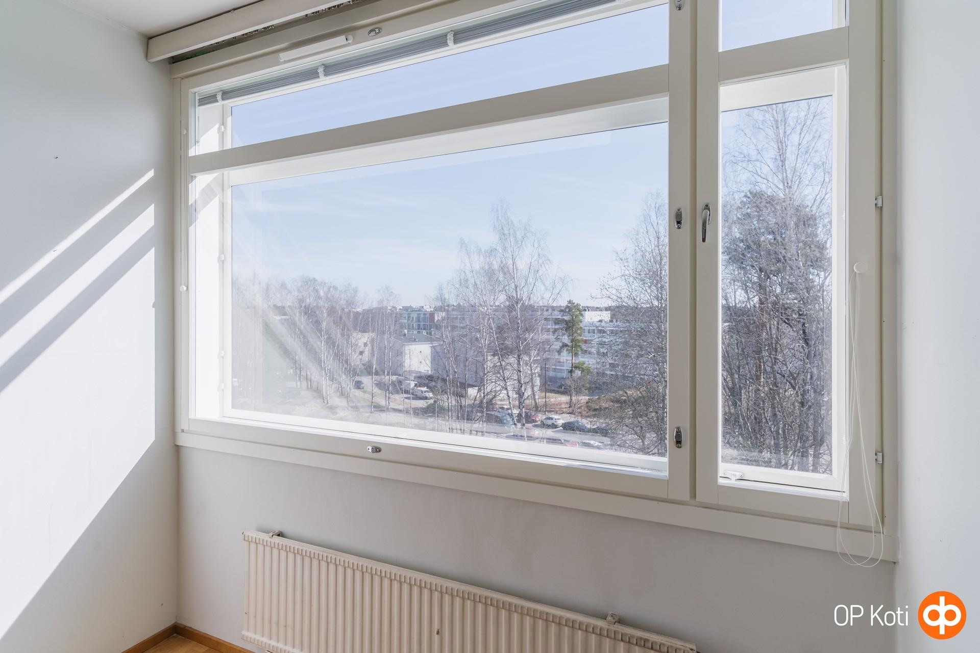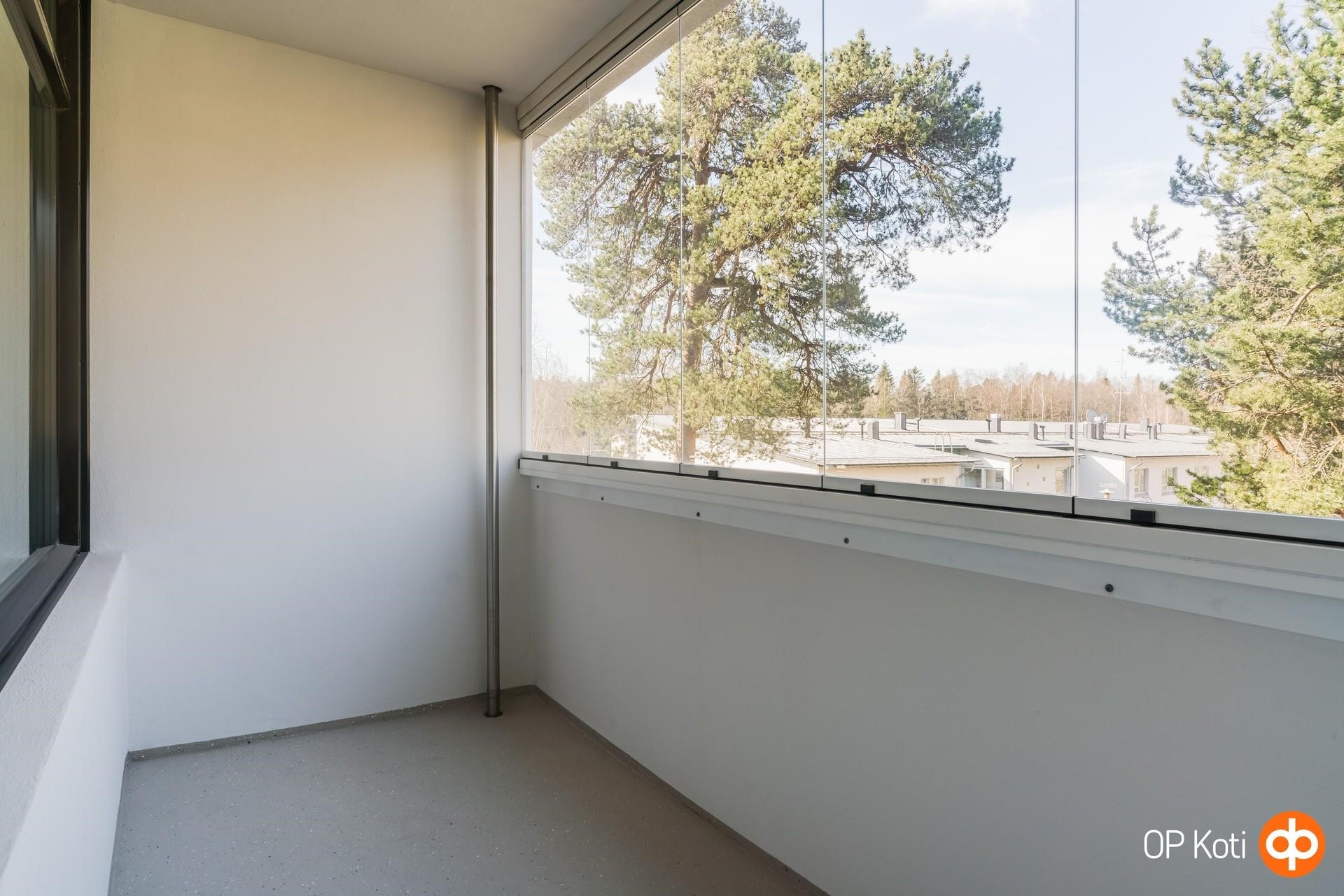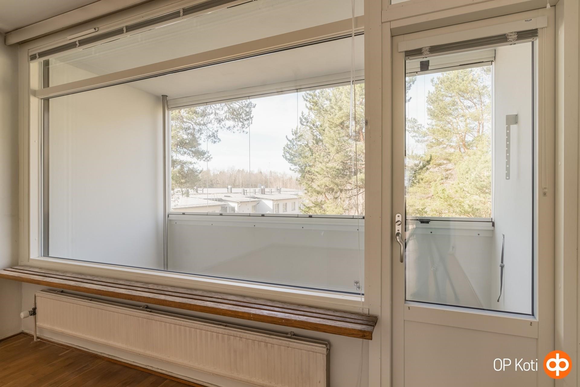 Asunto sijaitsee hissitalon neljännessä kerroksessa (4/5 krs). Asunnon pinnat ovat siistissä, käytetyssä kunnossa, ja läpitalon pohjaratkaisu yhdessä suurten ikkunoiden kanssa tuo kotiin runsaasti luonnonvaloa. Kaksi reilun kokoista makuuhuonetta tarjoavat toimivat ja mukavat puitteet asumiseen, ja niiden väliin sijoittuva keittiö on omana rauhallisena kokonaisuutenaan. Tilava olohuone avautuu vehreisiin maisemiin, ja olohuoneen yhteydessä oleva lasitettu parveke jatkaa oleskelutilaa pitkälle syksyyn. Kylpyhuone on uusittu yhtiön linjasaneerauksen yhteydessä vuonna 2014. Sisään tullessa vastassa on tilava eteinen sekä vaatehuone, jotka tarjoavat runsaasti käytännöllistä säilytystilaa.