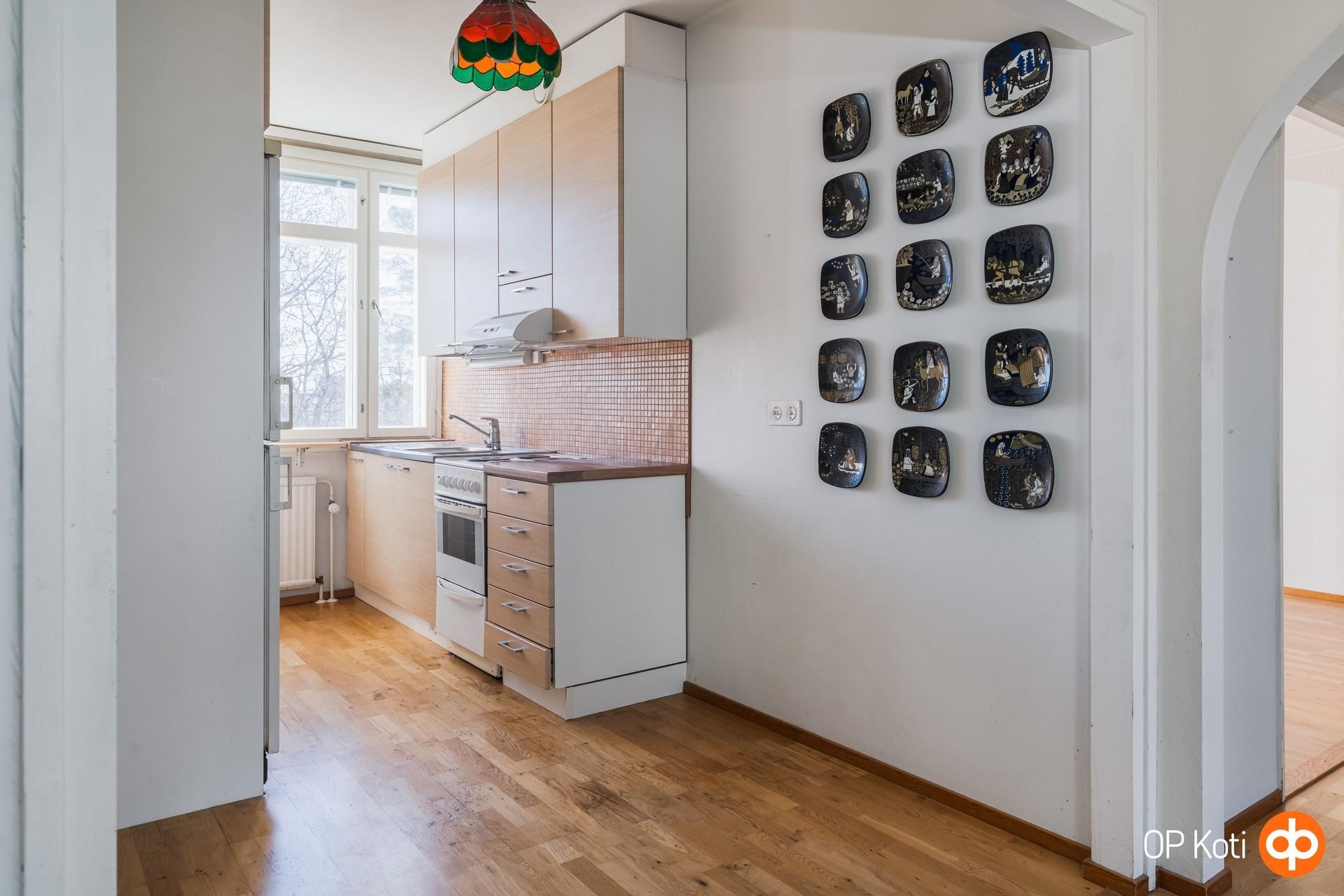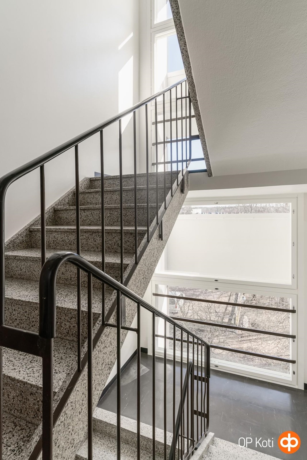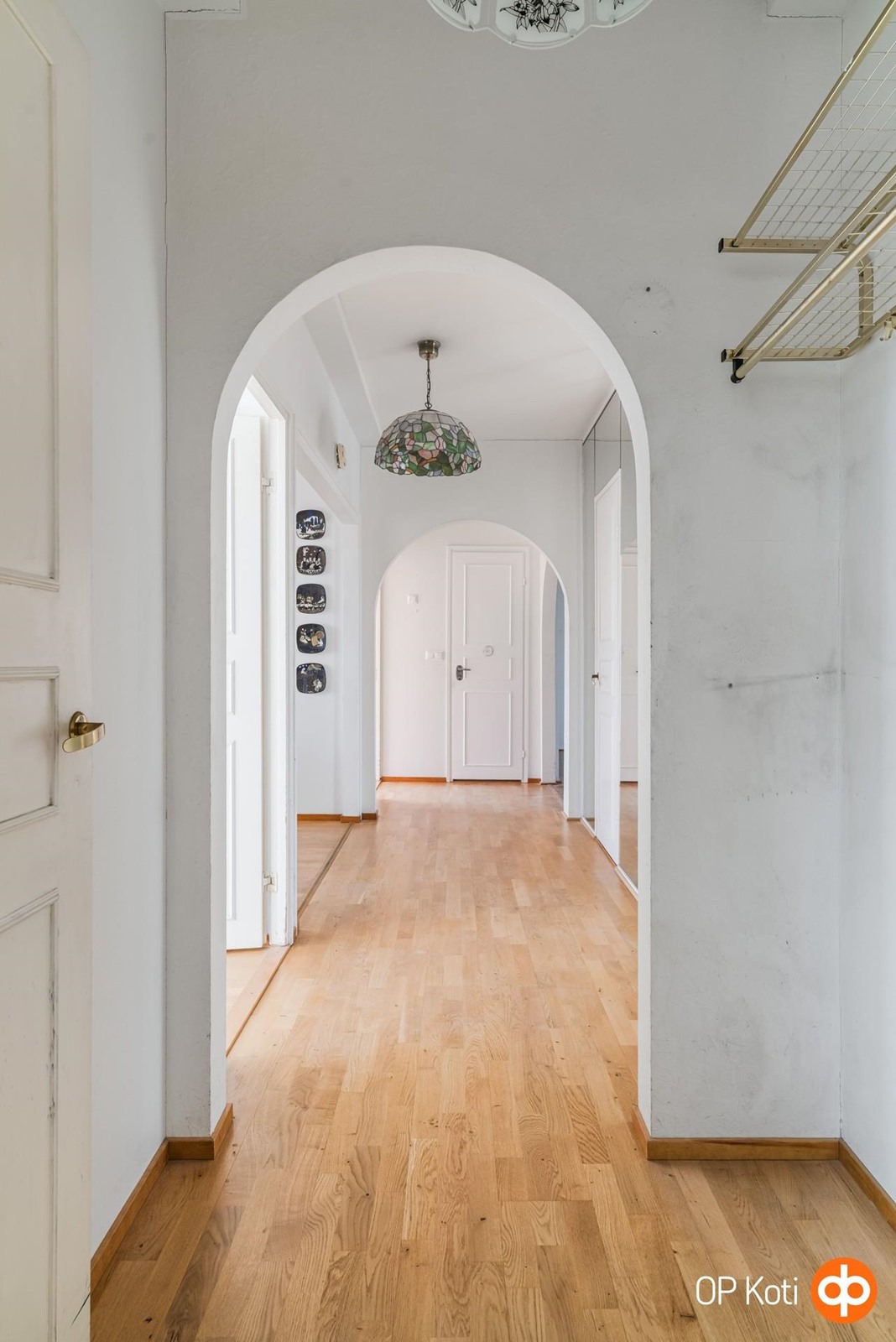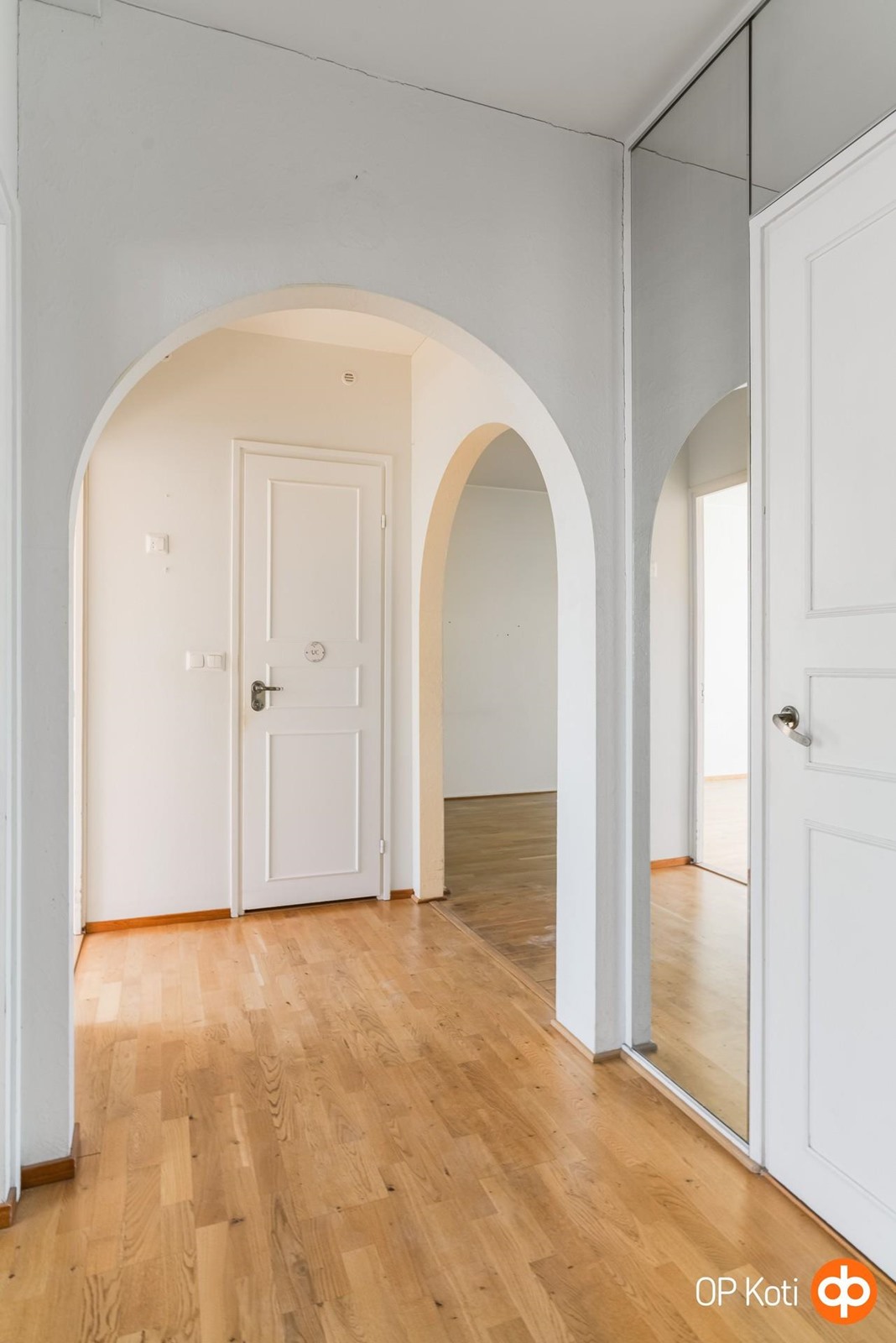 Asunto sijaitsee hissitalon neljännessä kerroksessa (4/5 krs). Asunnon pinnat ovat siistissä, käytetyssä kunnossa, ja läpitalon pohjaratkaisu yhdessä suurten ikkunoiden kanssa tuo kotiin runsaasti luonnonvaloa. Kaksi reilun kokoista makuuhuonetta tarjoavat toimivat ja mukavat puitteet asumiseen, ja niiden väliin sijoittuva keittiö on omana rauhallisena kokonaisuutenaan. Tilava olohuone avautuu vehreisiin maisemiin, ja olohuoneen yhteydessä oleva lasitettu parveke jatkaa oleskelutilaa pitkälle syksyyn. Kylpyhuone on uusittu yhtiön linjasaneerauksen yhteydessä vuonna 2014. Sisään tullessa vastassa on tilava eteinen sekä vaatehuone, jotka tarjoavat runsaasti käytännöllistä säilytystilaa.