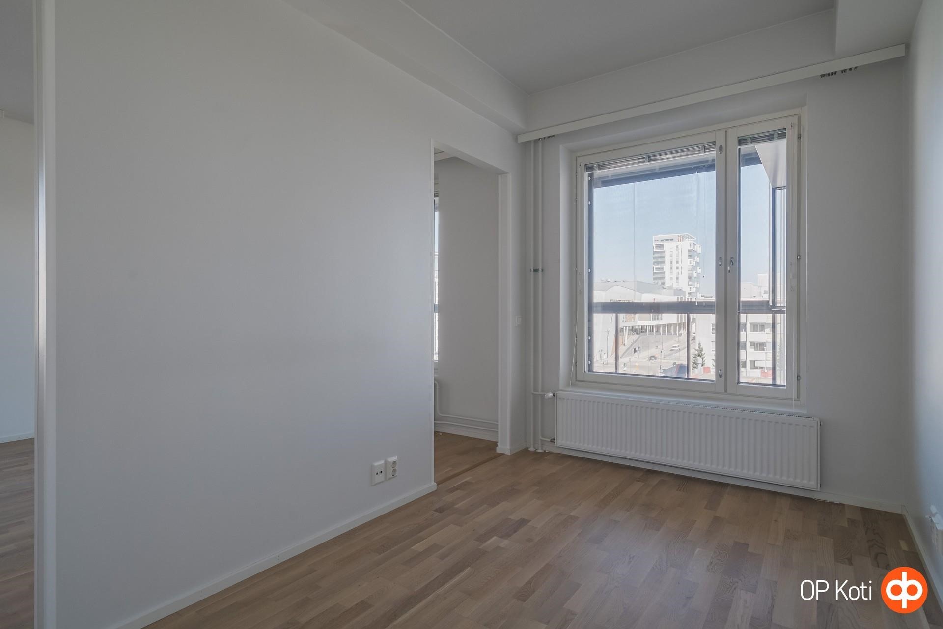 - Kulmahuoneisto. Näkymät yli Tiistiläntien noin itään ja olohuoneen yks ikkuna yli Suomenlahdentien noin pohjoisen suuntaan.