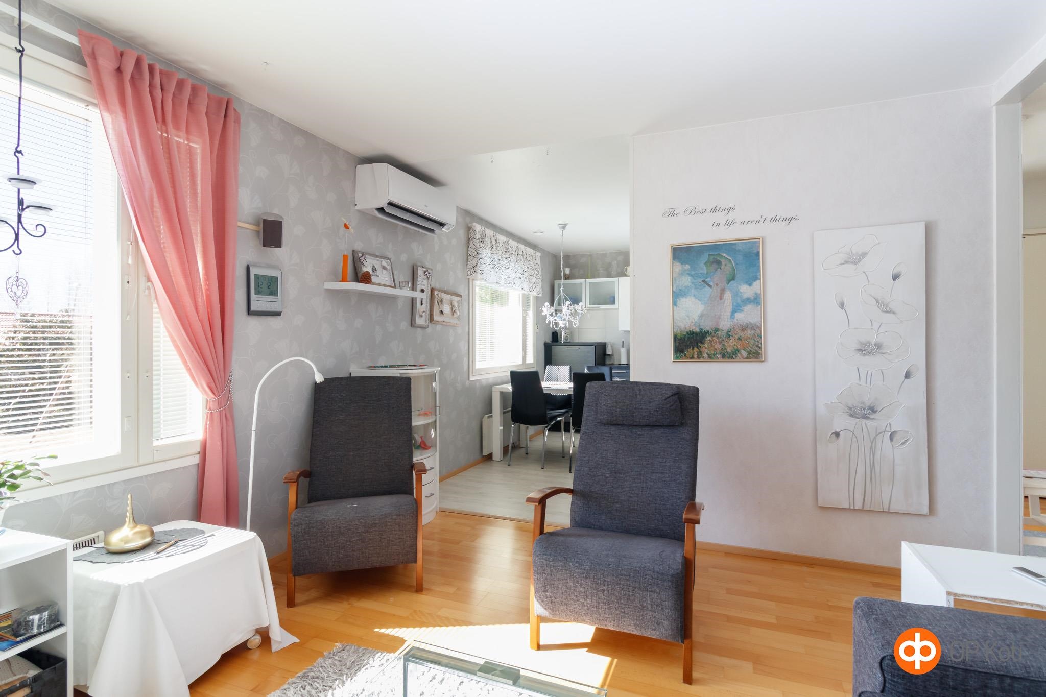 Tämä Pellisentien varrella sijaitseva koti tarjoaa modernia asumismukavuutta. Viihtyisällä ja rauhallisella Ääneniemen asuinalueella pääset nauttimaan omasta rauhasta ilman kaupungin hälinää, kuitenkaan tinkimättä palveluiden läheisyydestä. Hyvin suunniteltu koti tarjoaa mahdollisuuden rentoon ja helppoon arkeen sekä viihtyisiin hetkiin perheen ja ystävien kanssa. Vuonna 1997 rakennettu kiinteistö on pidetty hyvässä kunnossa ja tarjoaa toimivan pohjaratkaisun. Kodin olohuone kutsuu viihtymään. Arkea helpottavat myös modernit mukavuudet, kuten ilmalämpöpumppu, kaapeli-TV ja valokuituyhteys. Hyvin suunnitellut tilat mahdollistavat monipuolisen asumisen tarpeen mukaan. Äänenniemi on tunnettu rauhallisesta ja vehreästä ympäristöstään. Kaikki tärkeimmät palvelut löytyvät läheltä. Häränvirran kävelysilta tuo palvelut ja ulkoilumahdollisuudet vieläkin lähemmäs, ja ympäröivä luonto tarjoaa upeat puitteet ulkoiluun ja vapaa-ajan viettoon. Teknisesti koti on hyvin varusteltu. Ilmalämpöpumppu tuo energiatehokkuutta ja asumismukavuutta ympäri vuoden. Olohuoneessa on valmis takkavaraus, mikä mahdollistaa takan asentamisen helposti. Kiinteistöä on hoidettu huolella, ja hyvä kunto näkyy sekä materiaaleissa että varustelussa, muuttamaan pääset ilman suuria remonttihuolia. Pyydä esittely!