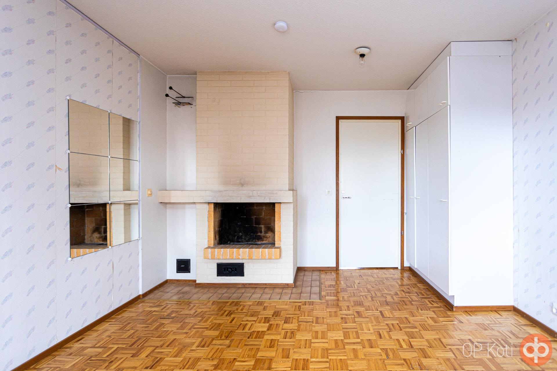 Monikäyttöinen takkahuone toimii tunnelmallisena oleskelutilana tai lisämakuuhuoneena tarpeen mukaan. Vaikka pintoja onkin remontoitava, tässä kodissa on valtavasti potentiaalia, sillä pääset sisustamaan ja remontoimaan juuri oman makusi mukaan.