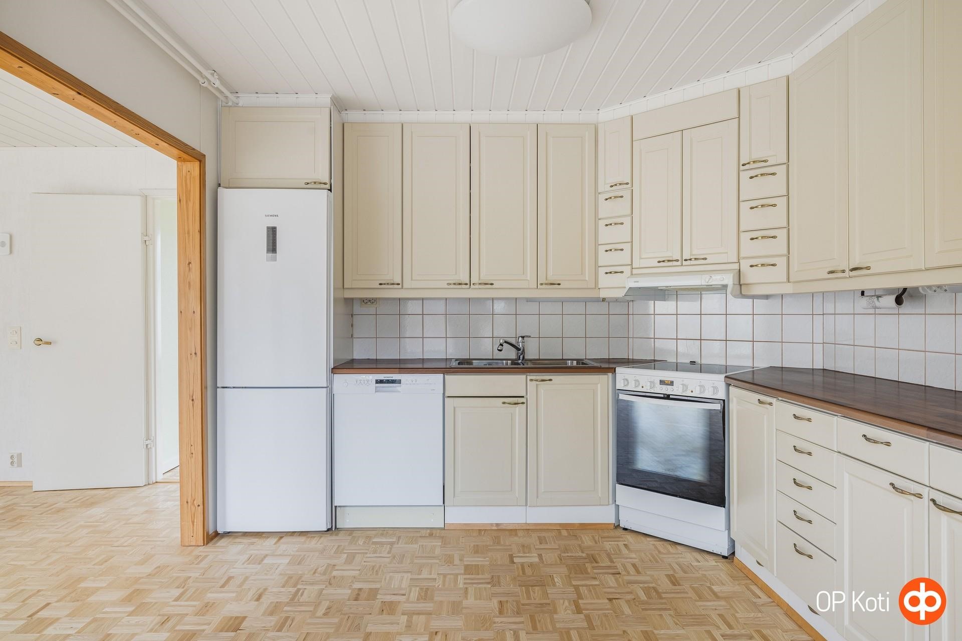 - Jääkaappi varastossa, jääkaappipakastin, induktioliesi, liesituuletin, astianpesukone, kaapistot Teetetty mittatilaustyönä, kiinteät valaisimet.