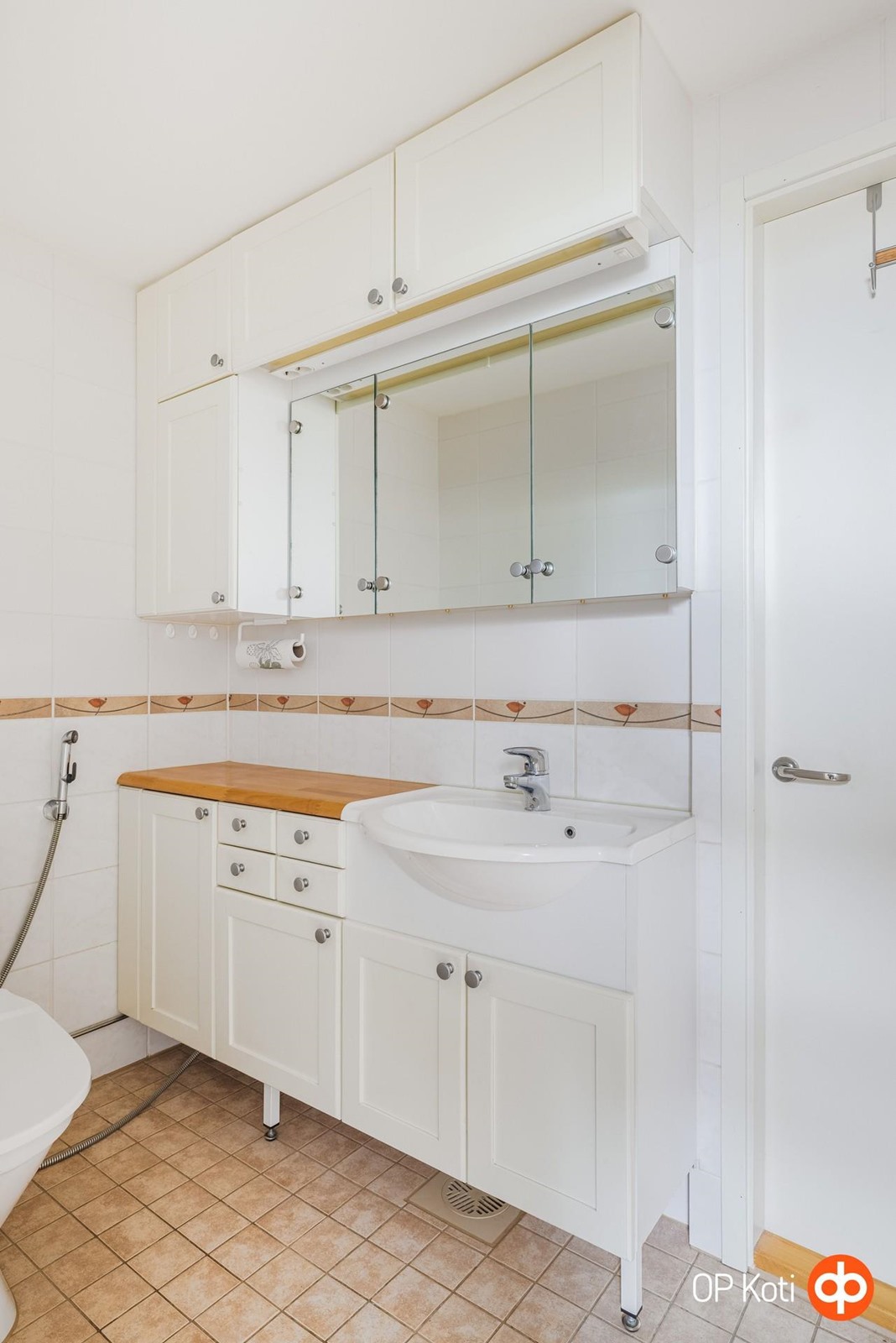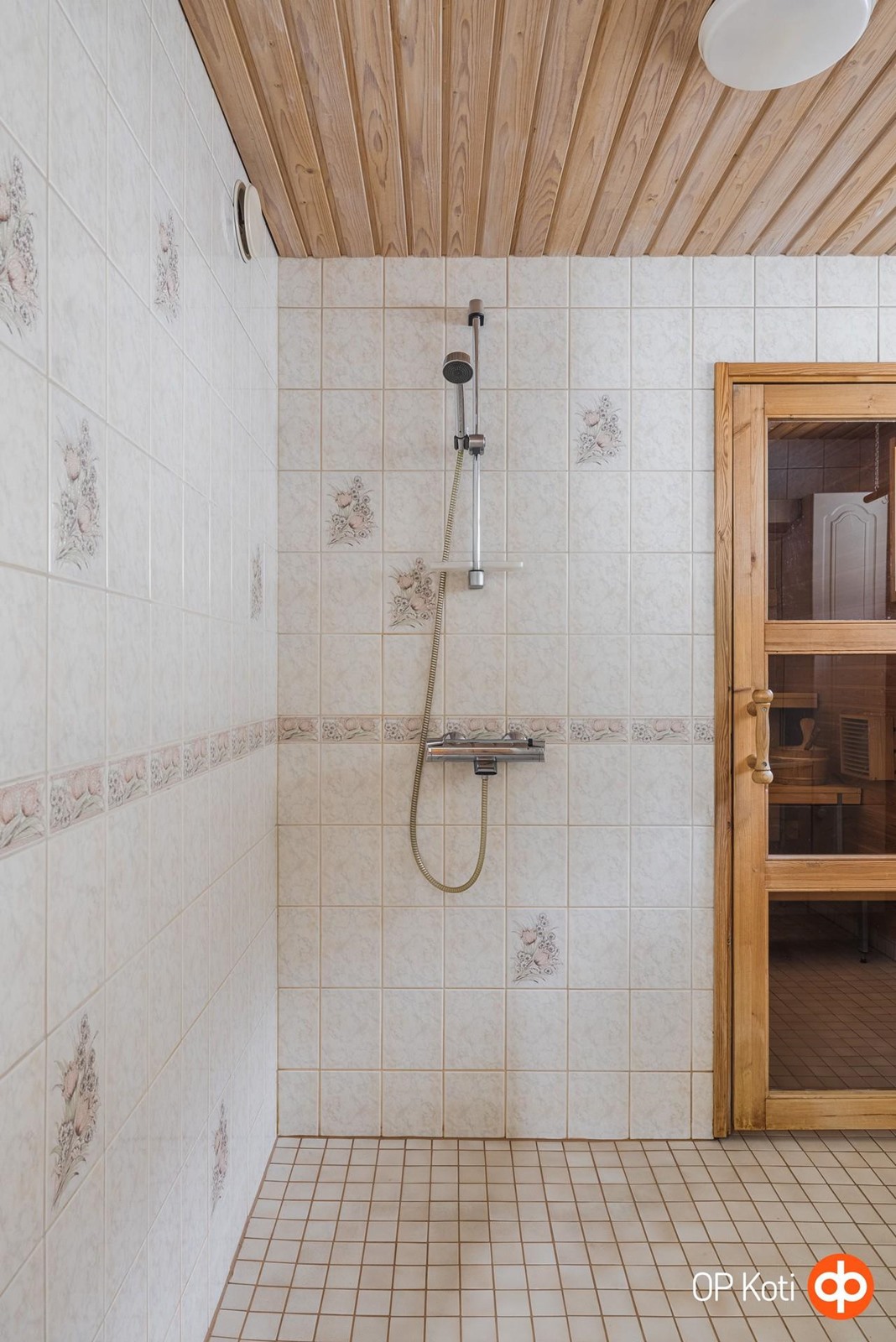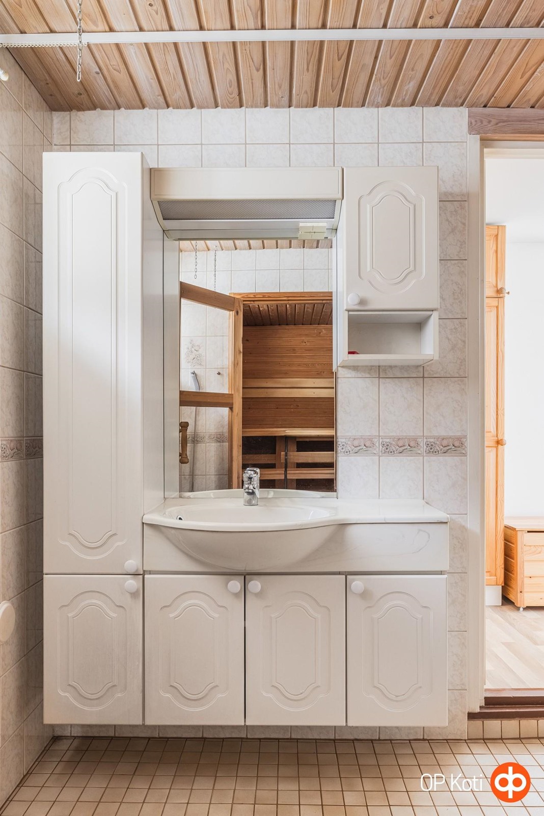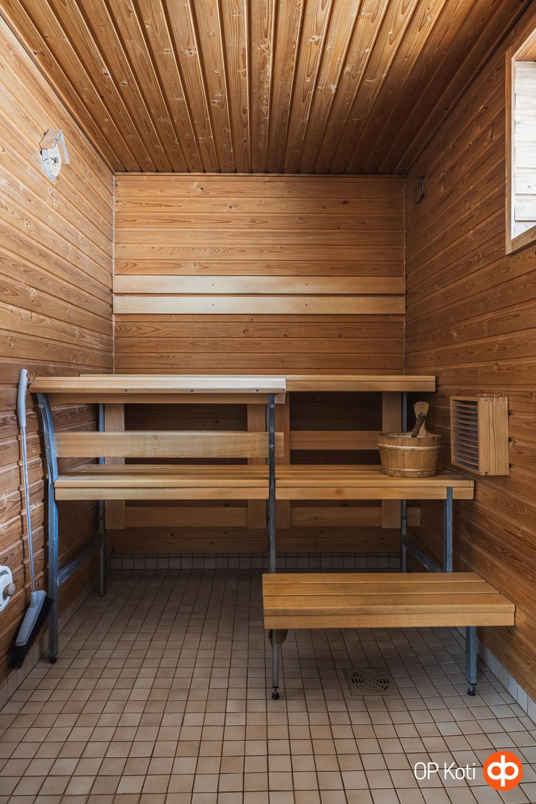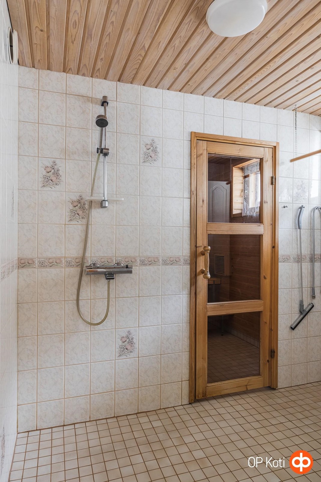 - Sauna tilava, ikkuna, puukiuas, kylpyhuone Ikkuna, erillinen wc, suihku, peilikaappi erillinen wc, kph, kaapit erillinen wc, kph, allaskaappi erillinen wc, kph, pesukoneliitäntä oma tila pesukoneelle, lattialämmitys erillinen wc, kph, sauna, kiinteät valaisimet.