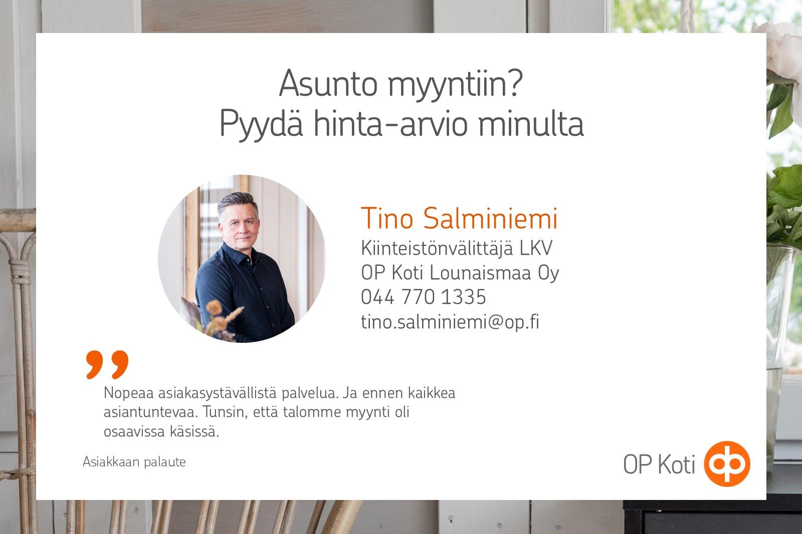 Tino Salminiemi Kiinteistönvälittäjä, LKV tino.salminiemi@op.fi 044 770 1335