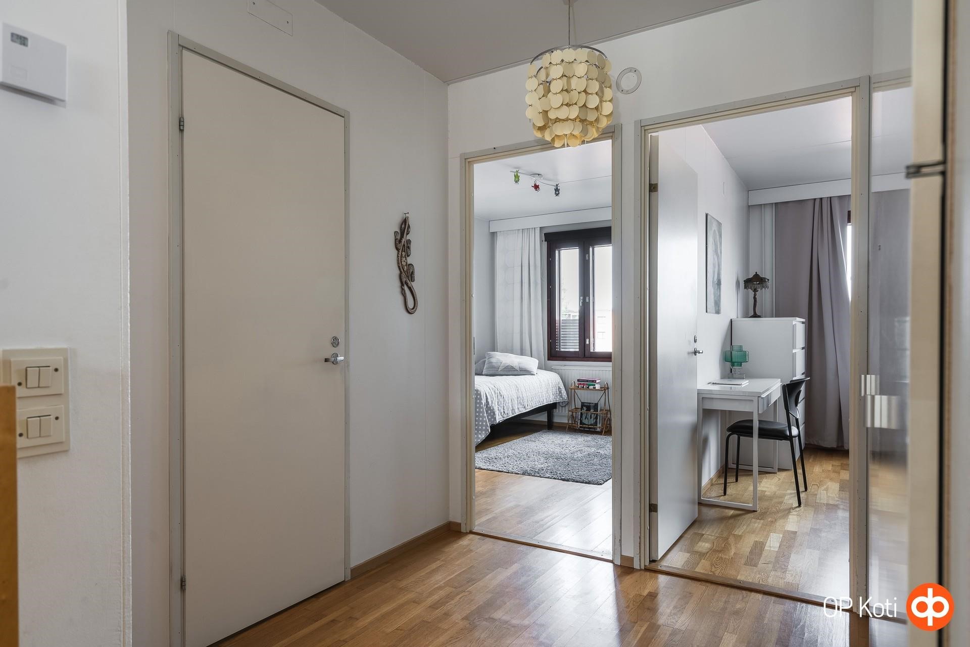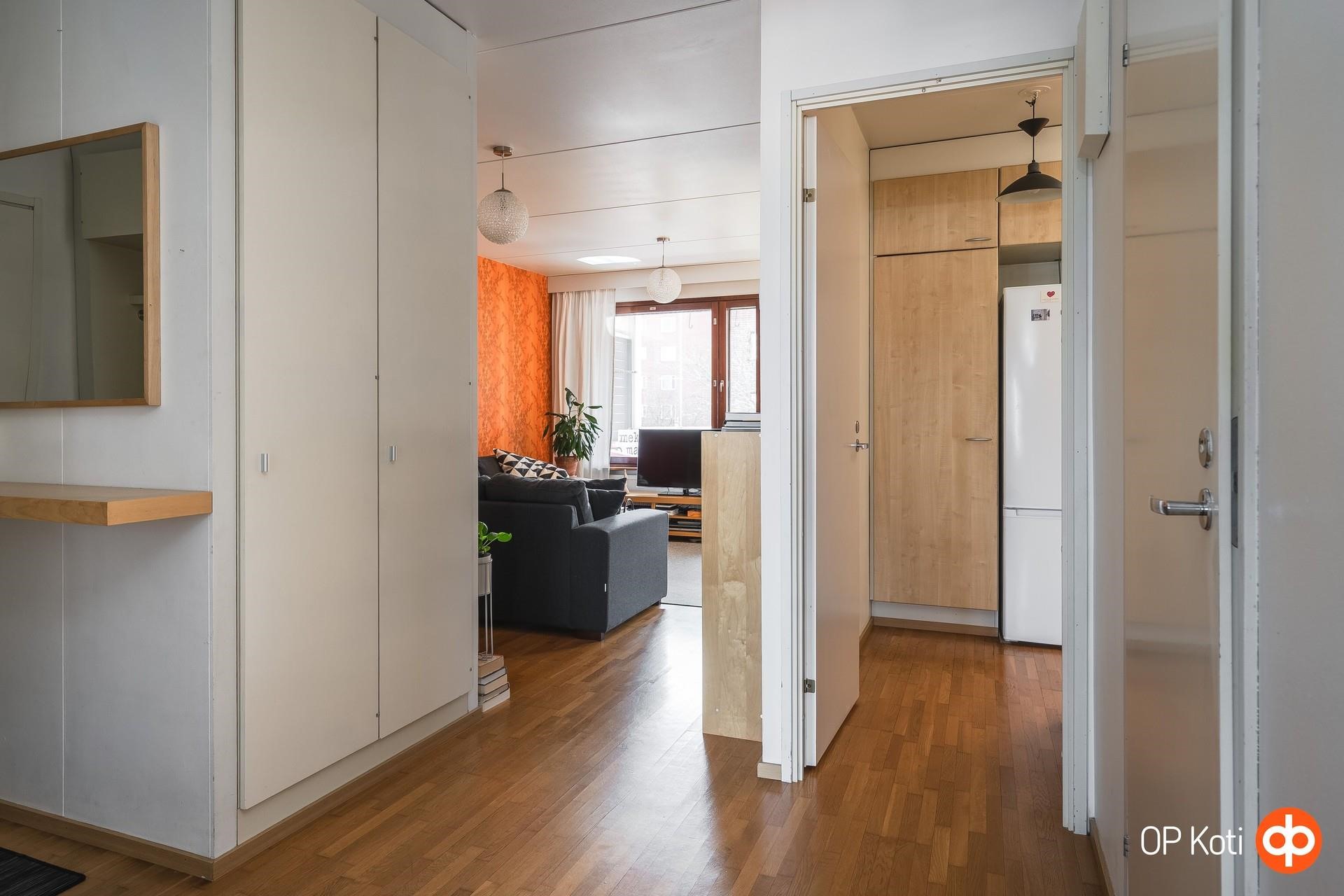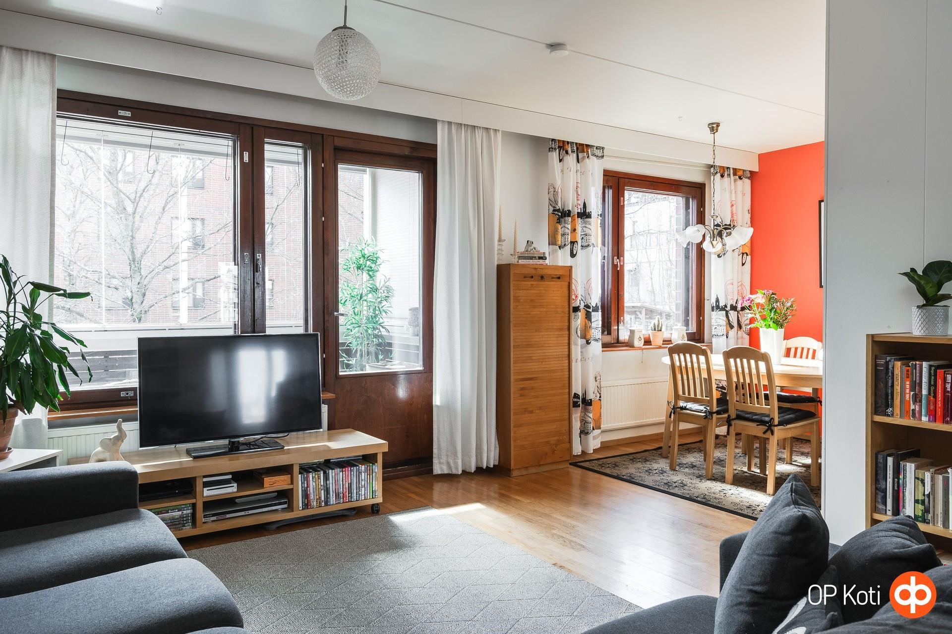 68 neliön pohjaratkaisu on käytännöllinen ja ajaton. Läpitalon huoneistossa valo kulkee kauniisti pohjoisesta etelään, ja lasitettu eteläparveke avautuu vehreälle sisäpihalle tarjoten rauhallisen lisätilan arkeen. Vuonna 2019 saneerattu kylpyhuone tuo asumiseen huolettomuutta, ja säilytystilaa löytyy vaatehuoneen sekä kellarikomeron ansiosta. Hissi, taloyhtiön sauna, pesula ja muut yhteiset tilat lisäävät asumismukavuutta, arki onkin täällä sujuvaa eri elämäntilanteissa.