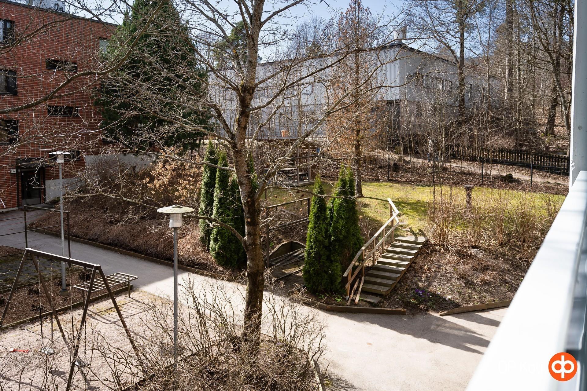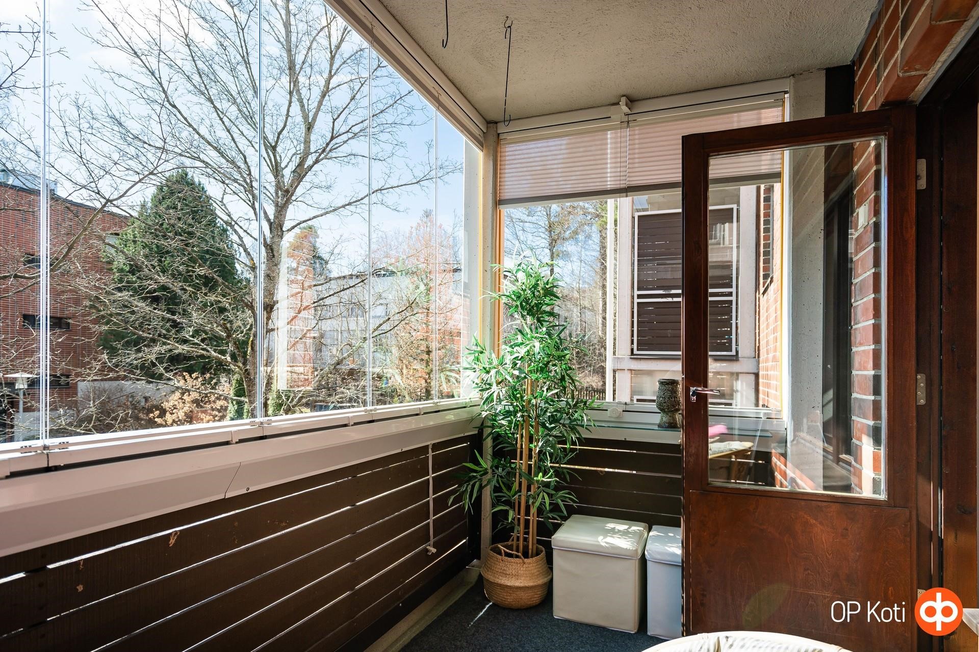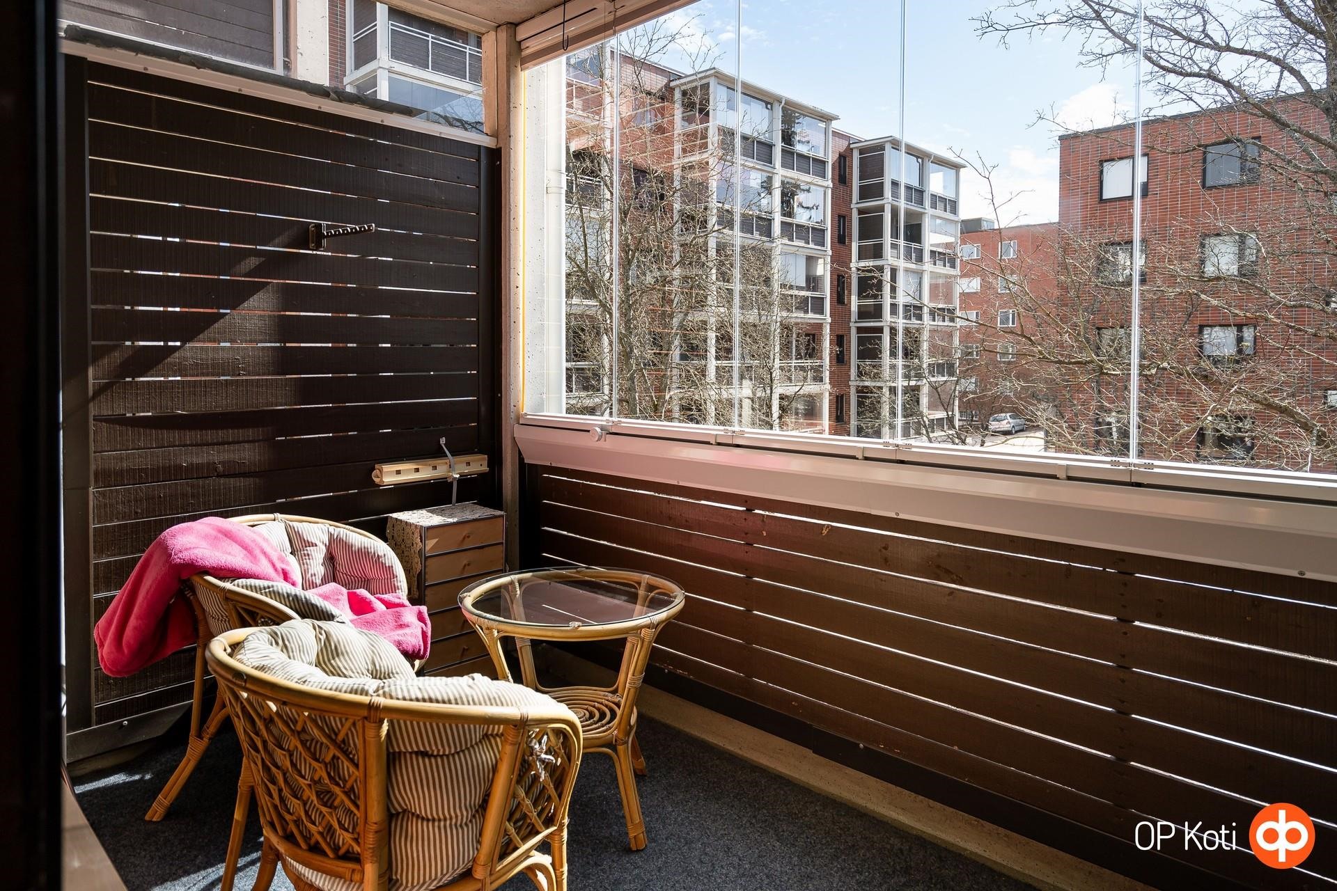 - Lasitettu eteläparveke, josta vehreät näkymät sisäpihalle.