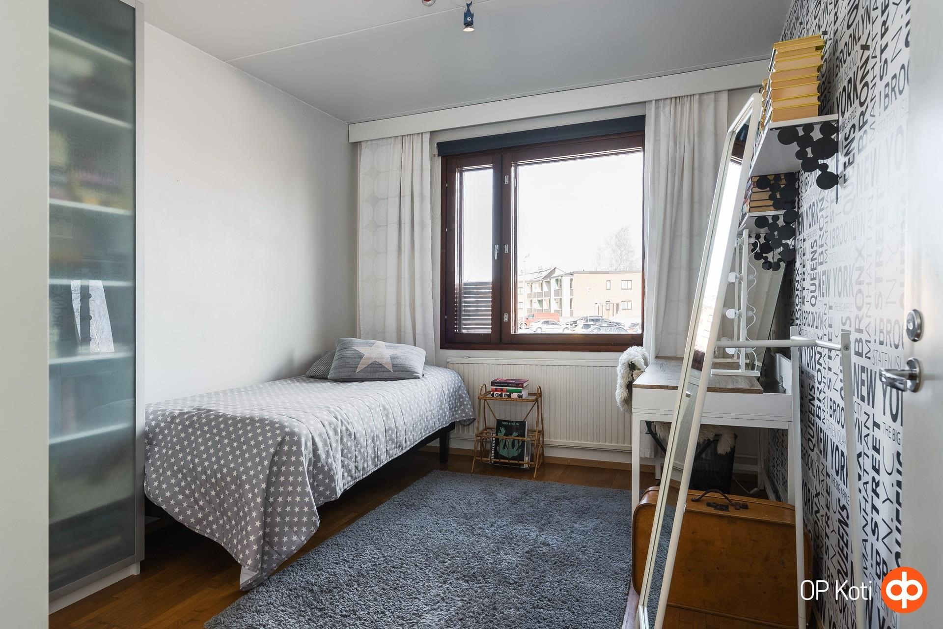 Keittiö: laatta välitilassa, parkettilattia. Olohuone: Parkettilattia. Makuuhuone 1: Parkettilattia. Makuuhuone 2: Laminaattilattia. Kylpyhuone: Laattalattia, seinät laatoitettu.