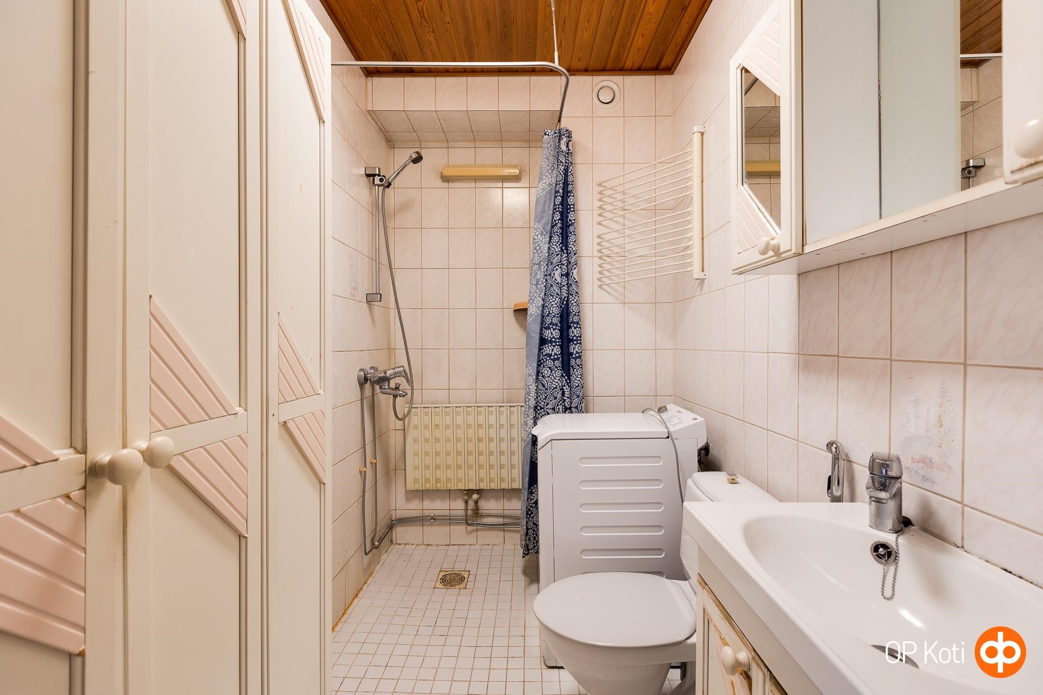 - Kylpyhuone, suihku, peilikaappi, kiinteät valaisimet.