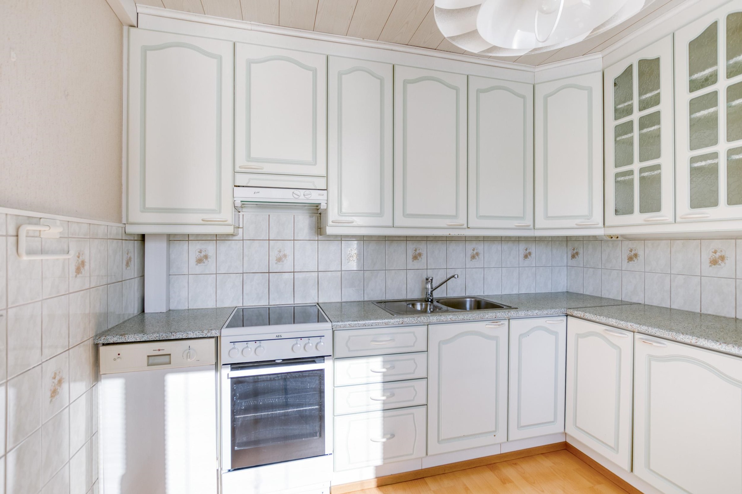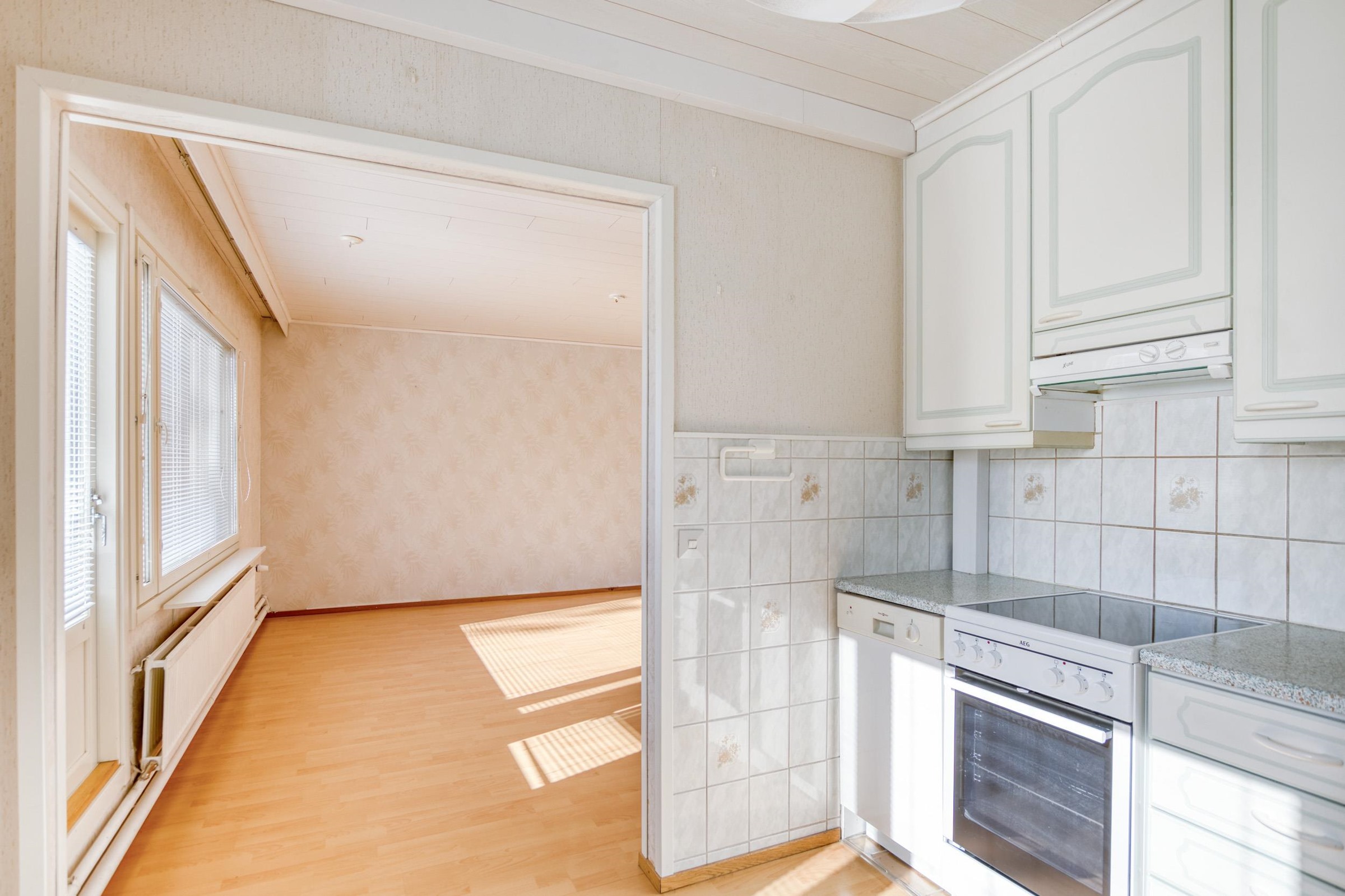 - Jääkaappipakastin, keraaminen liesi, liesituuletin, astianpesukone, kaapistot.