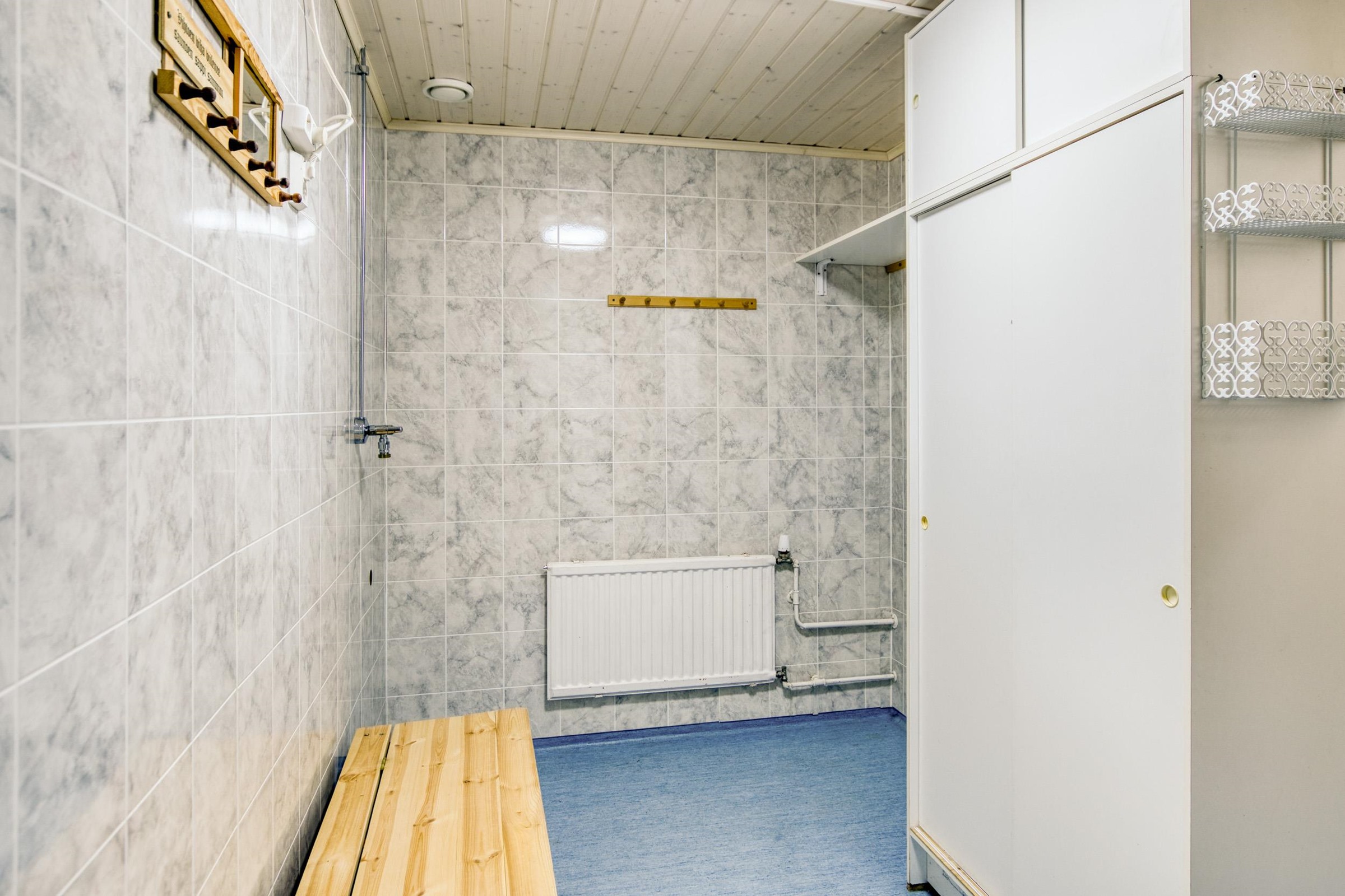 - Sauna, sähkökiuas, kylpyhuone, erillinen wc, suihku, peilikaappi erillinen wc, allaskaappi erillinen wc, pesukoneliitäntä khh.