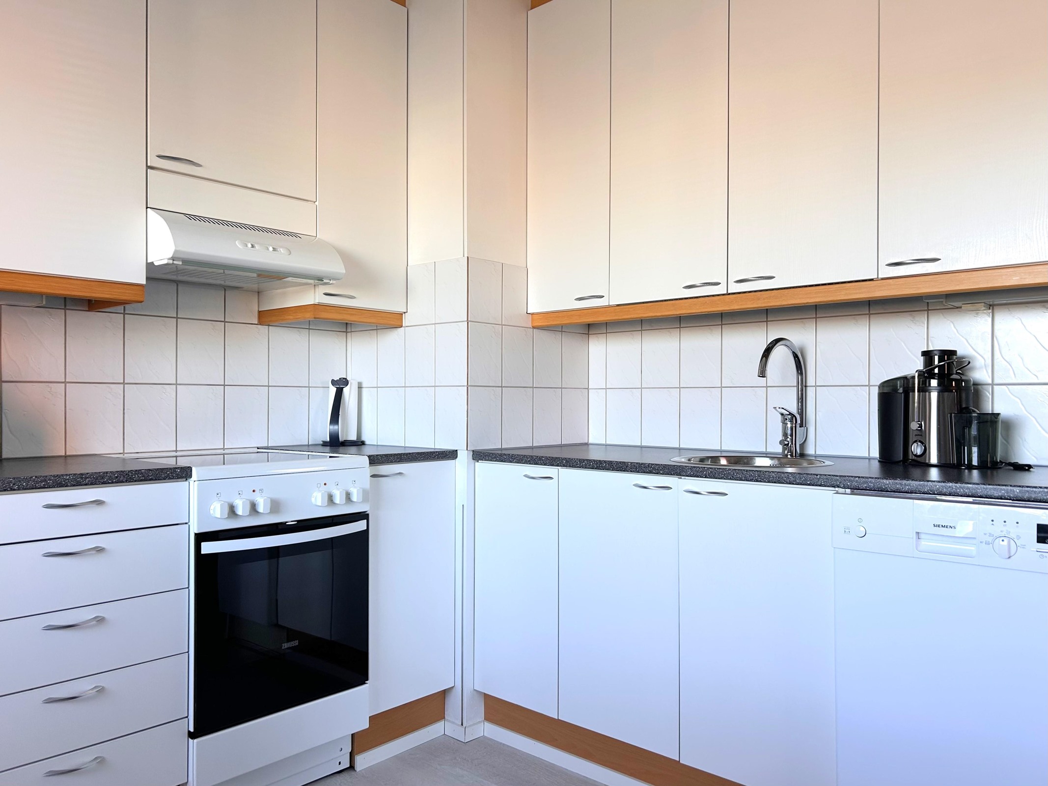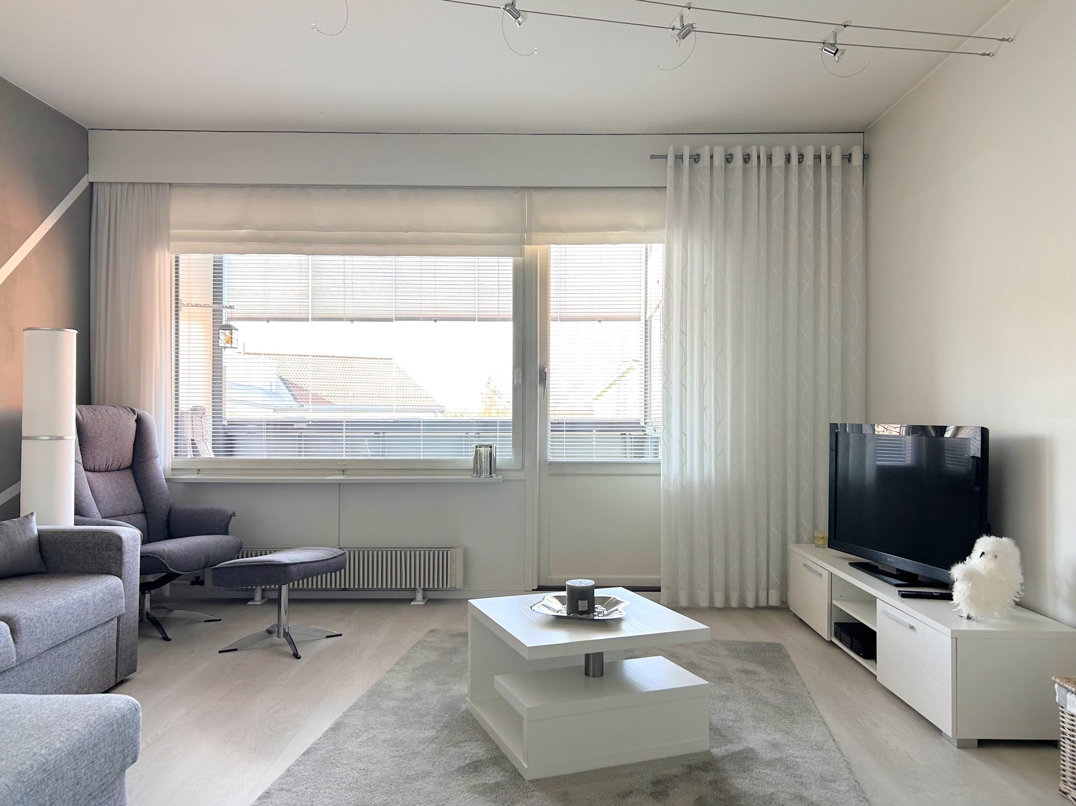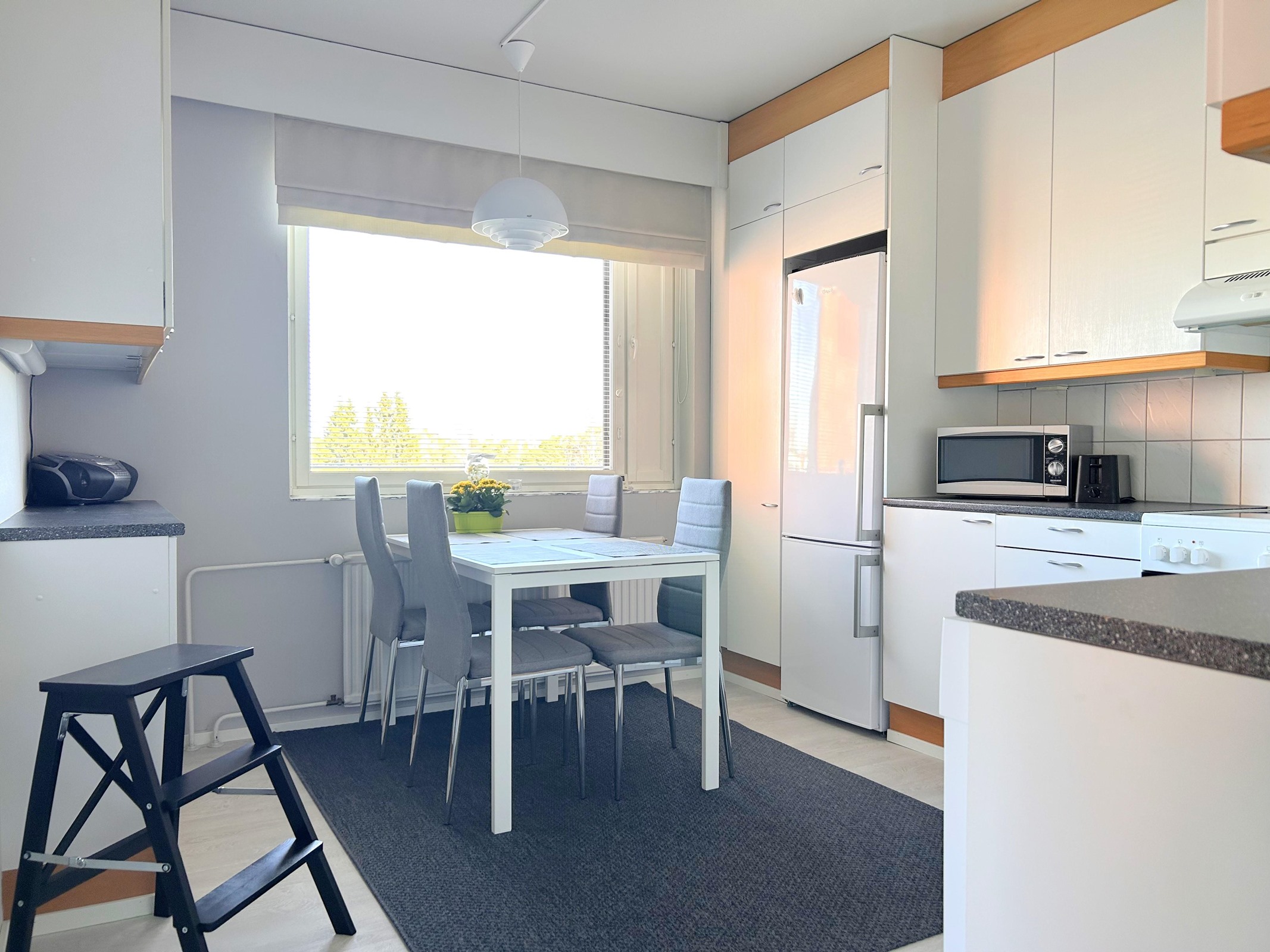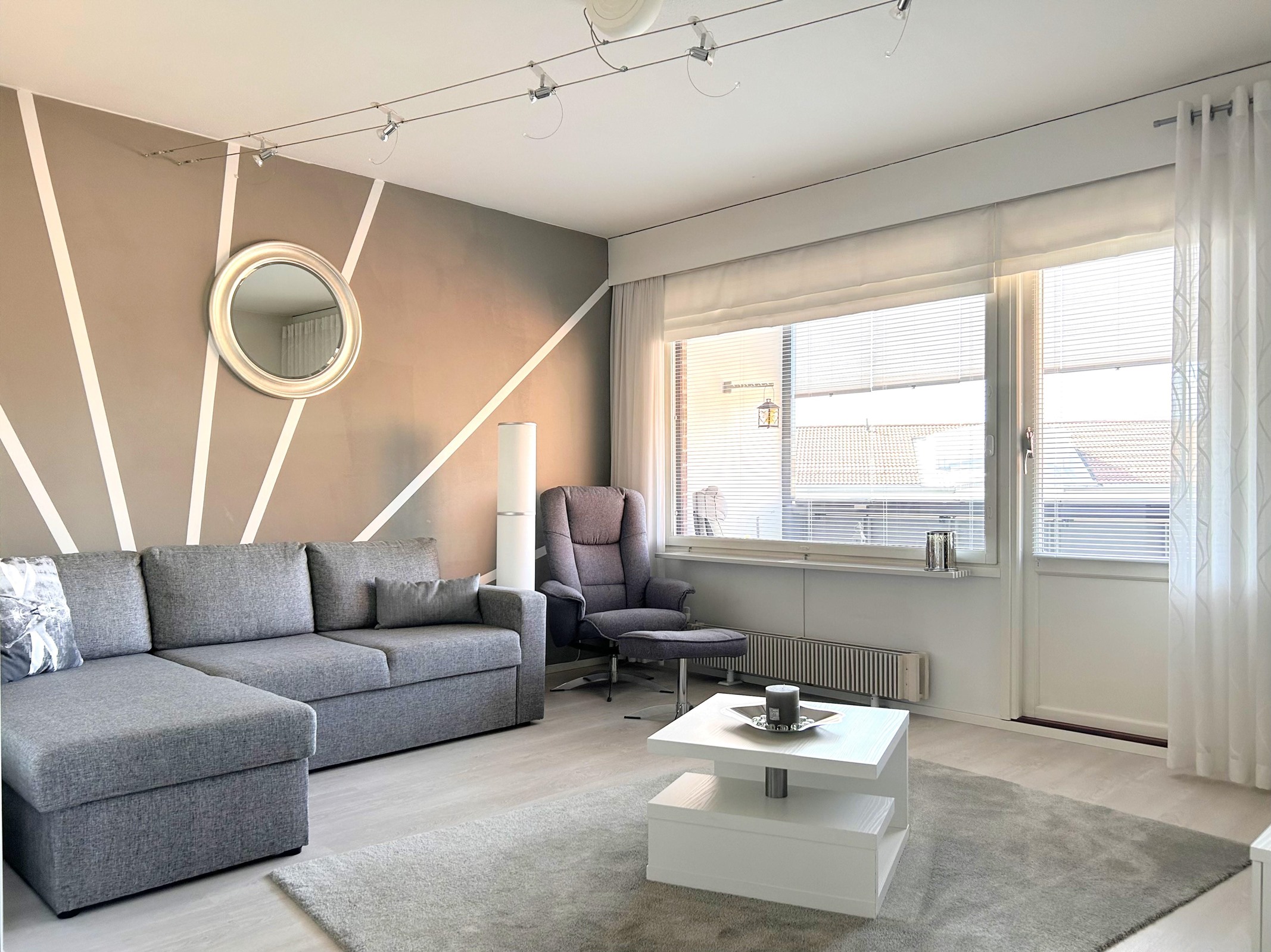 Toimiva pohjaratkaisu. Toimiva keittiö, tilava makuuhuone hyvillä säilytystiloilla ja siisti kylpyhuone tekevät arjesta sujuvaa. Olohuoneessa kiva tehosteseinä ja keittiössä Puustellin valkoiset kaapistot. Upea lasitettu parveke tarjoaa viihtyisän oleskelupaikan pitkälle syksyyn.