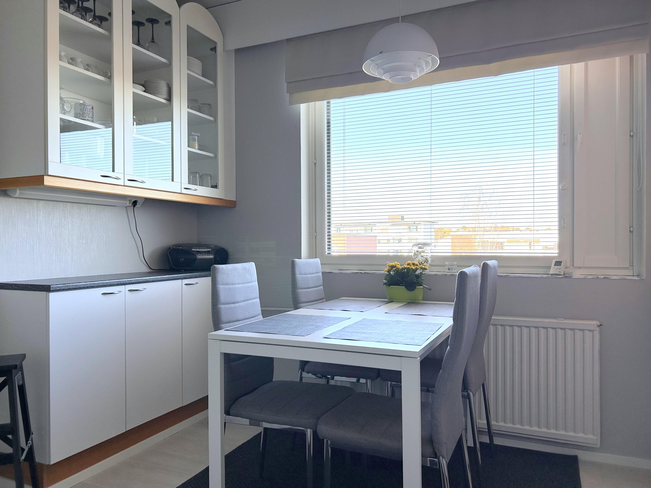 Valoisa ja siisti ylimmän kerroksen koti hyvältä sijainnilta.