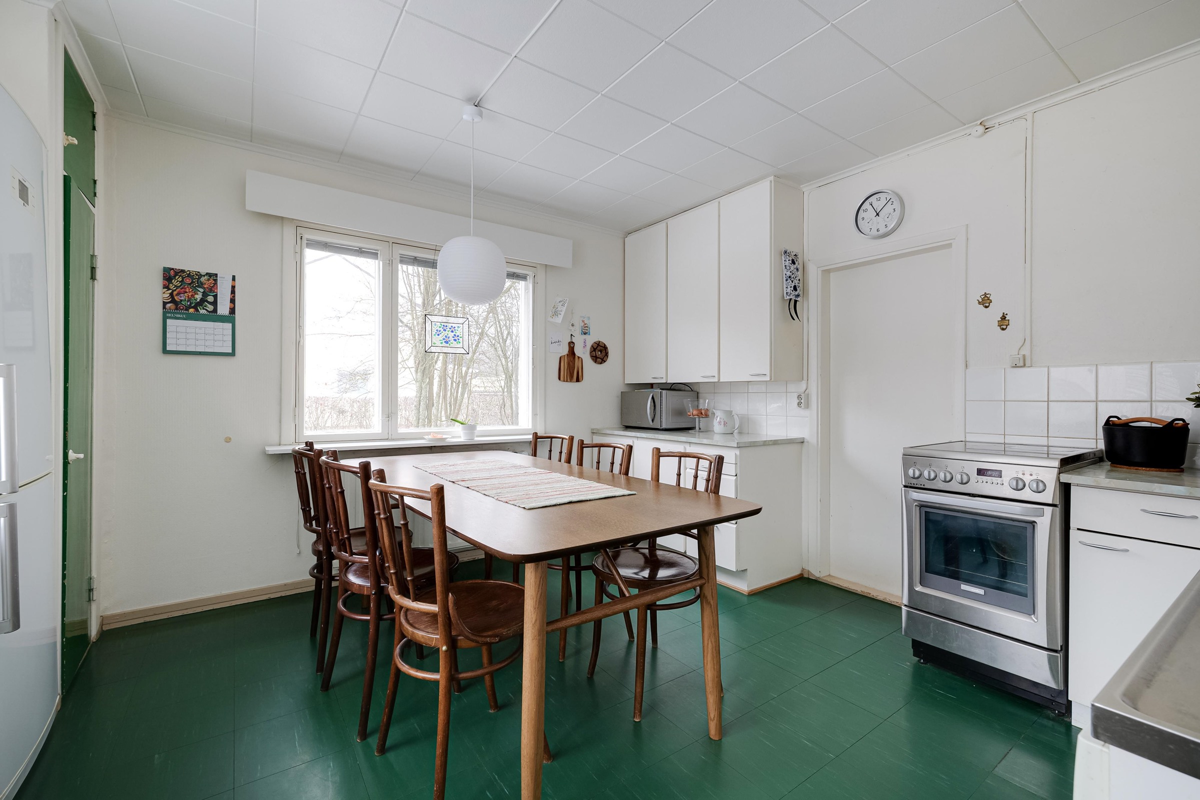 - Jääkaappipakastin, lattialiesi kiertoilmauuni keraamisella liedellä, astianpesukone, kaapistot, kiinteät valaisimet, pöytätasojen materiaali laminaatti. Kaapistot osin alkuperäiset