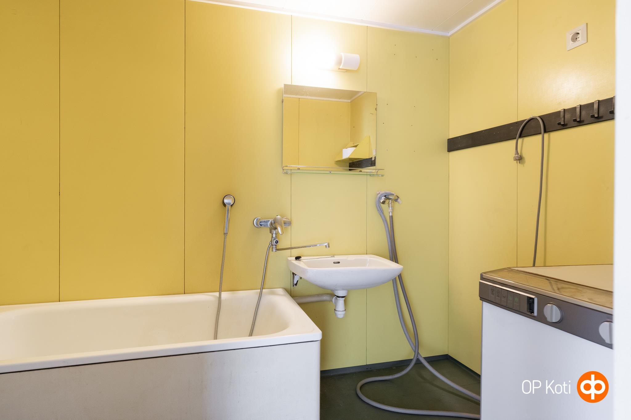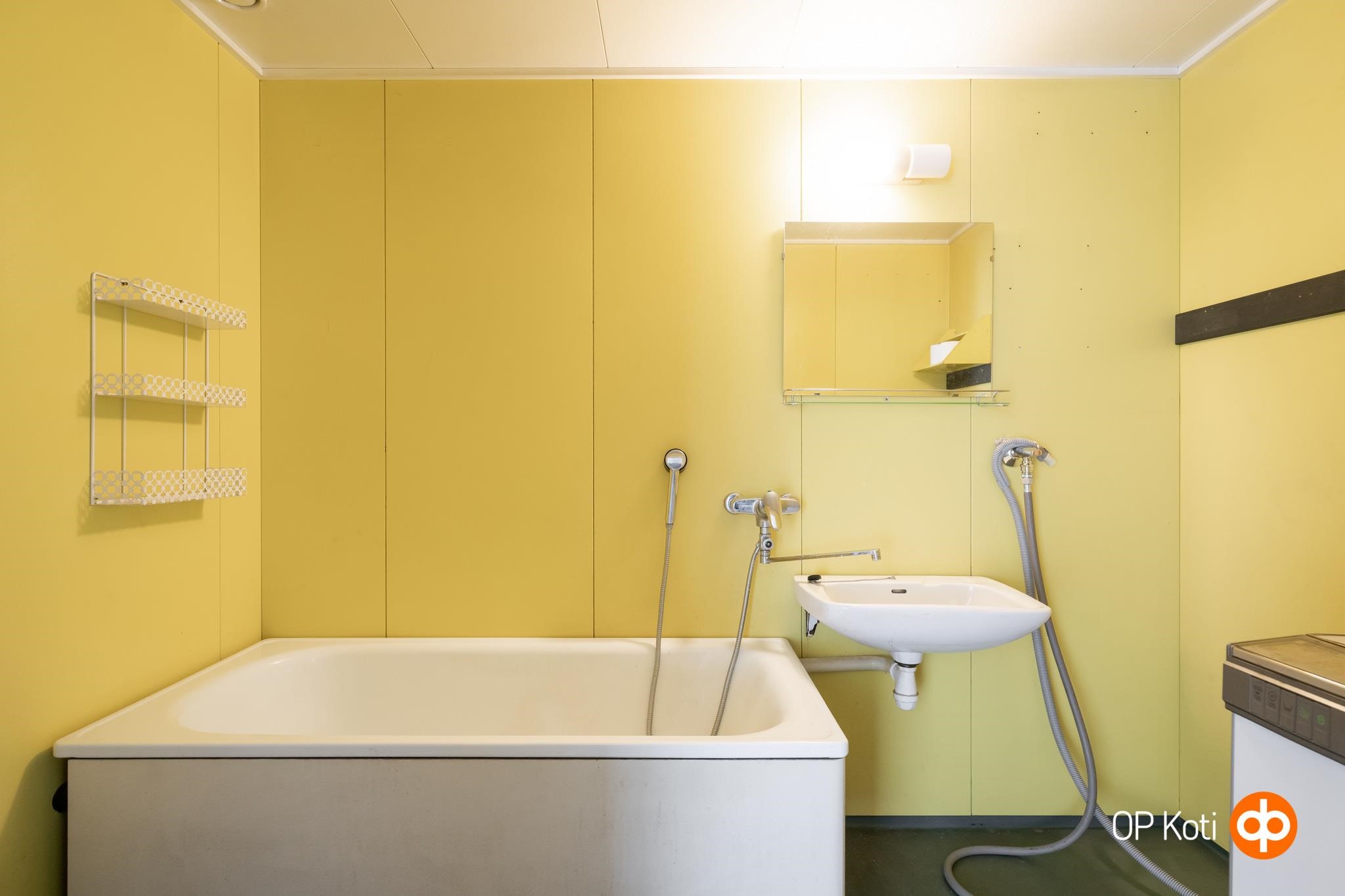 - Kylpyhuone (peltielementti kylpyhuone), suihku, amme, pesukoneliitäntä, kiinteät valaisimet. Kph on täysin alkuperäinen