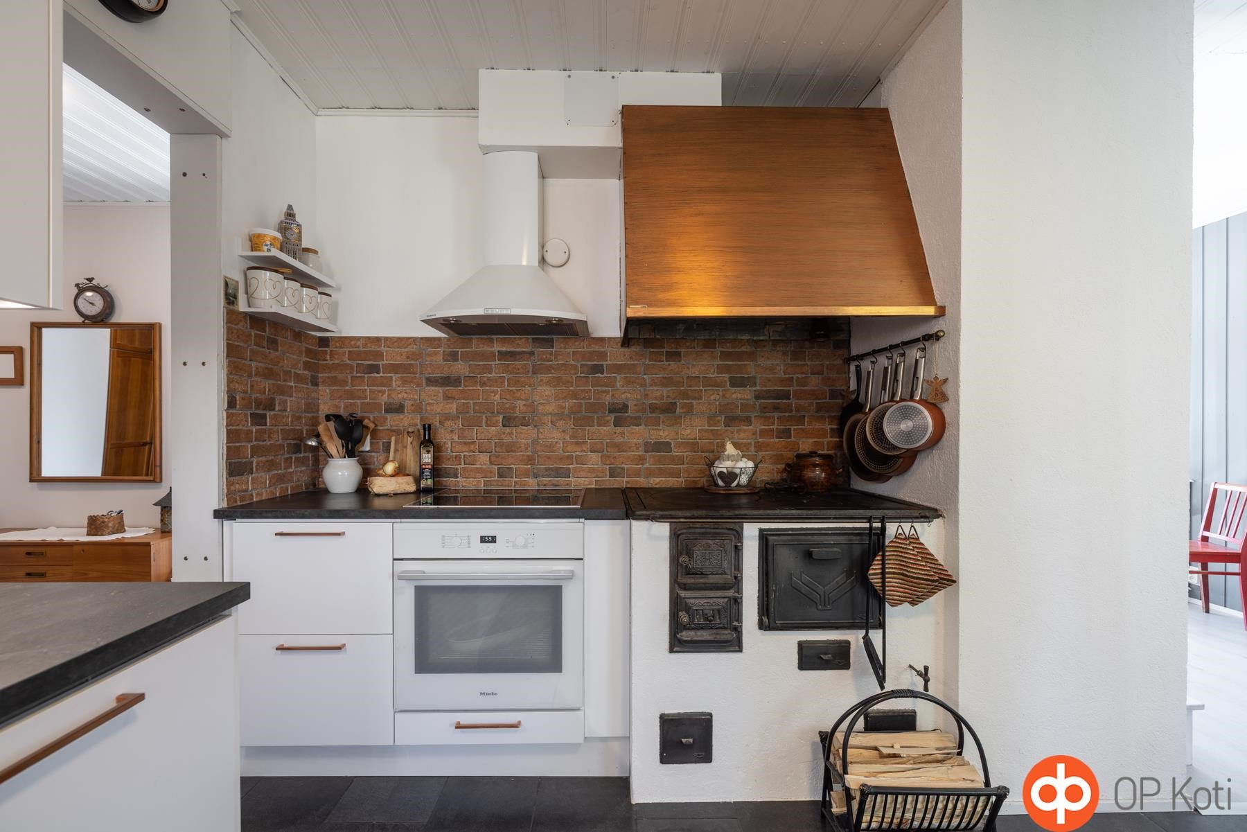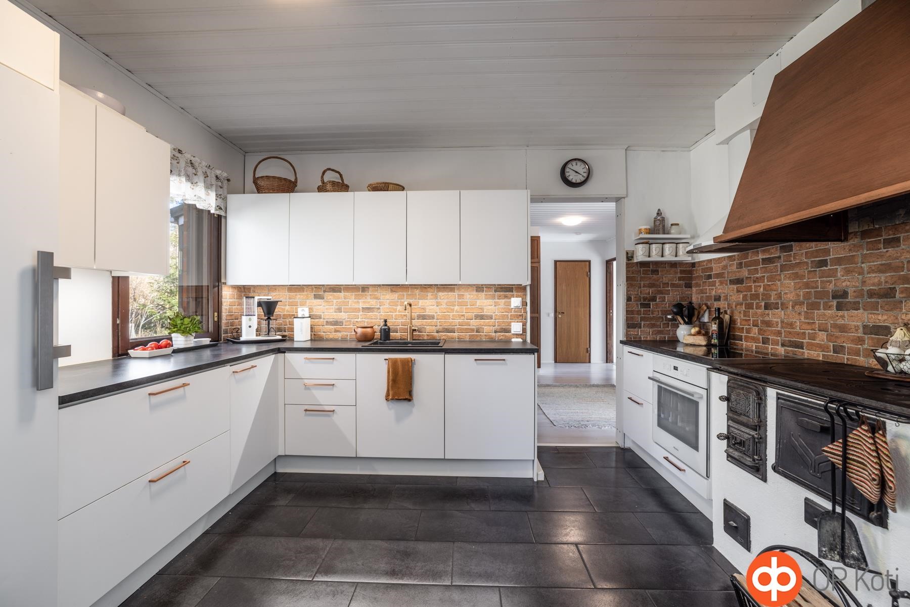 - Jääkaappi, erillisuuni, induktioliesi, liesituuletin, astianpesukone Integroitu, kaapistot, kiinteät valaisimet. Huuva , Puuhella . Arkkupakastin alakerrassa.