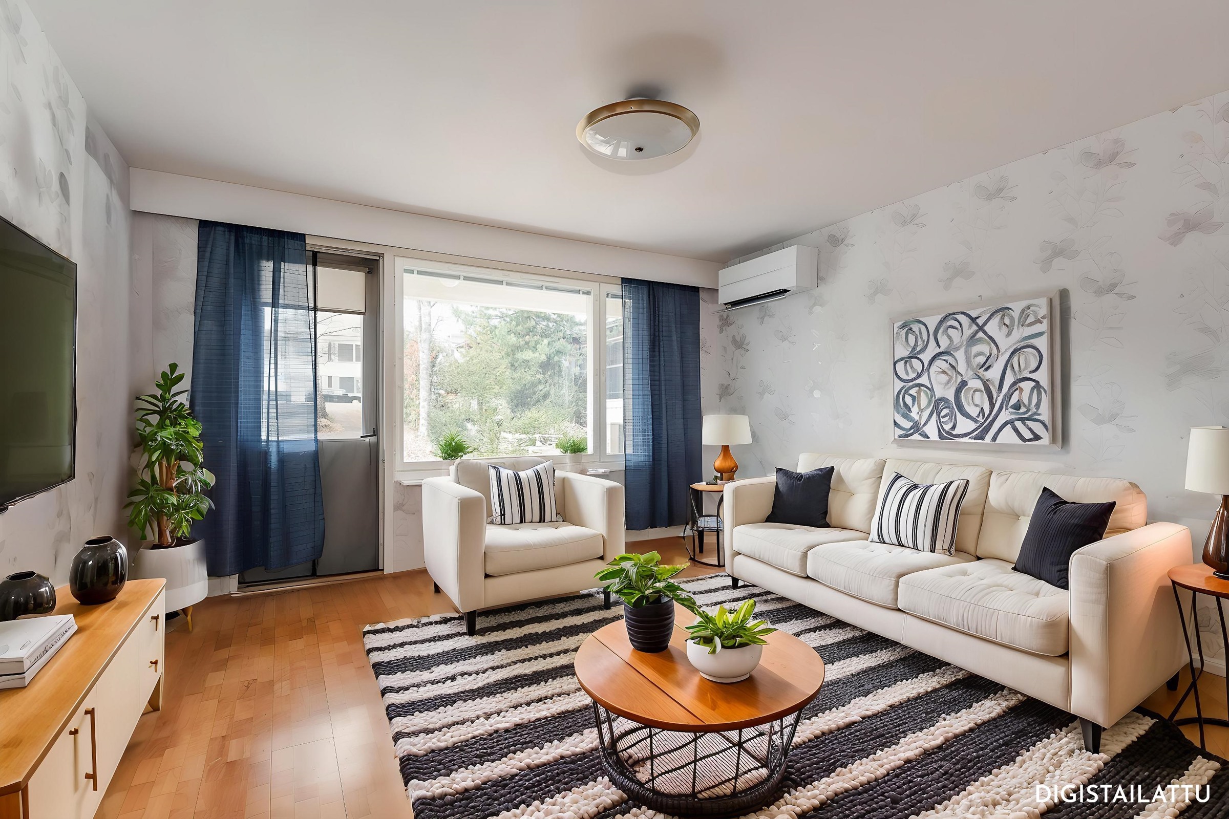 Asunnon toimiva pohjaratkaisu tarjoaa selkeät tilat: erillinen keittiö, tilava olohuone ja kaksi makuuhuonetta, joista toisessa on kätevä vaatehuone. Keittiö on remontoitu 2016 ja tarjoaa nykyaikaiset, siistit puitteet ruoanlaittoon. Olohuoneesta on käynti omalle terassille, jossa nautit kesäpäivät suojassa katseilta. Asunnossa on kylpyhuone ja wc samassa tilassa, ja kylpyhuone on uusittu 2019 tyylikkäästi tämän päivän vaatimusten mukaiseksi. Säilytystilaa löytyy vaatehuoneen lisäksi kellarikomerosta, ja käytännöllisyyttä lisäävät muun muassa sälekaihtimet, kiinteät valaisimet ja kaapeli-TV. Huoneistossa on myös ilmalämpöpumppu (2021), joka tuo viilennystä kesällä ja säästöä lämmitykseen.