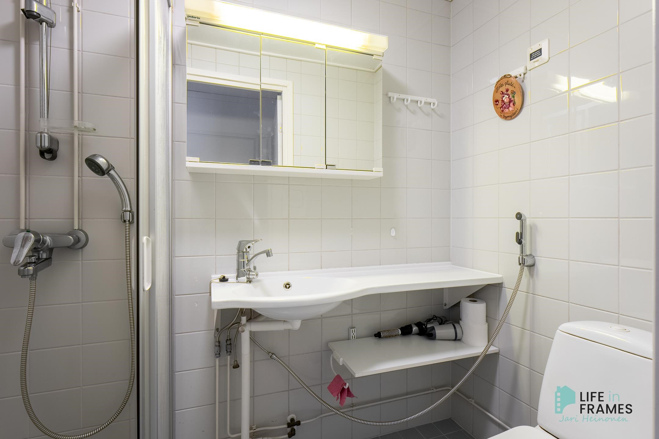 - Kylpyhuone, suihku, suihkukaappi, kiinteät valaisimet.