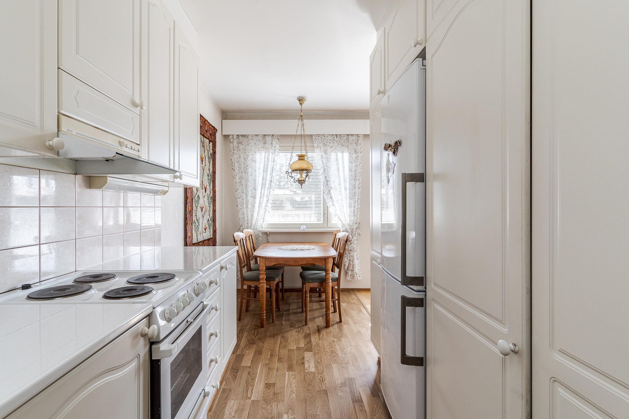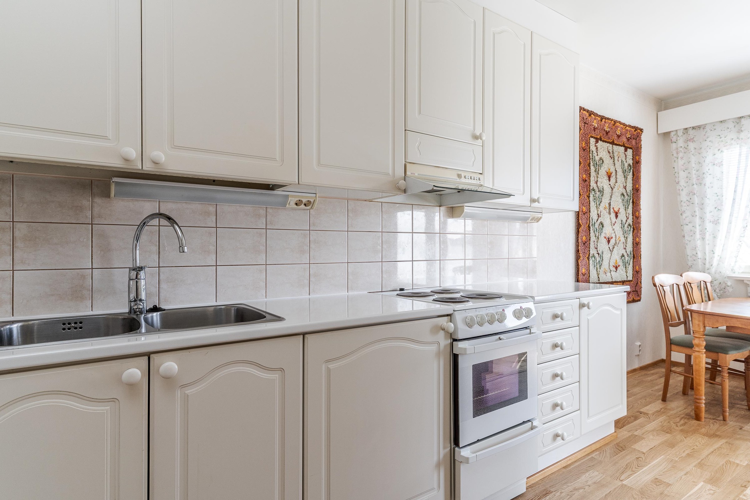 - Jääkaappipakastin, sähköliesi, liesituuletin, kaapistot, kiinteät valaisimet.