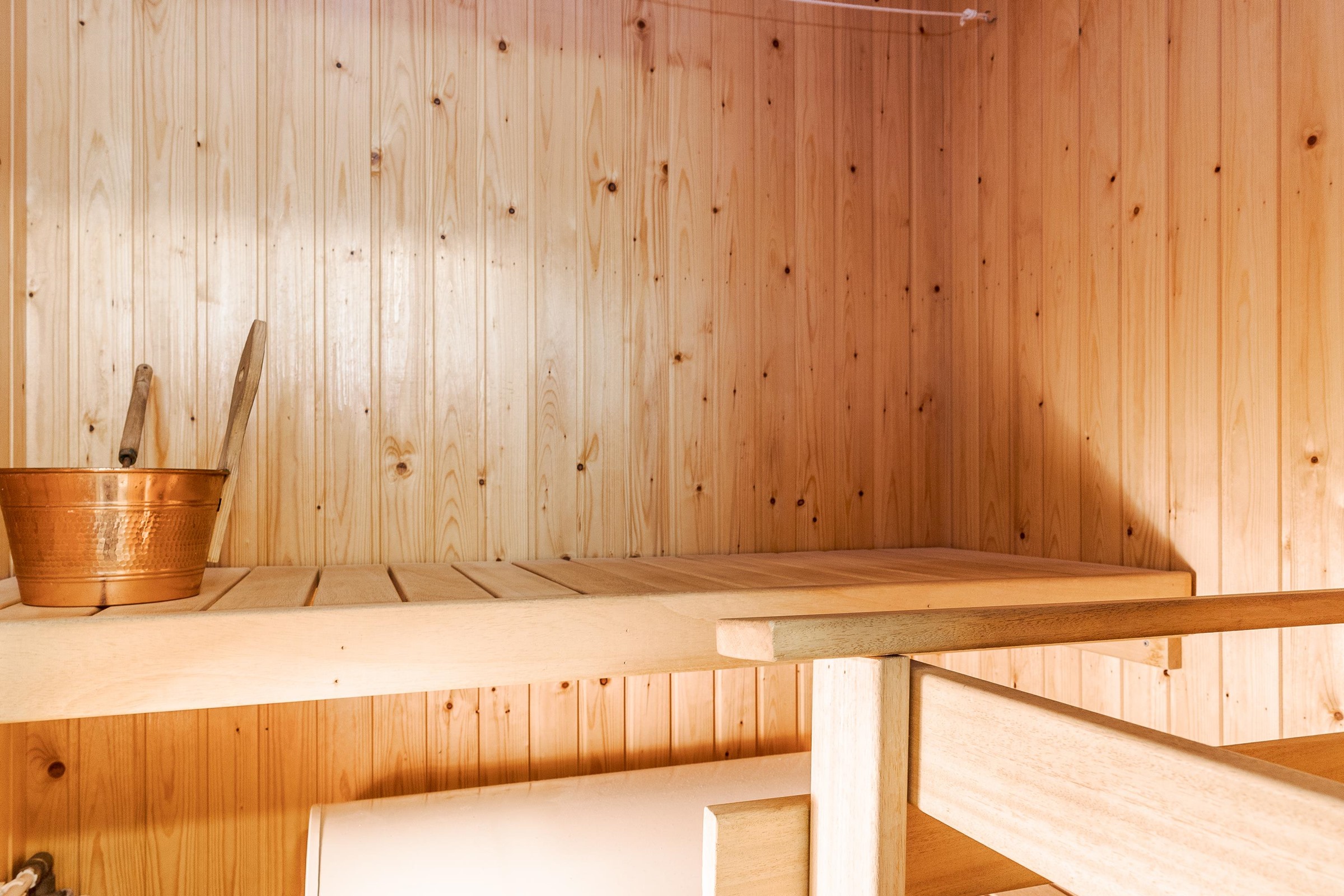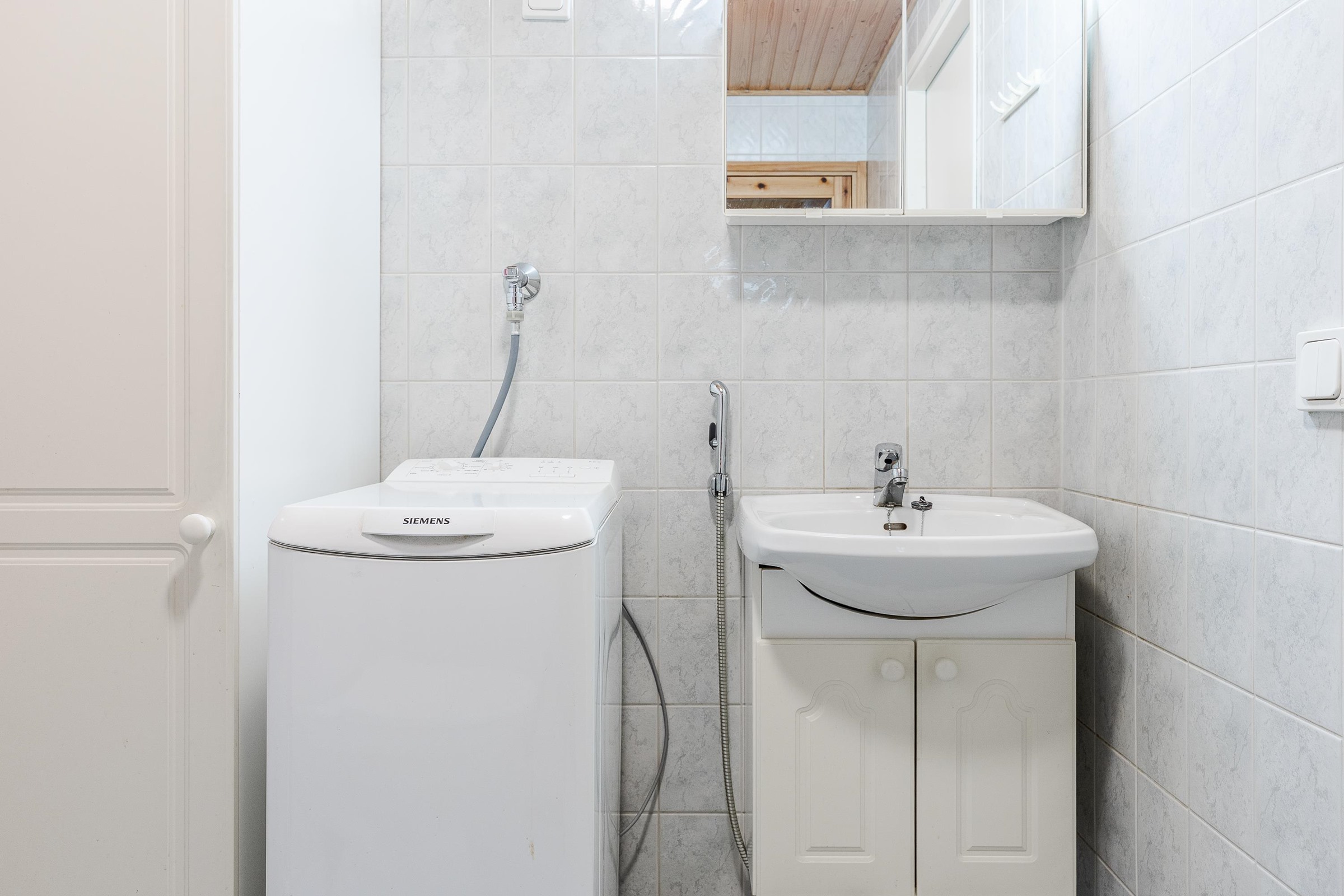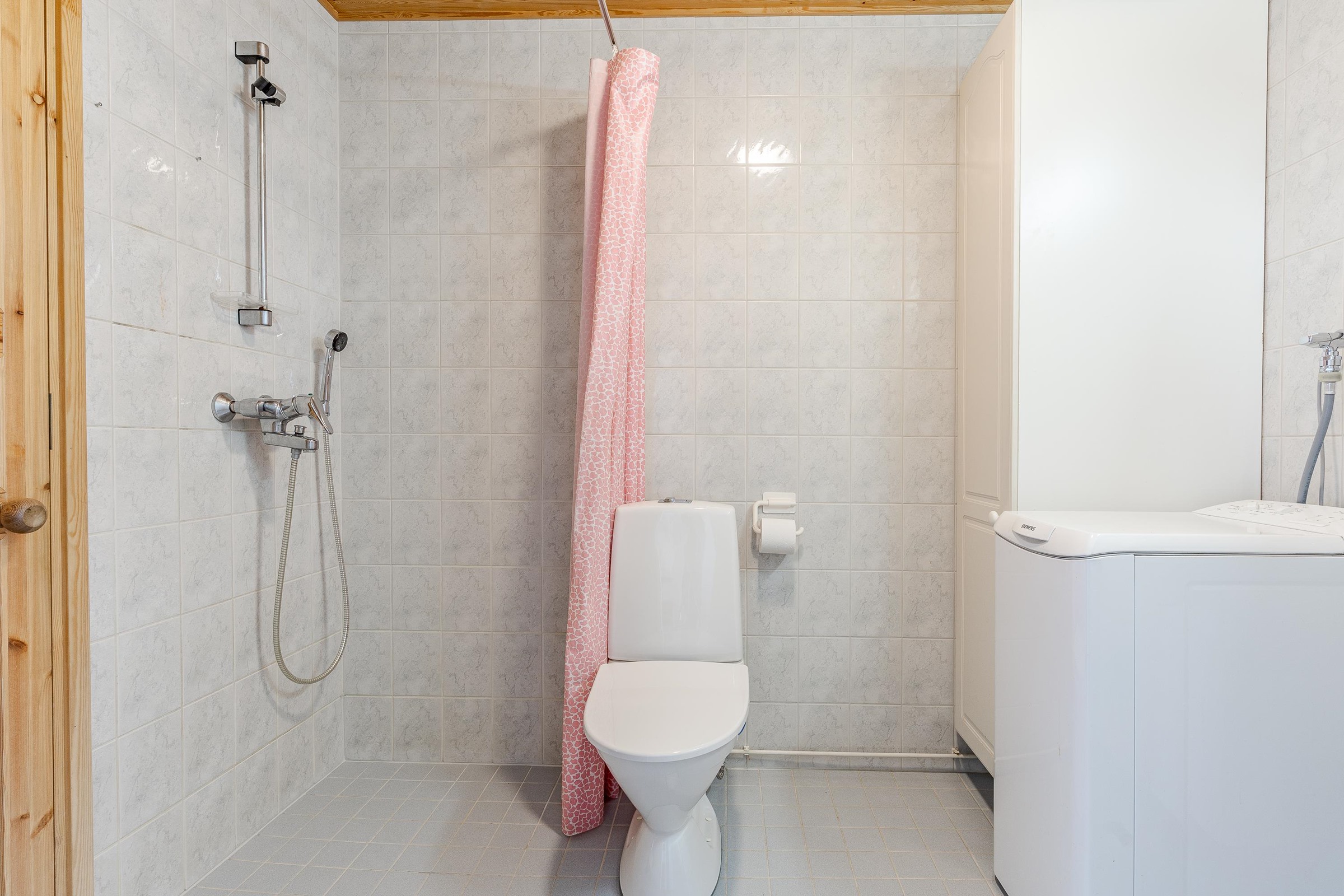 - Sauna, sähkökiuas, kylpyhuone, suihku, peilikaappi, allaskaappi, pesukoneliitäntä, lattialämmitys, kiinteät valaisimet.