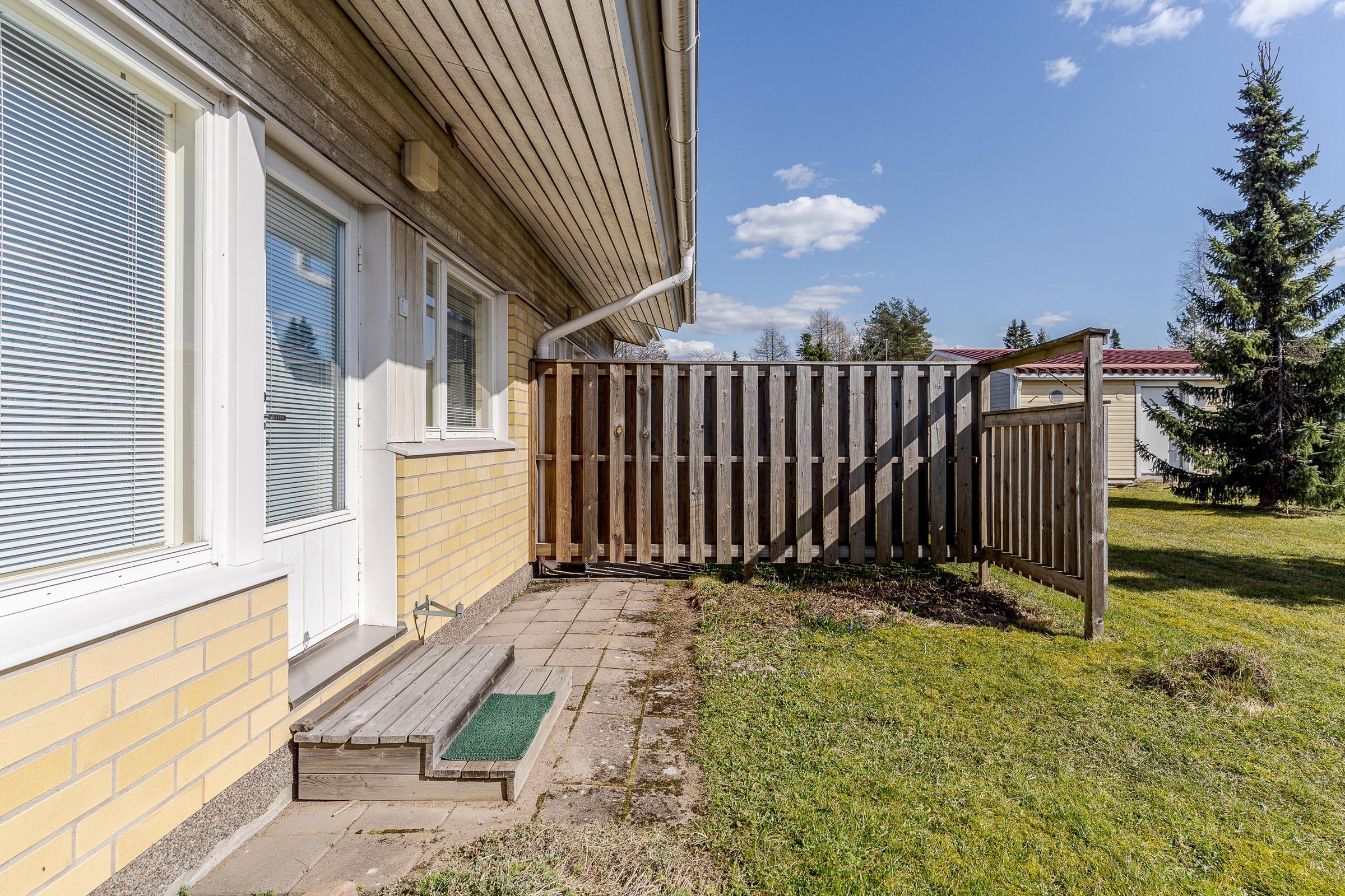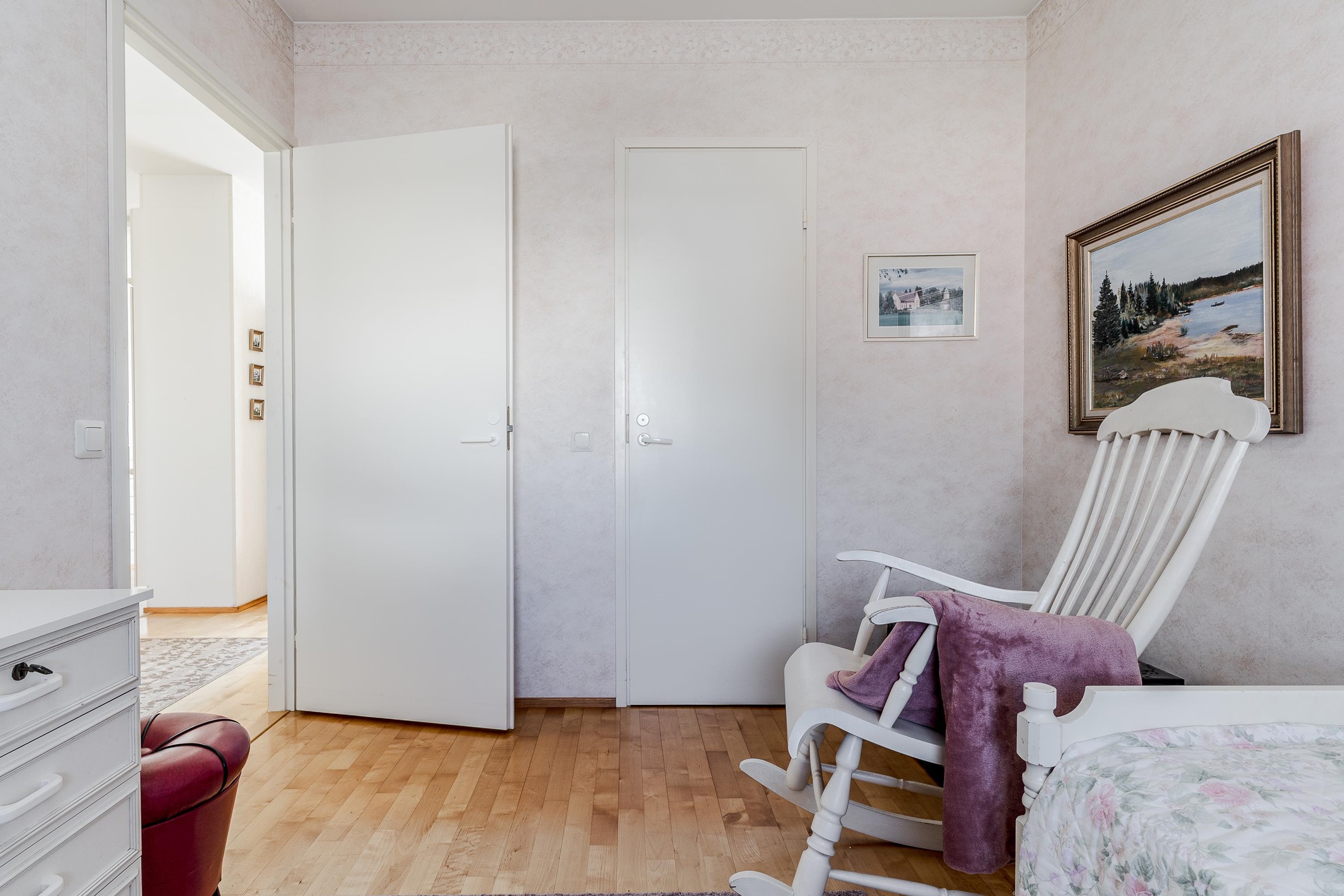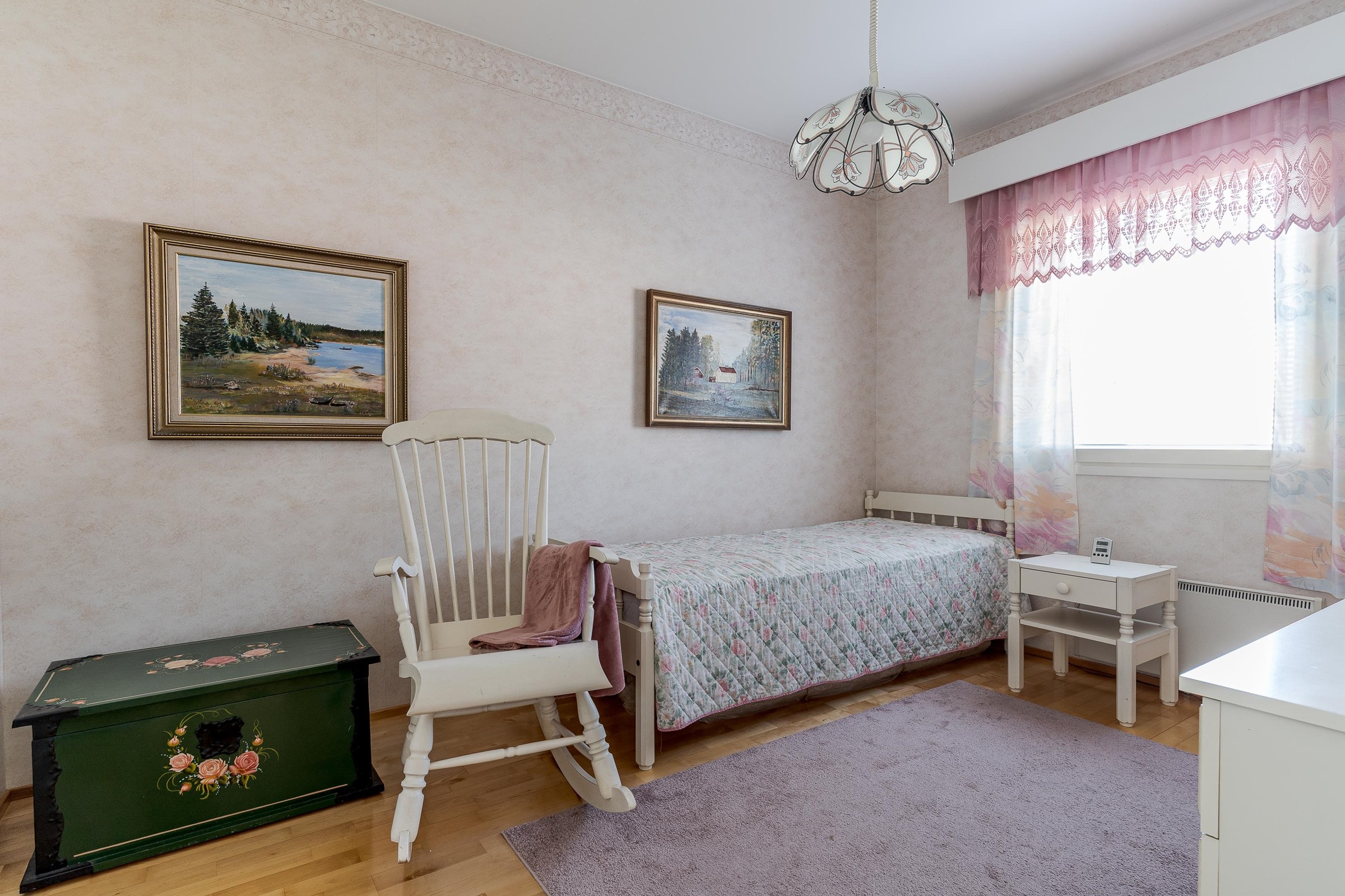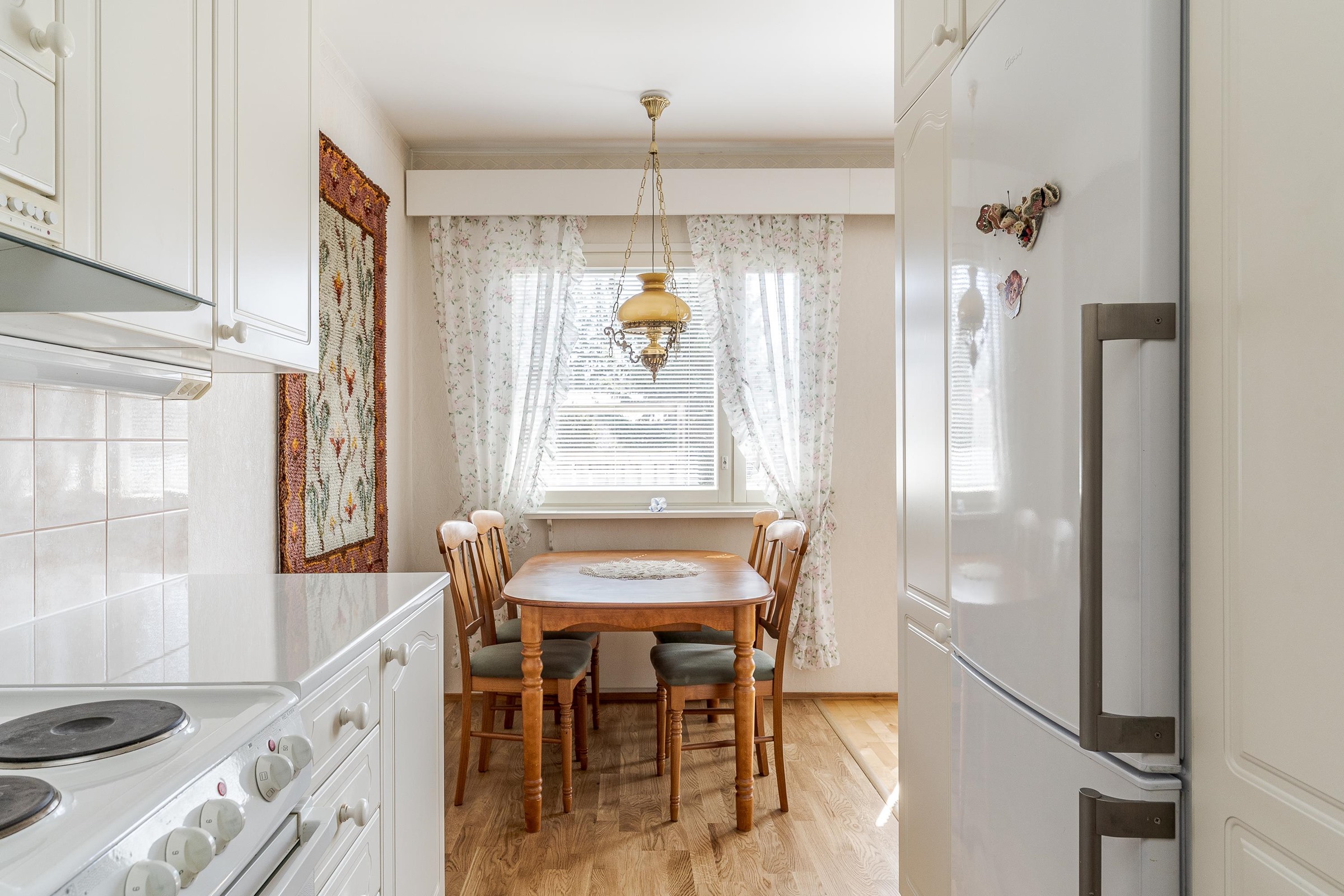 Kodin pohjaratkaisu on käytännöllinen: olohuone ja keittiö muodostavat arjen yhteisen tilan, jossa on helppo seurustella ja laittaa ruokaa yhtä aikaa. Makuuhuoneessa on tilaa sekä sängylle että säilytykselle, ja erillinen vaatehuone helpottaa arkea. Kylpyhuone on kokonaan laatoitettu, siellä on lattialämmitys ja liitäntä pyykinpesukoneelle. Oma sauna tuo kotiin rauhallisen rentoutumispaikan. Parkettilattiat, tuulikaappi ja ulkovarasto viimeistelevät kokonaisuuden.