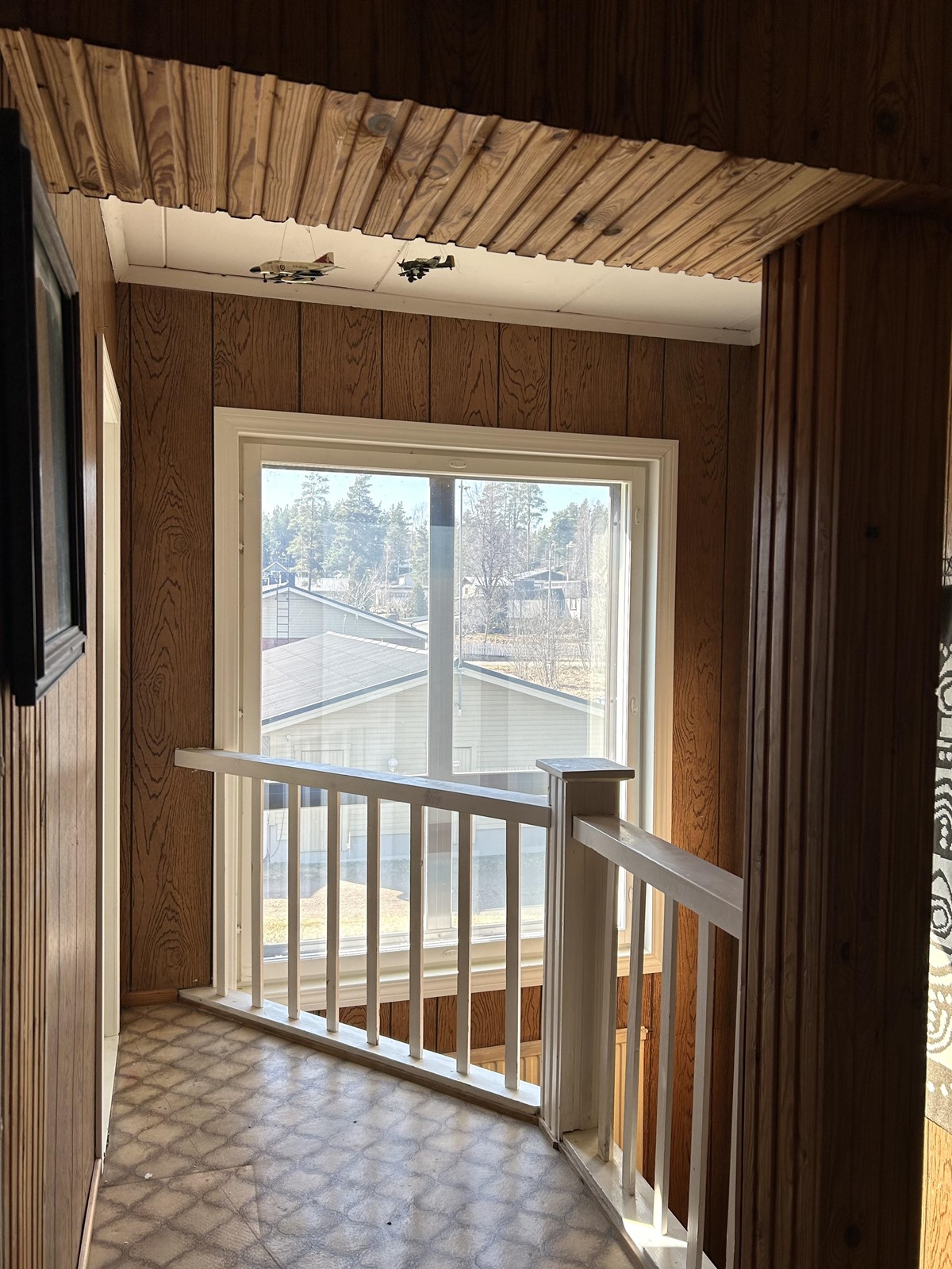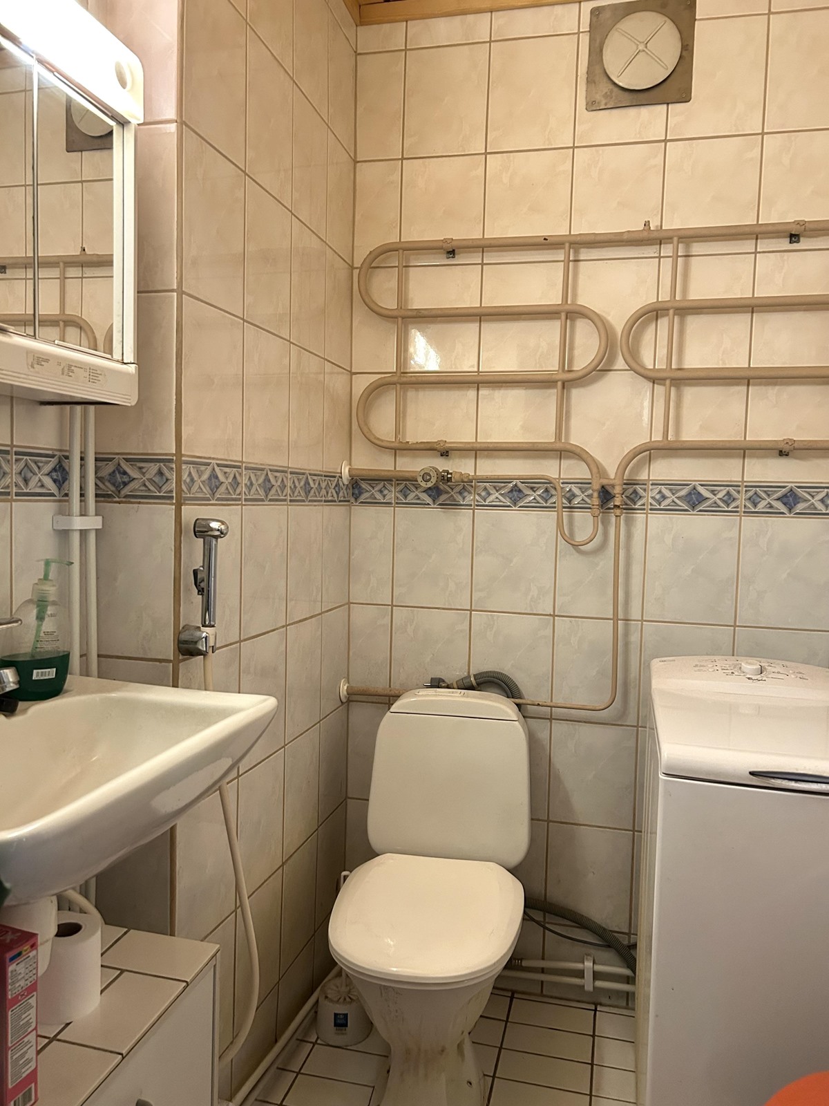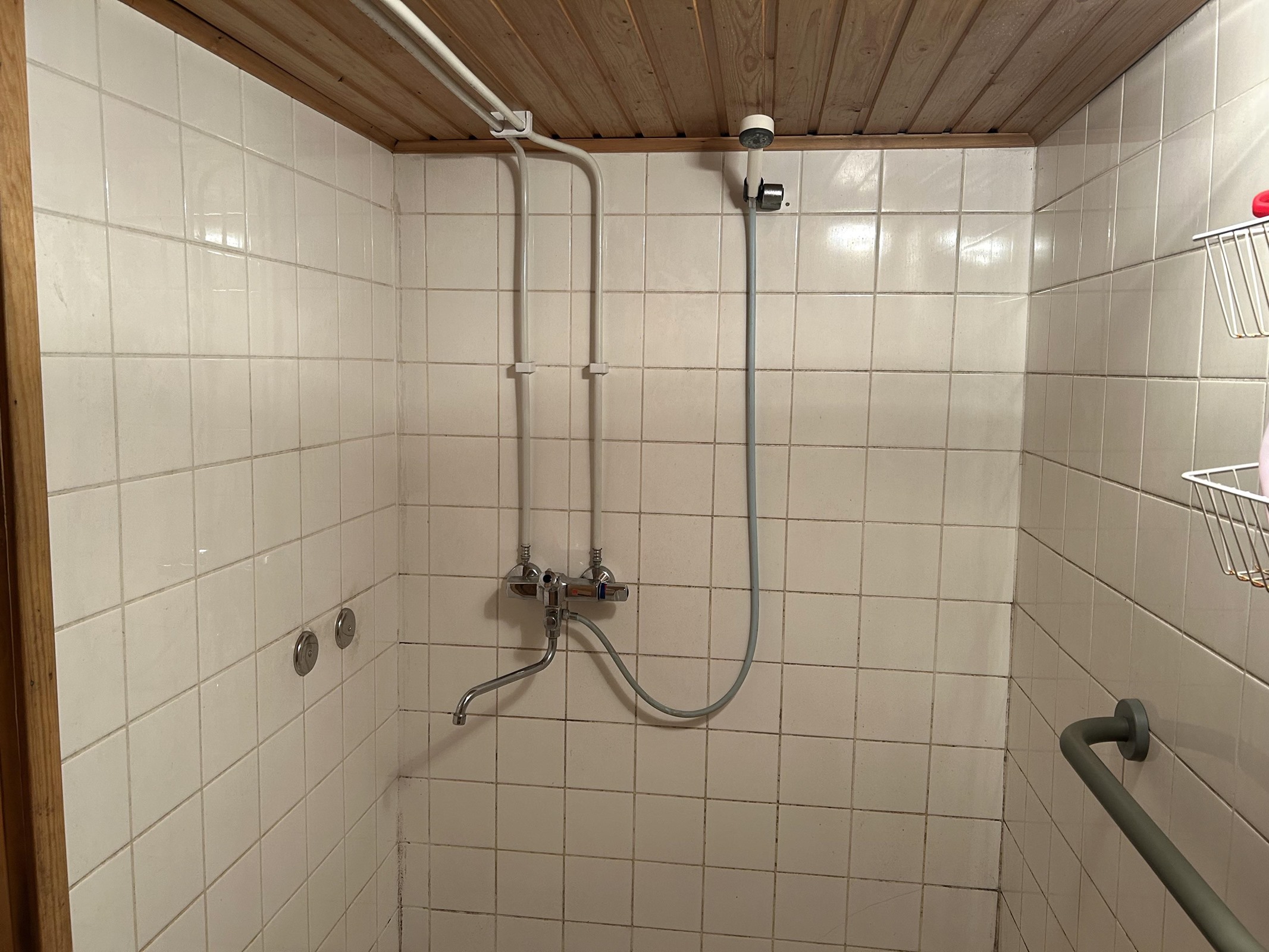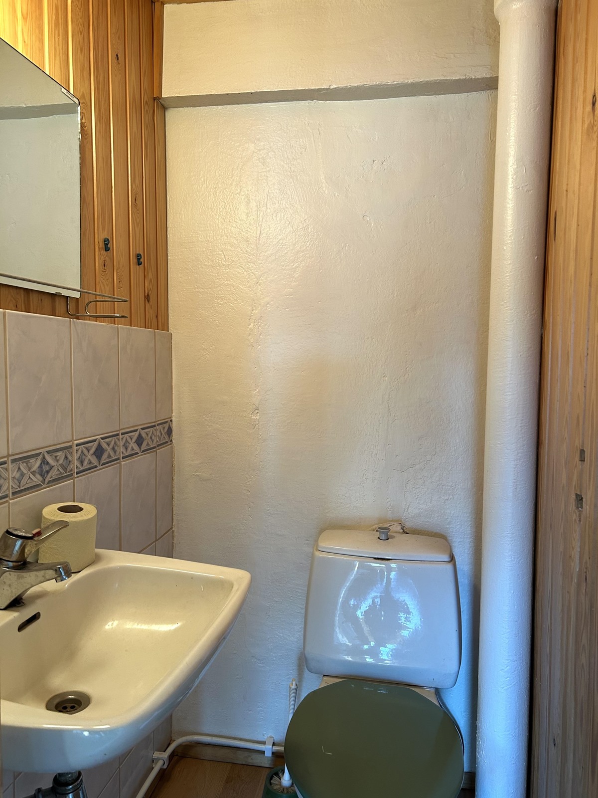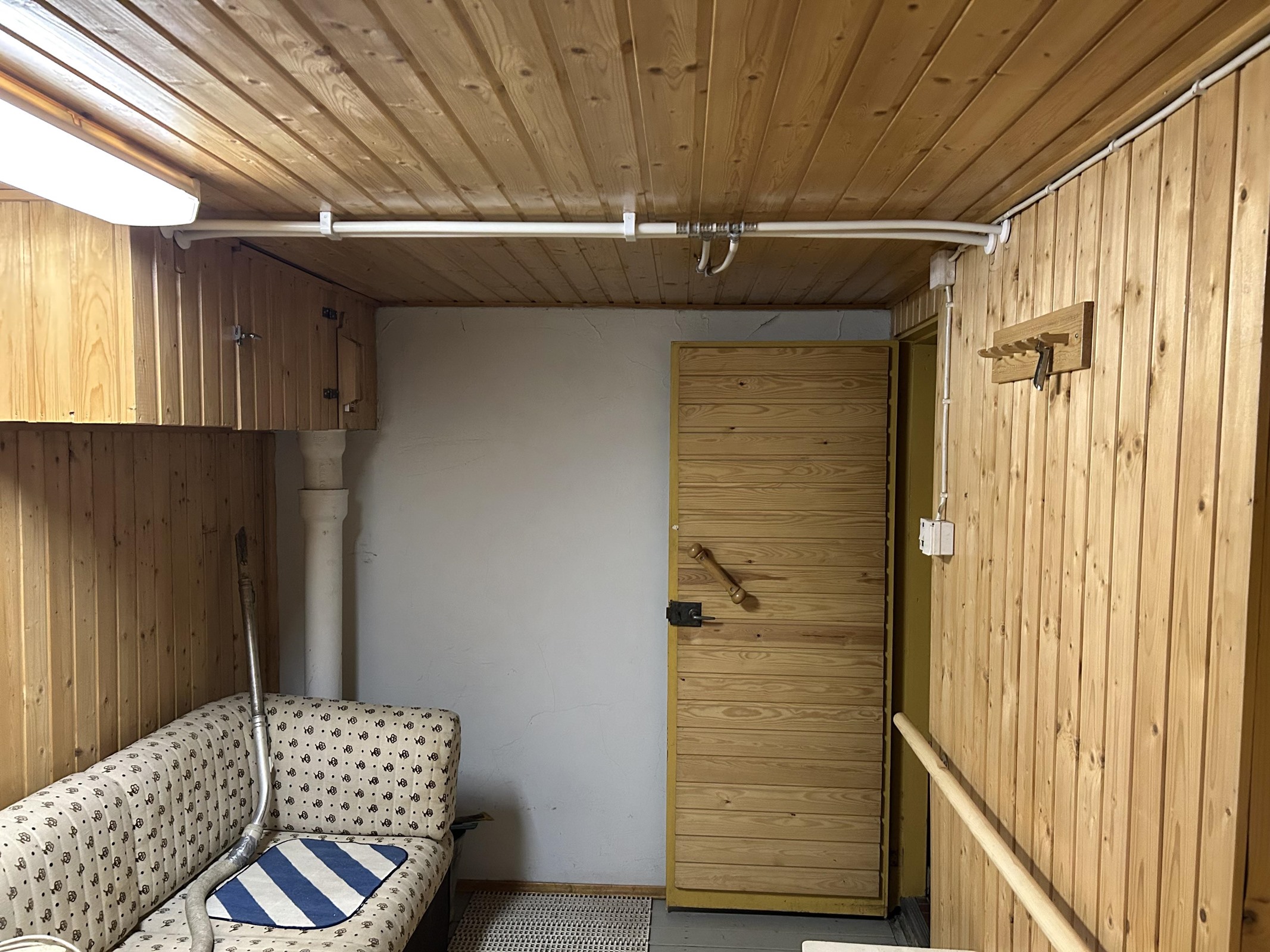 - Sauna, puukiuas, kylpyhuone, erillinen wc 2 kpl (ylä- ja alakerta), suihku, peilikaappi, allaskaappi, pesukoneliitäntä alakerran wc, kiinteät valaisimet.