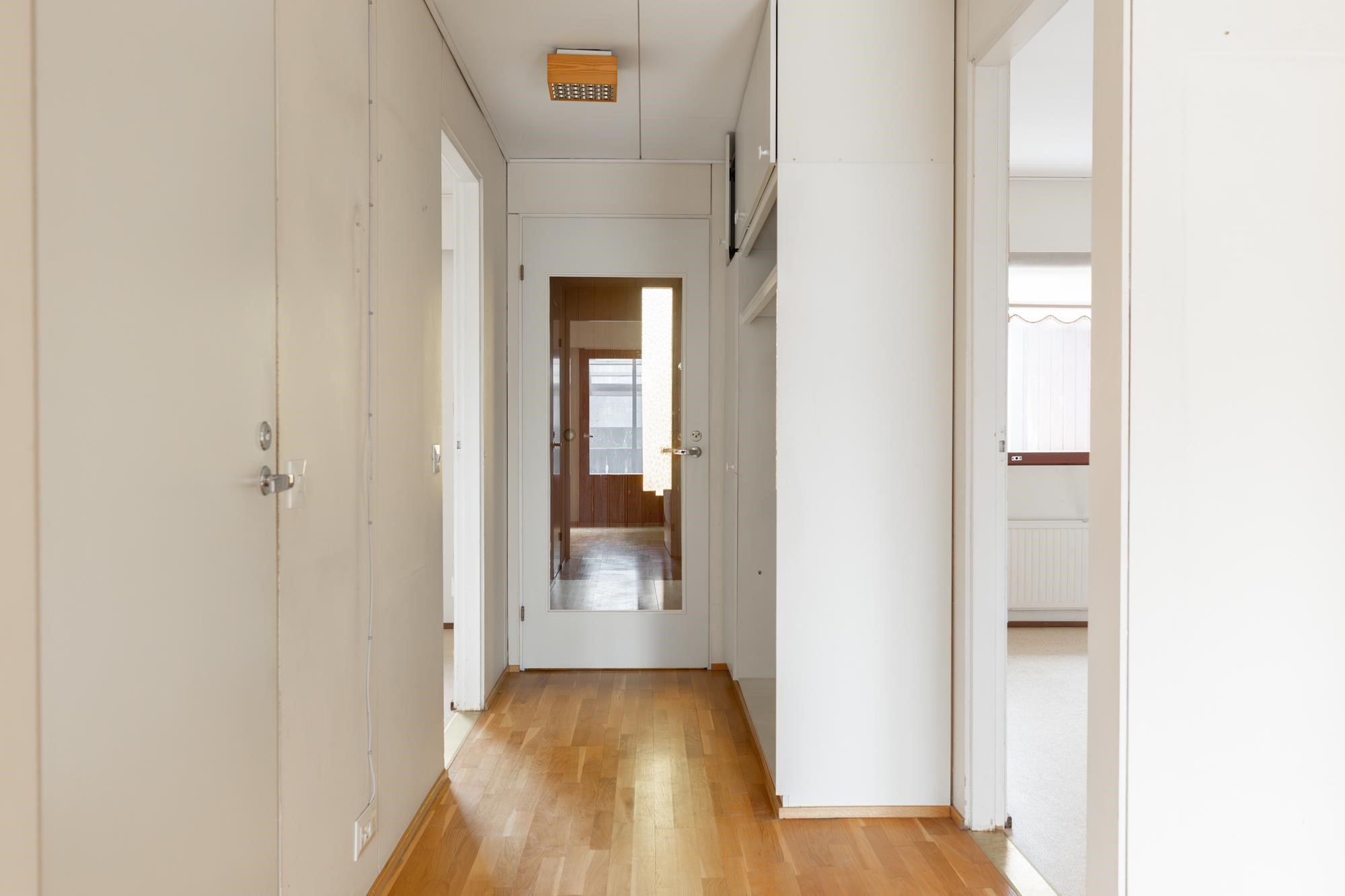 Keittiö: Muovitmatto / maali. Olohuone: Parketti / tapetti. Makuuhuone 1: Muovimatto / tapetti. Makuuhuone 2: Muovimatto / tapetti. Sauna: Muovimatto / paneeli. Kylpyhuone: Muovimatto / laatta.