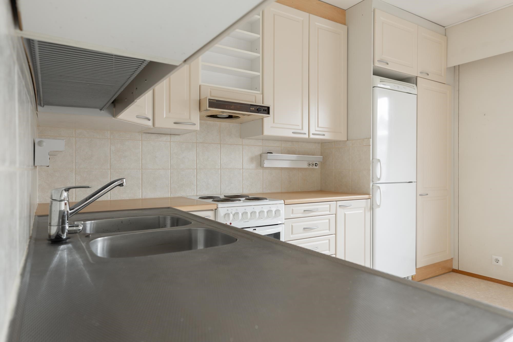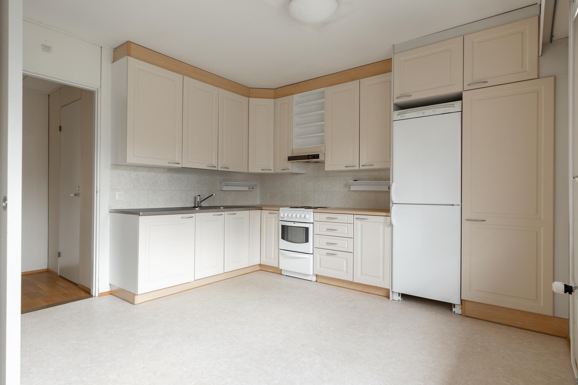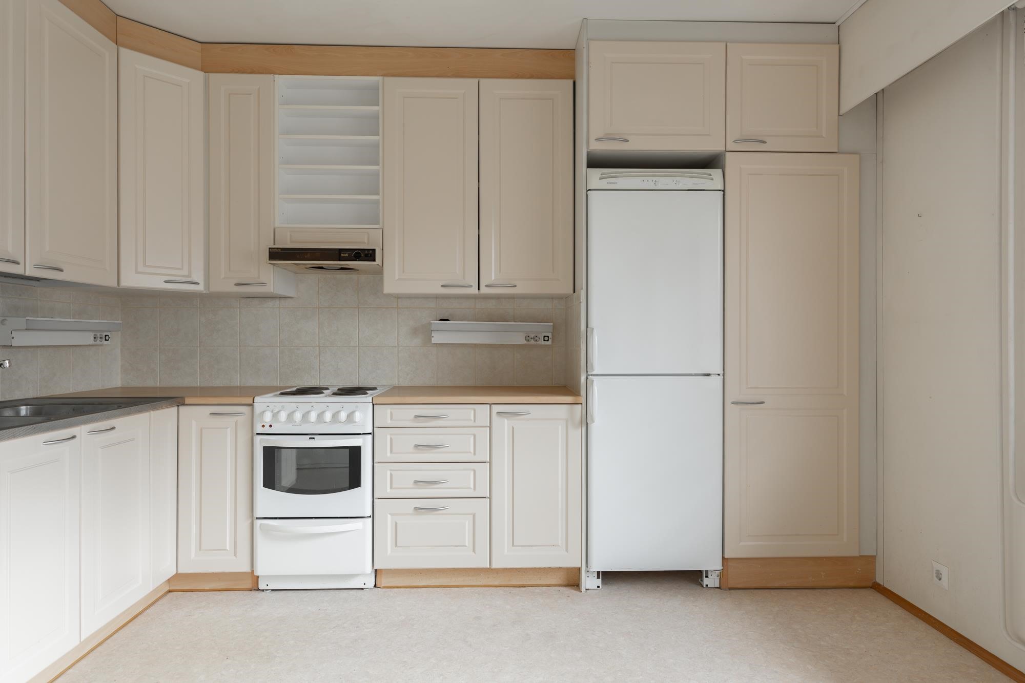 - Jääkaappipakastin, sähköliesi, liesituuletin, kaapistot, kiinteät valaisimet.
