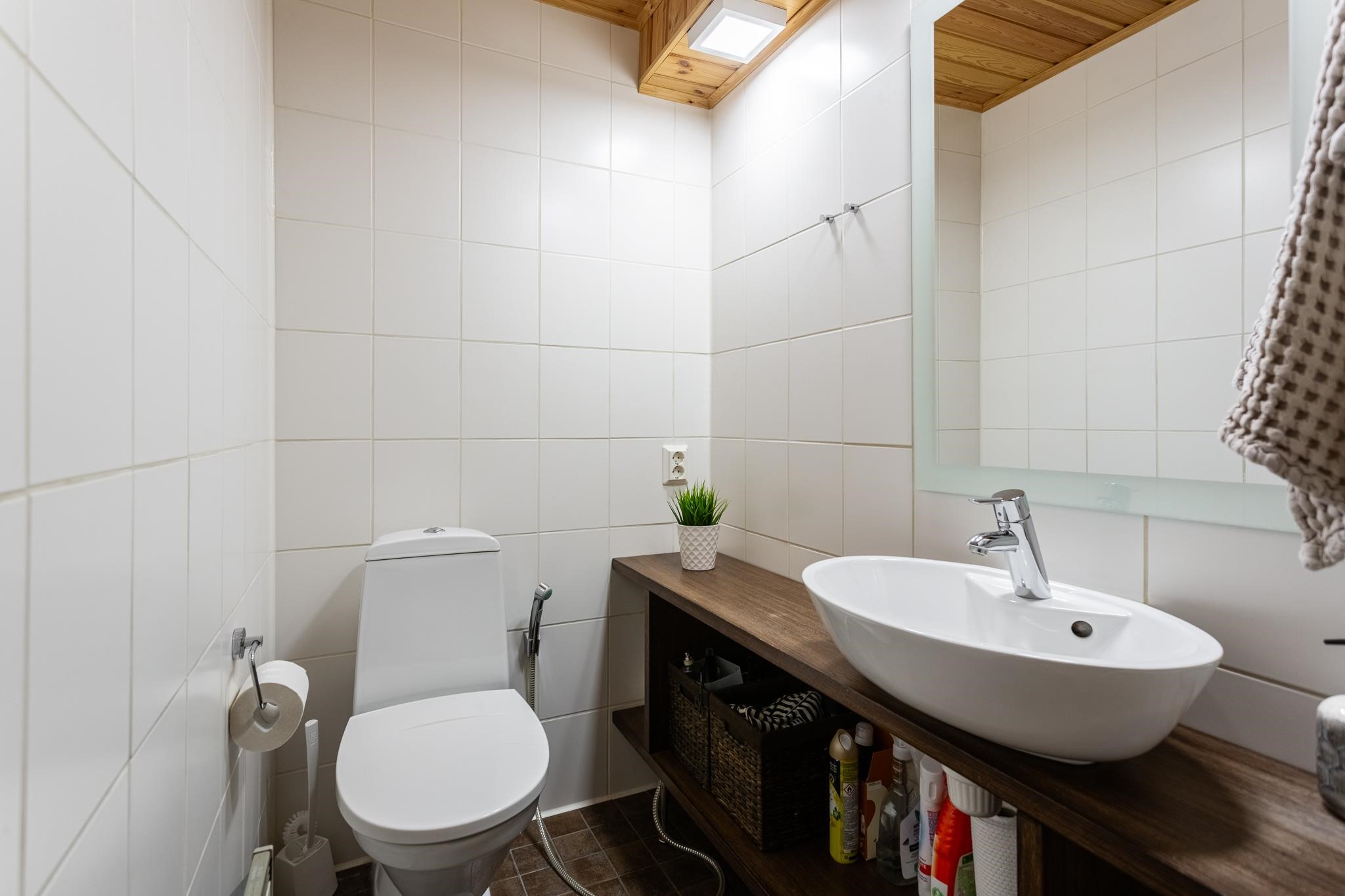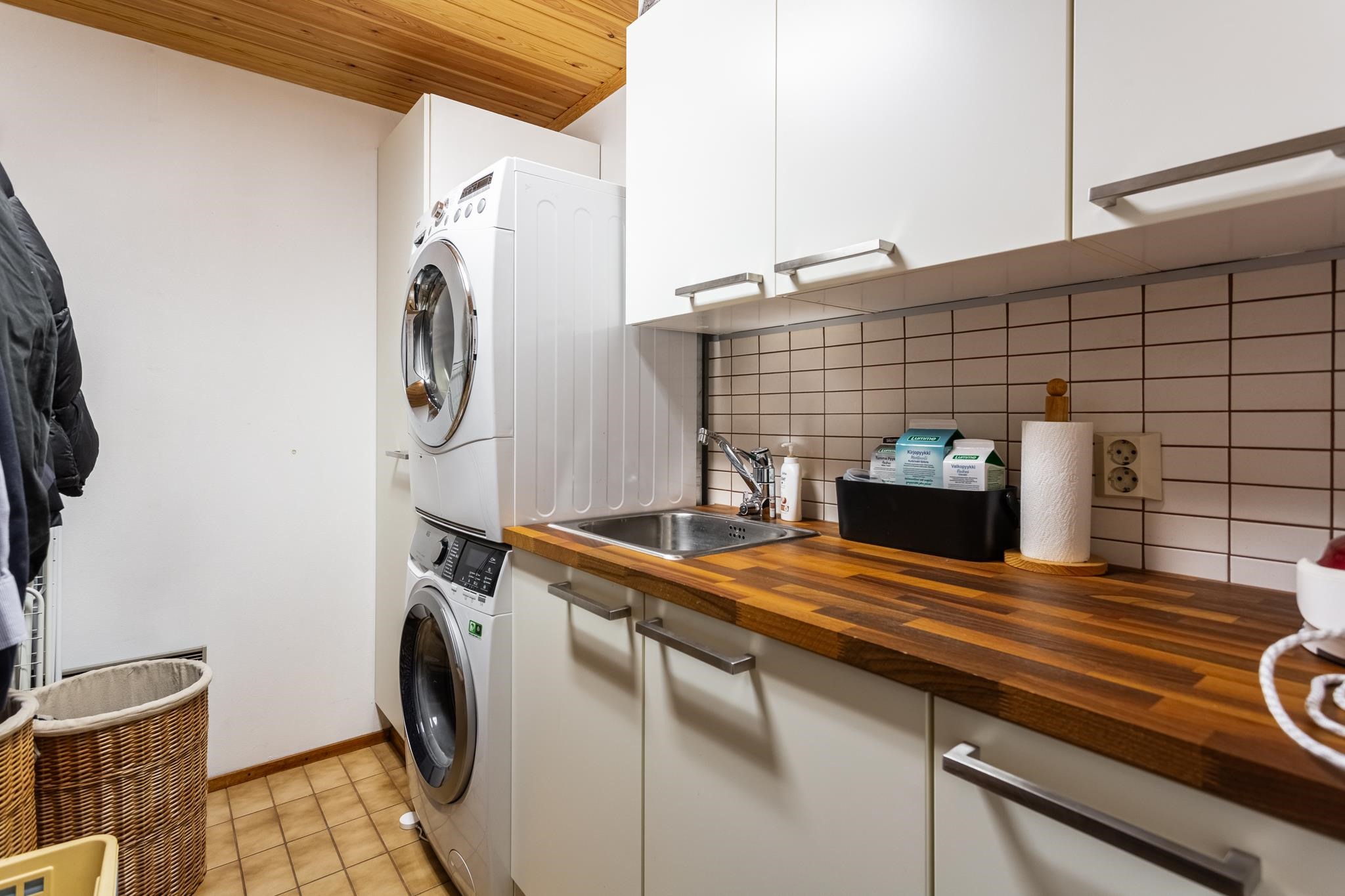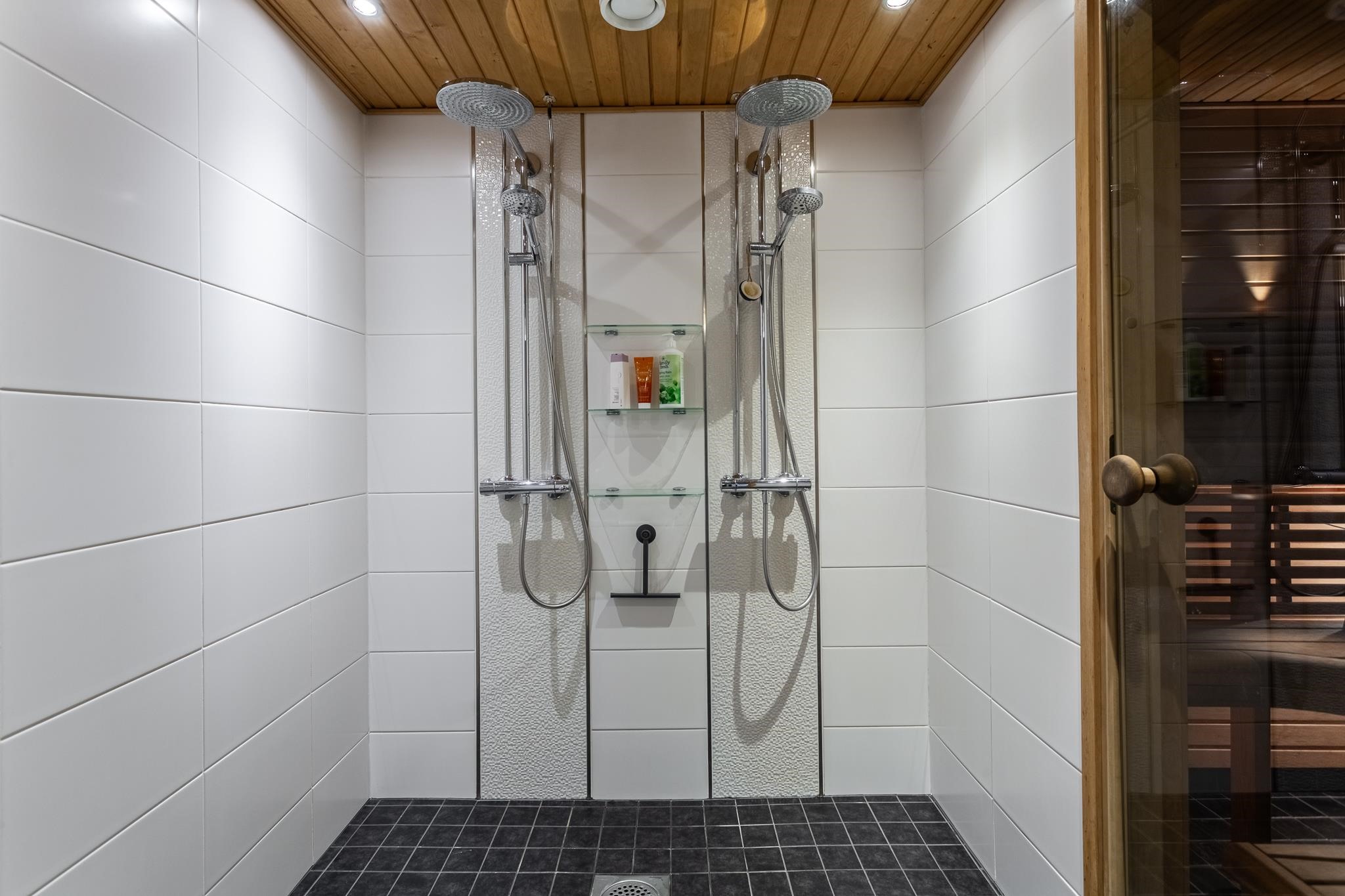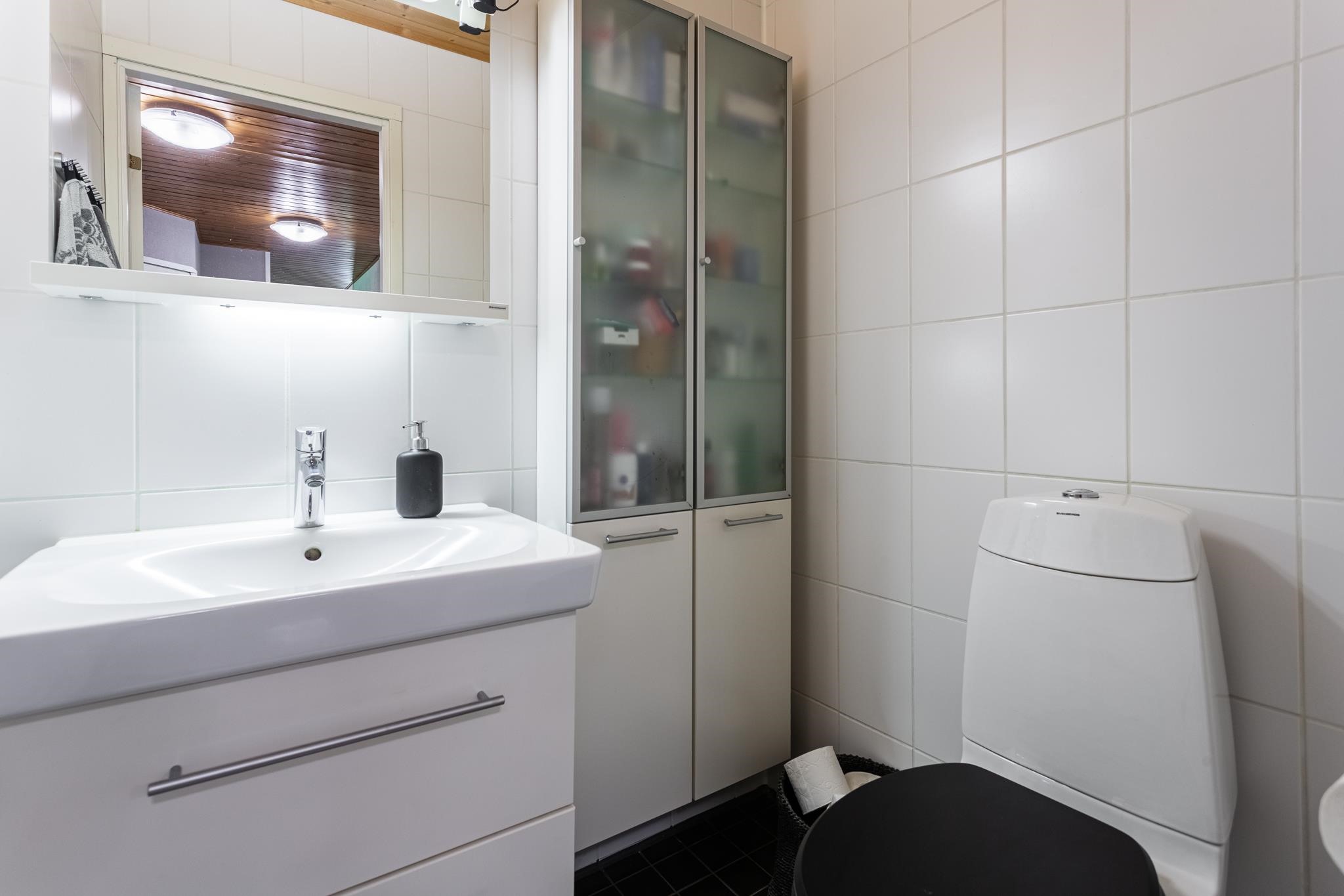 - Sauna, sähkökiuas, kylpyhuone, erillinen wc, suihku, peilit, peilikaappi, kaapit, allaskaappi, pesukoneliitäntä, lattialämmitys, kiinteät valaisimet, Sähkölämmitteinen kuivausteline.