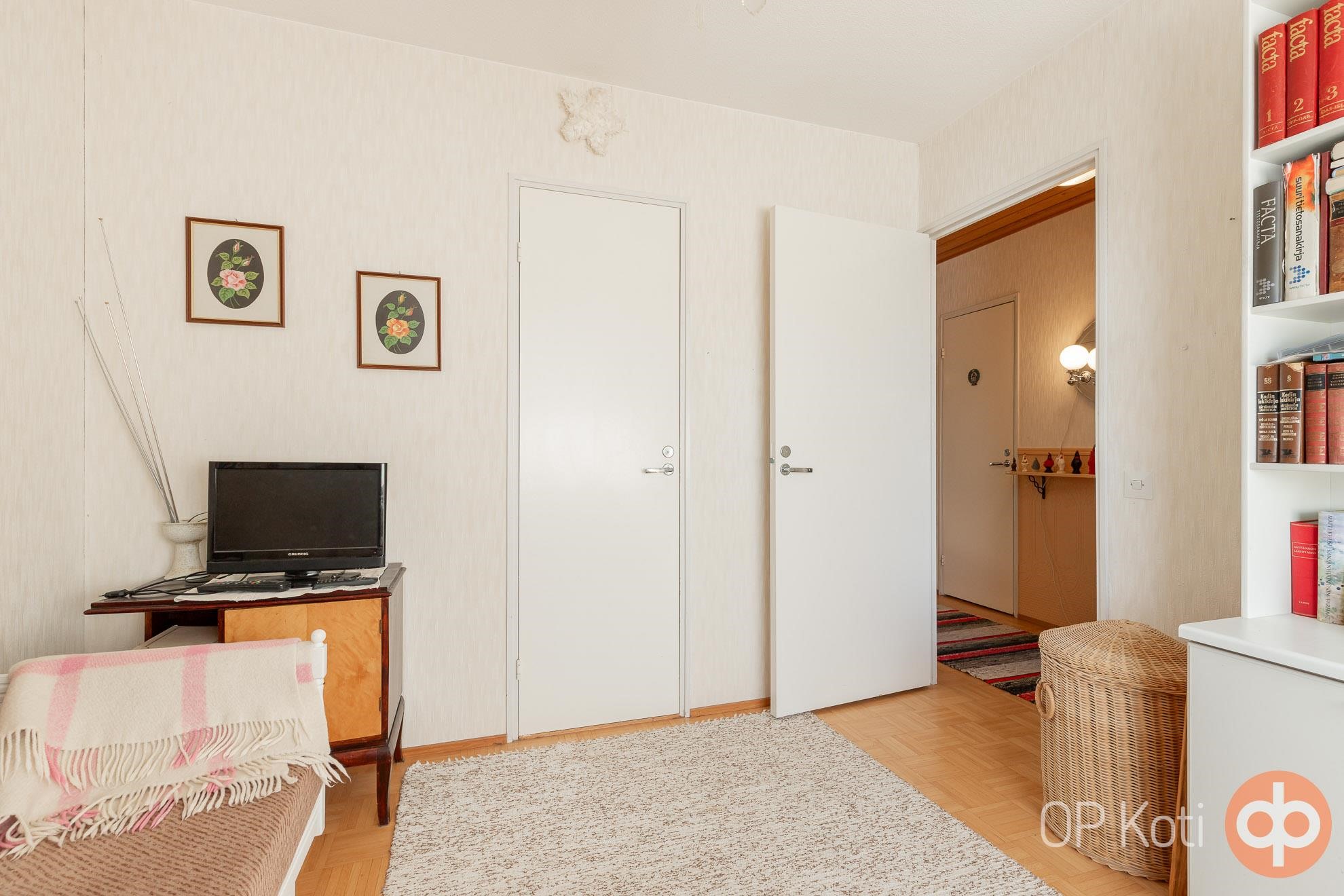 Keittiö: Lattia parketti, seinät maalattu. Olohuone: Lattia parketti, seinät maalattu. Makuuhuone 1: Lattia parketti, seinät maalattu. Makuuhuone 2: Lattia parketti, seinät maalattu. Sauna: Laatta lattia, seinät paneeli. Kylpyhuone: Laatta, kaakeli. Eteinen: Lattia muovimatto, seinät maalattu.