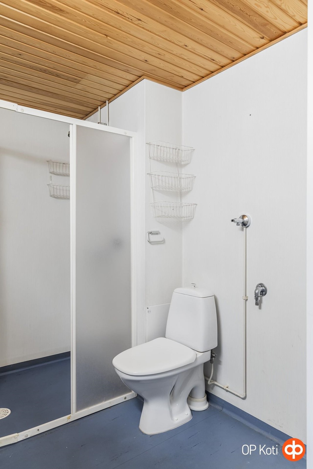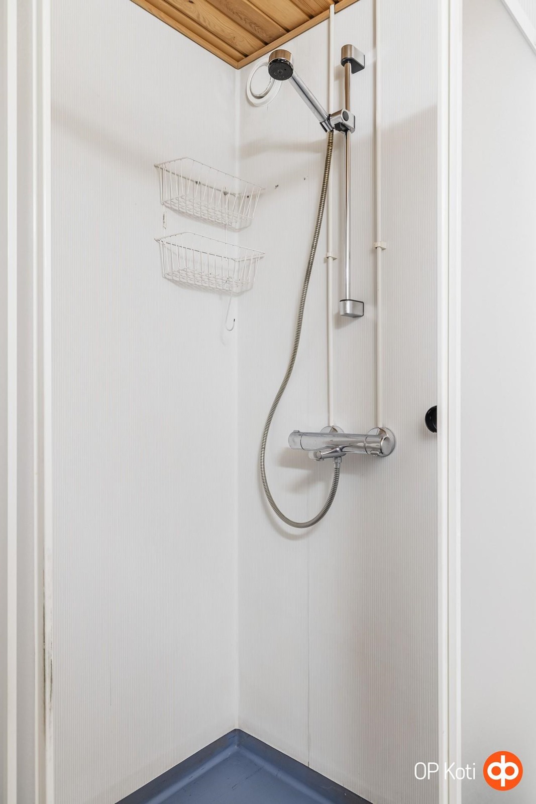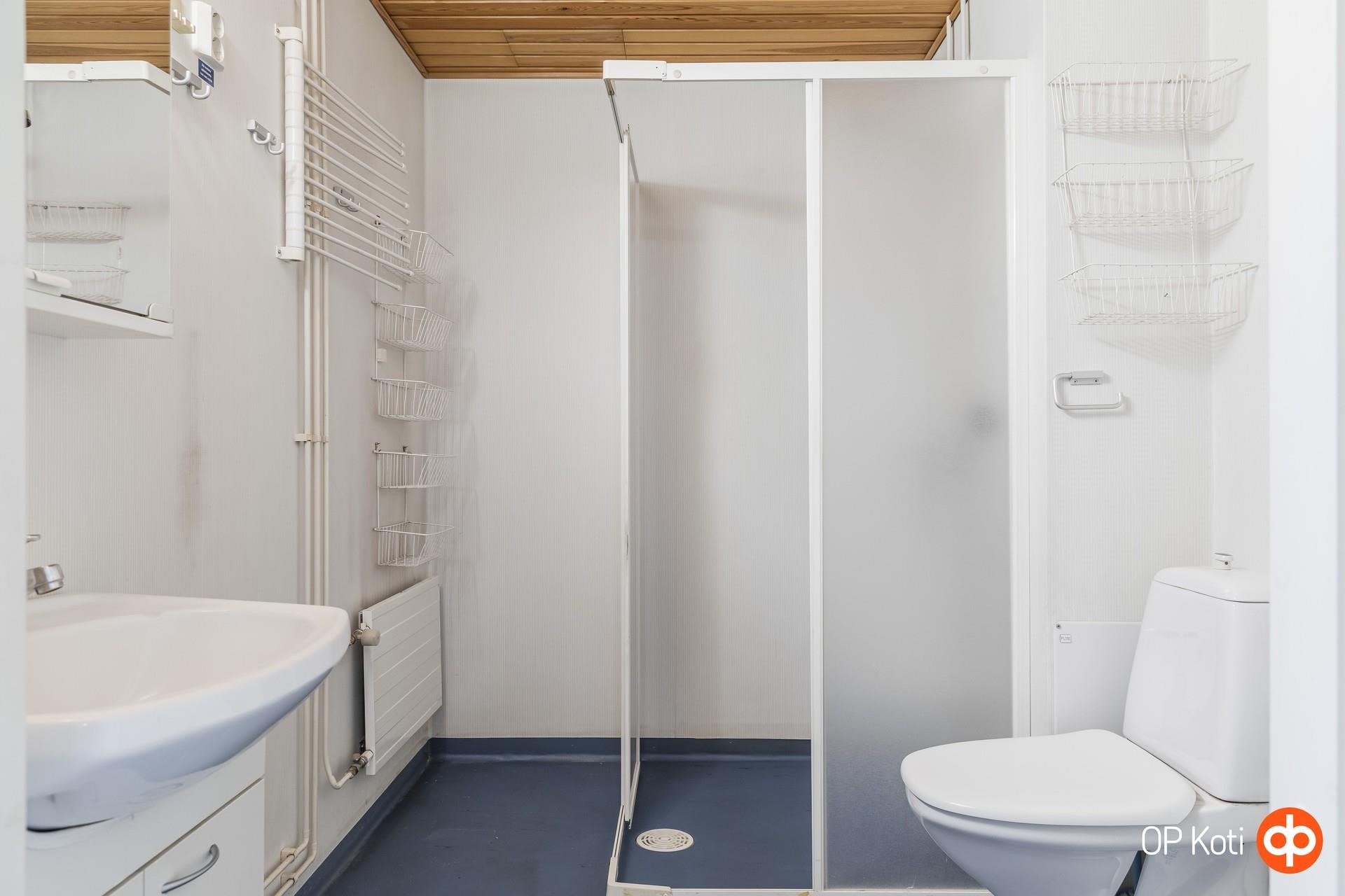 - Kylpyhuone, suihku, suihkukaappi, peilikaappi, allaskaappi, pesukoneliitäntä, kiinteät valaisimet.