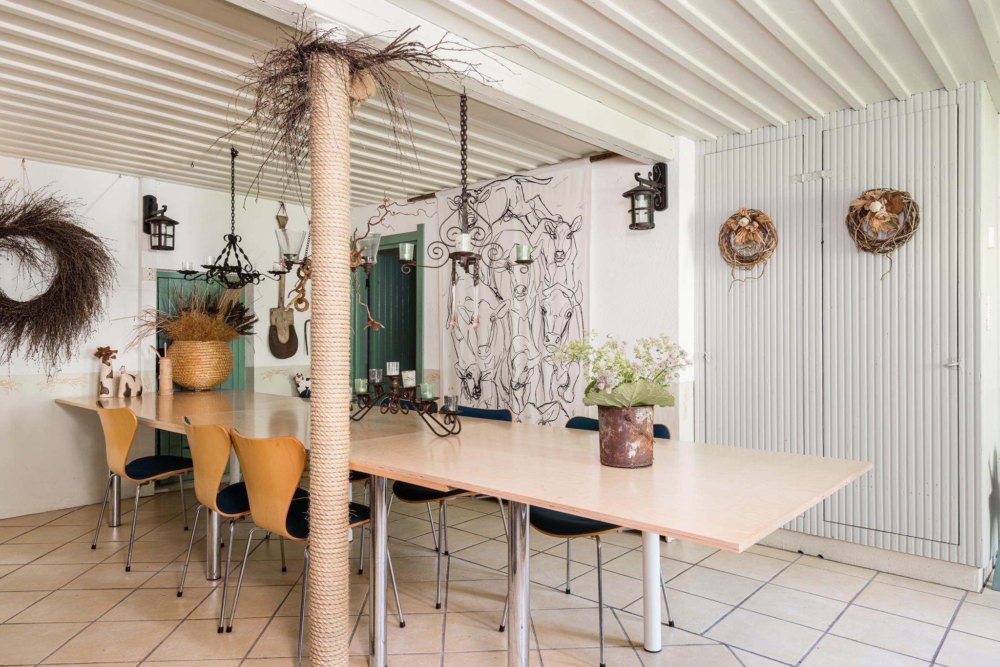 Kanalasta tehty lämmin vierashuone.