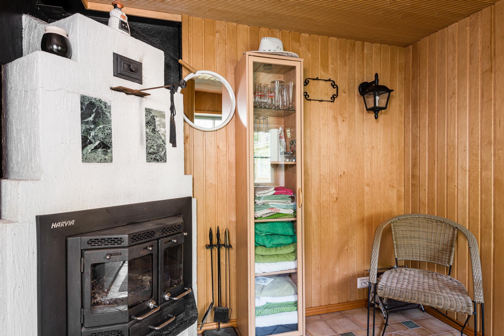 - Sauna, puukiuas, kaapit, lattialämmitys, kiinteät valaisimet, puucee kompostoiva ja kuiva-WC.