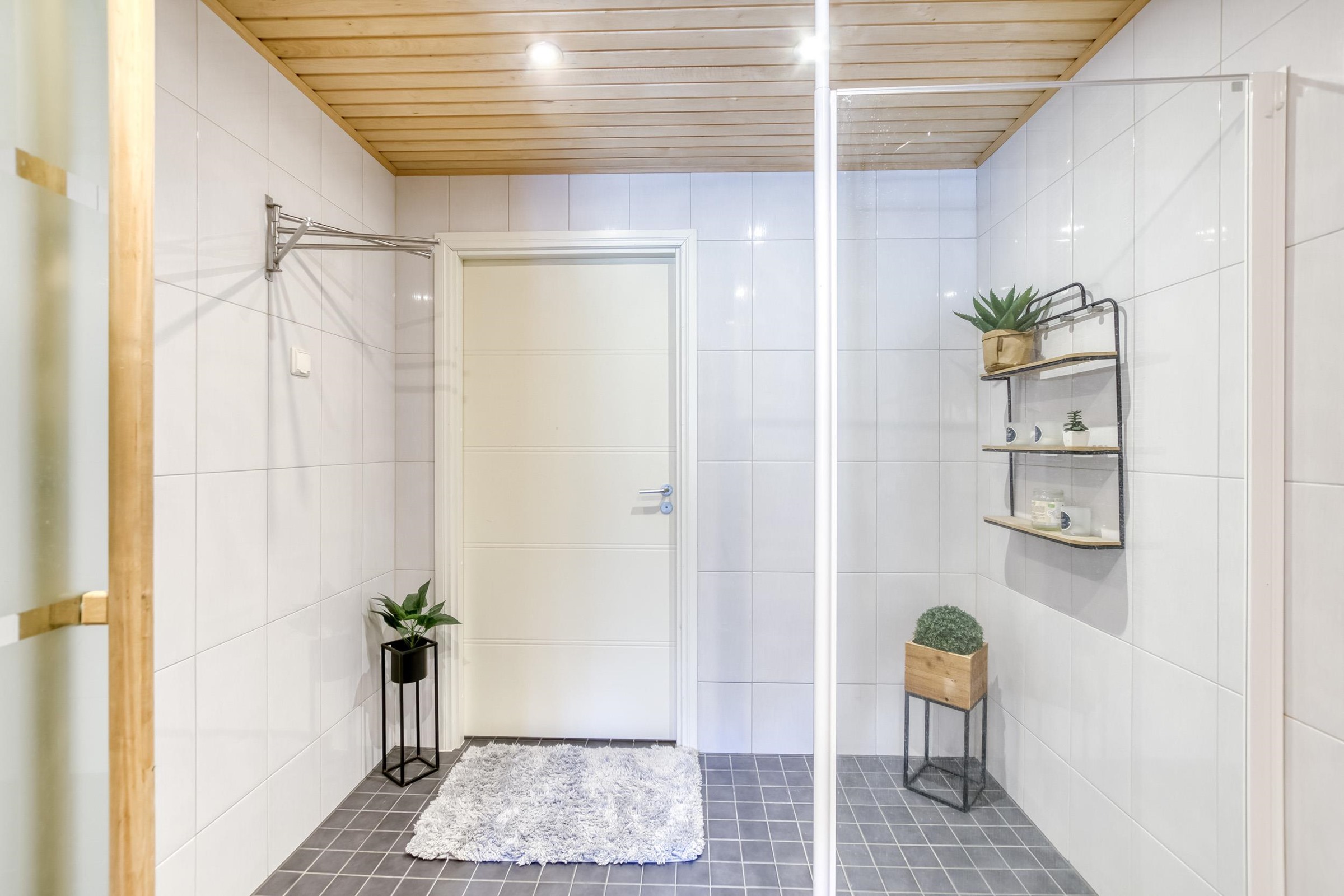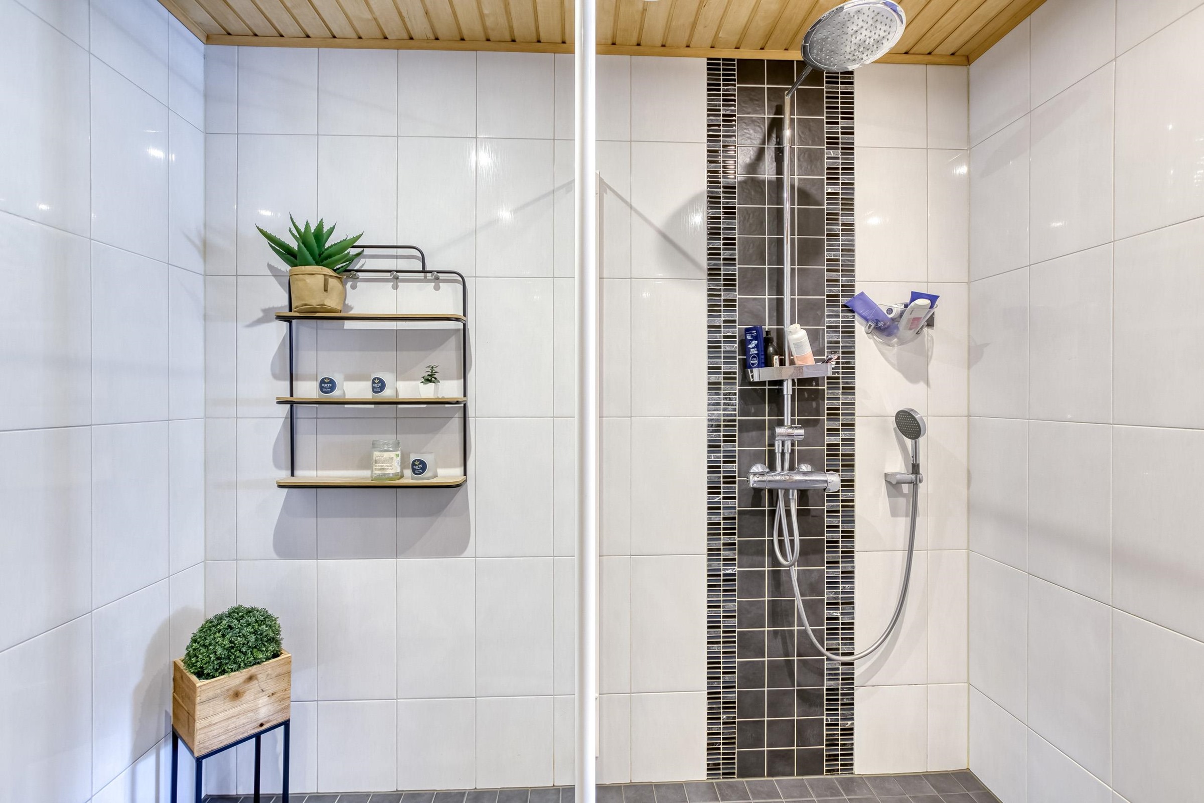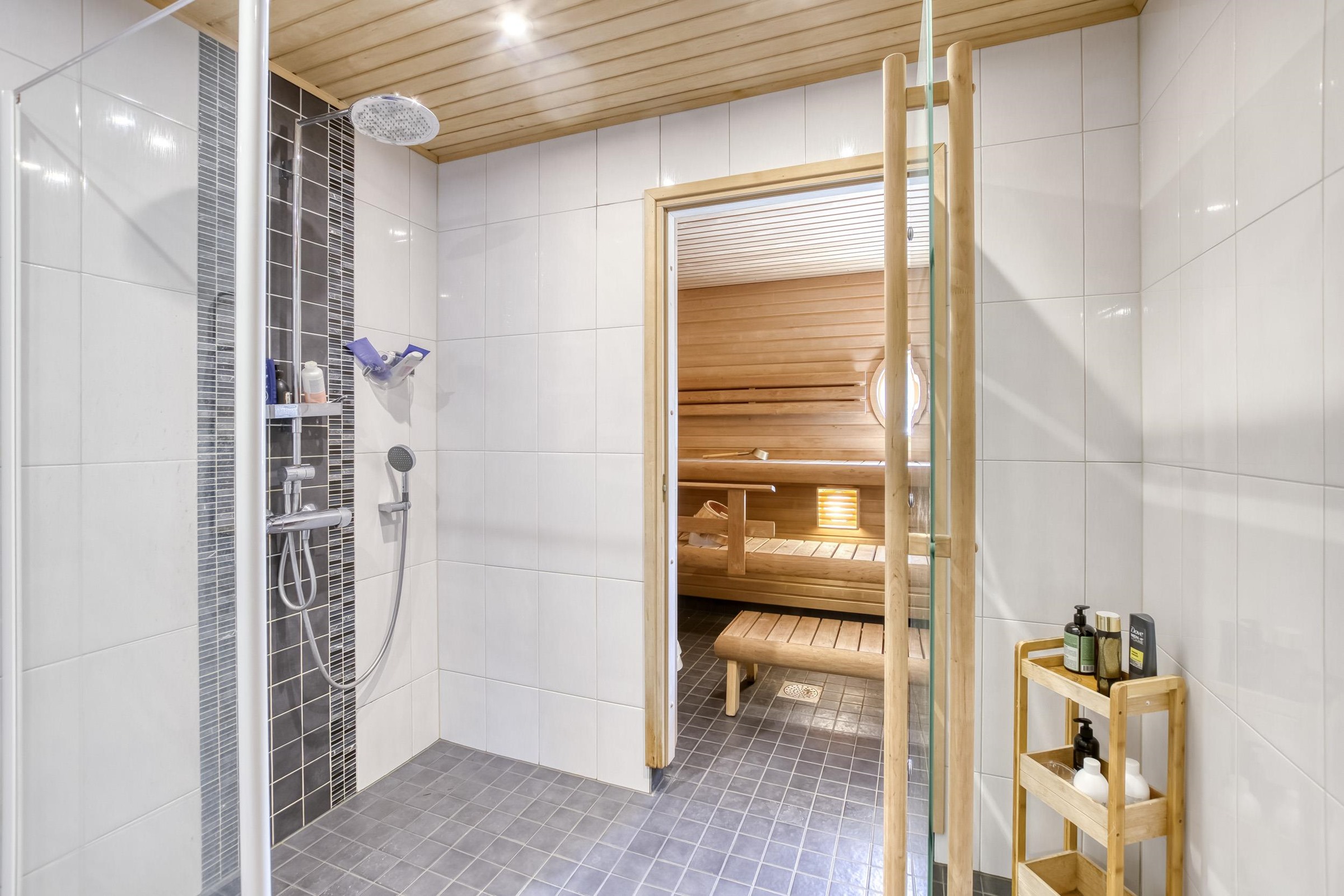 - Sauna, sähkökiuas, kylpyhuone, erillinen wc, suihku, suihkuseinä, peilikaappi, allaskaappi, pesukoneliitäntä, lattialämmitys, kiinteät valaisimet.