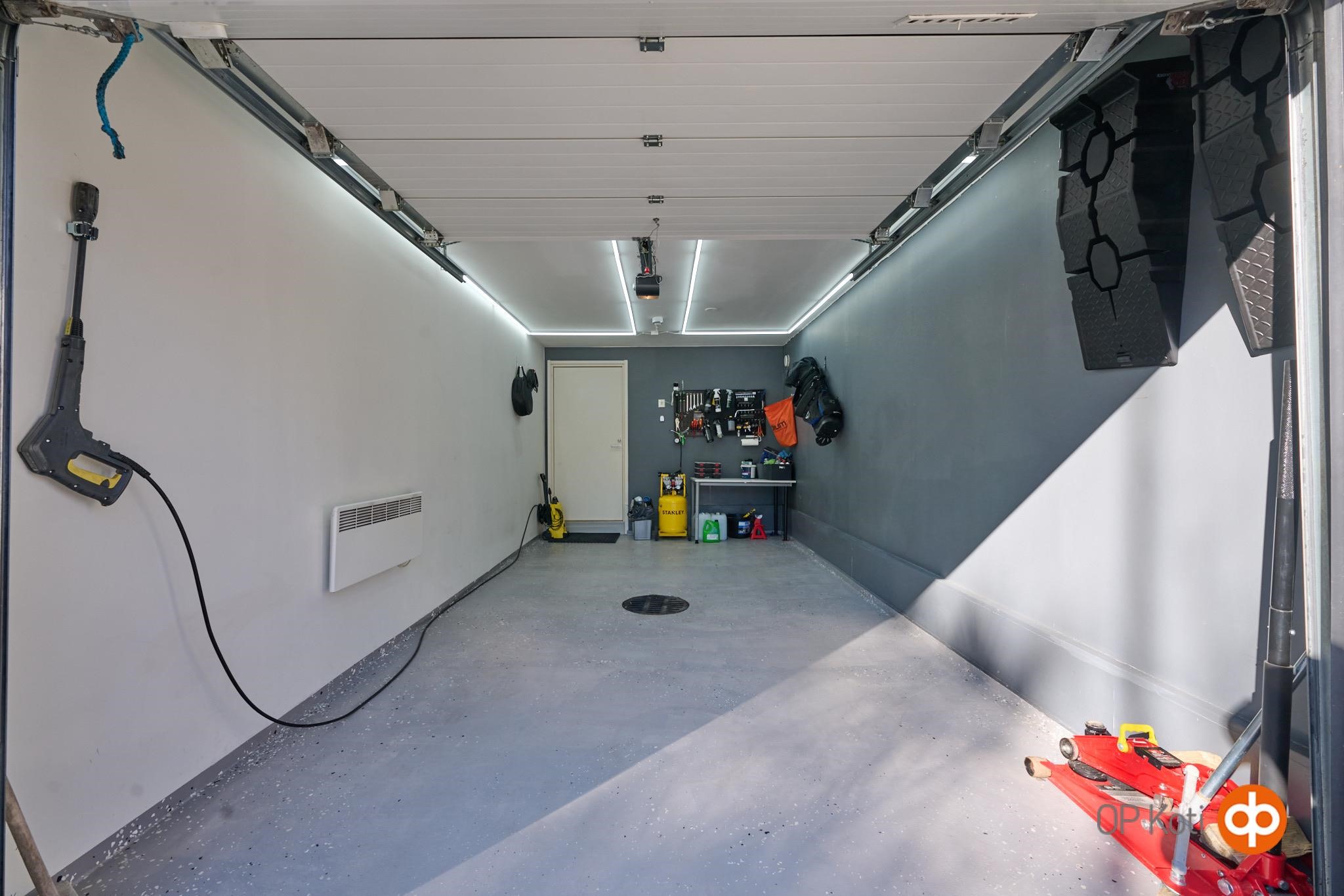Rakennus maalattu 2013, Pihoja sepelöity 2014 ja 2025. Autotallin edustan laatoitus 2023 Maantasoitus töitä tehty autotallin sivulle 2025 Ilmanvaihtokanavien nuohous ja mittaus 2025. Asunnon remontit: Tehdyt remontit ja korjaukset Aikaisemman omistajan tekemät: -Autotalliin asennettu toinen käyntiovi. -Huoneistoon asennettu ilmalämpöpumppu vuonna 2016. -Terassille asennettu ulkoporeallas vuonna 2020. -Asunnon lattiat hiottu vuonna 2015 ja samalla asennettu uudet jalkalistat. Nykyisen omistajan tekemät: -Pintaremonttia tehty vuosina 2022–2023, lattioihin asennettu vinyylikorkki. -Autotallin pintaremontti, lattia ja katto maalattu sekä lattiaan tehty epoksipinnoite. -Autotallin oven älyavaus mobiilisovelluksella vuonna 2024. -Pihan kivetys autotallien eteen sekä liuskekiveys asunnon viereen vuonna 2023. -Lämmitystermostaatit uusittu vuonna 2022. -Sähkökatkaisimet ja pistorasiat uusittu vuonna 2023. -Etupihan maanrakennustyöt vuonna 2025, pihan tasaus ja uudet sepelit. -Erillisen WC:n vesikalusteet uusittu vuonna 2024. -Ilmanvaihtokanavien nuohous ja ilmamäärien mittaus vuonna 2025. -Katon tiilien puhdistus ja pinnoitus tilattu vuodelle 2026, toteutus touko–kesäkuussa.