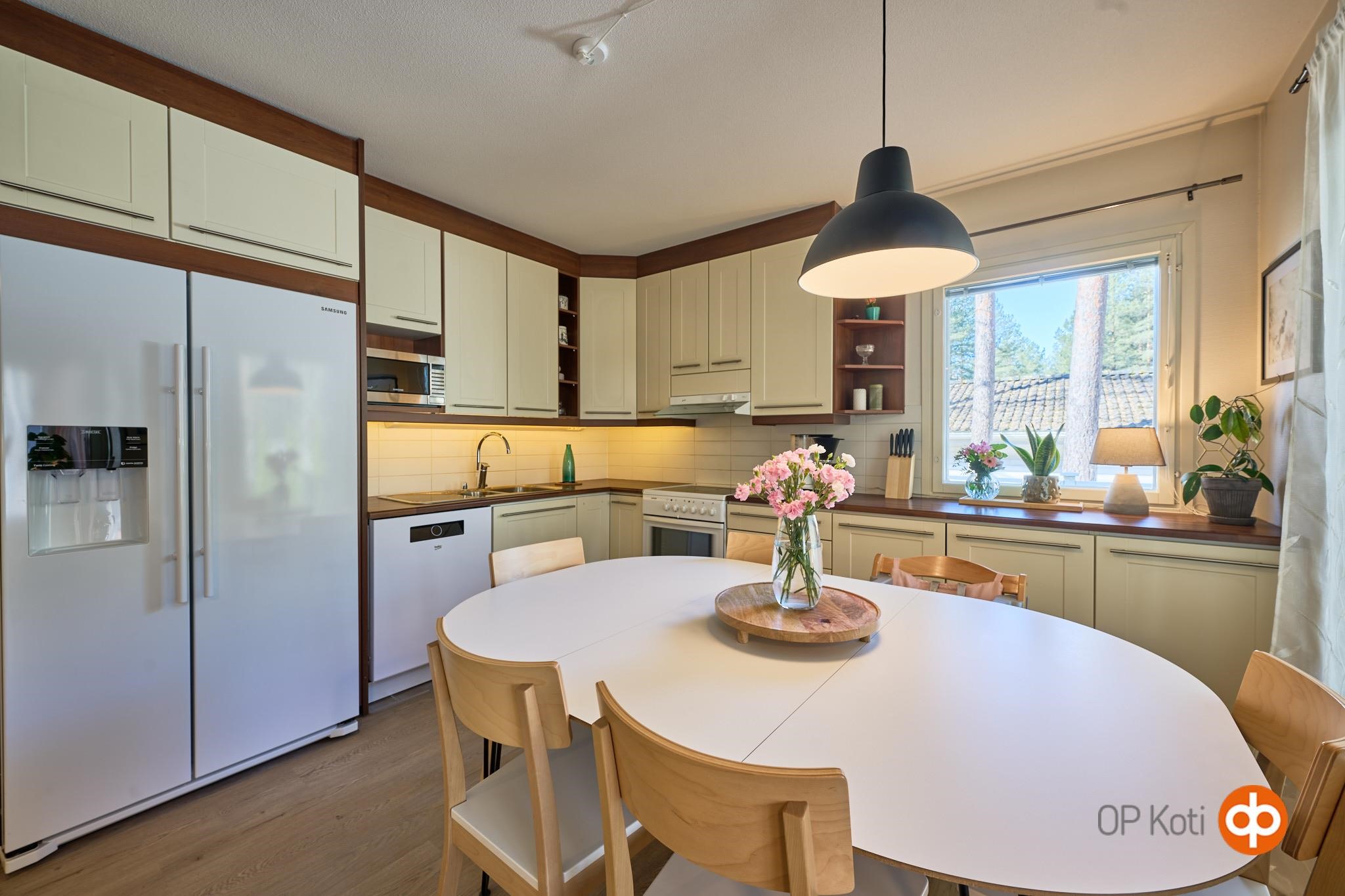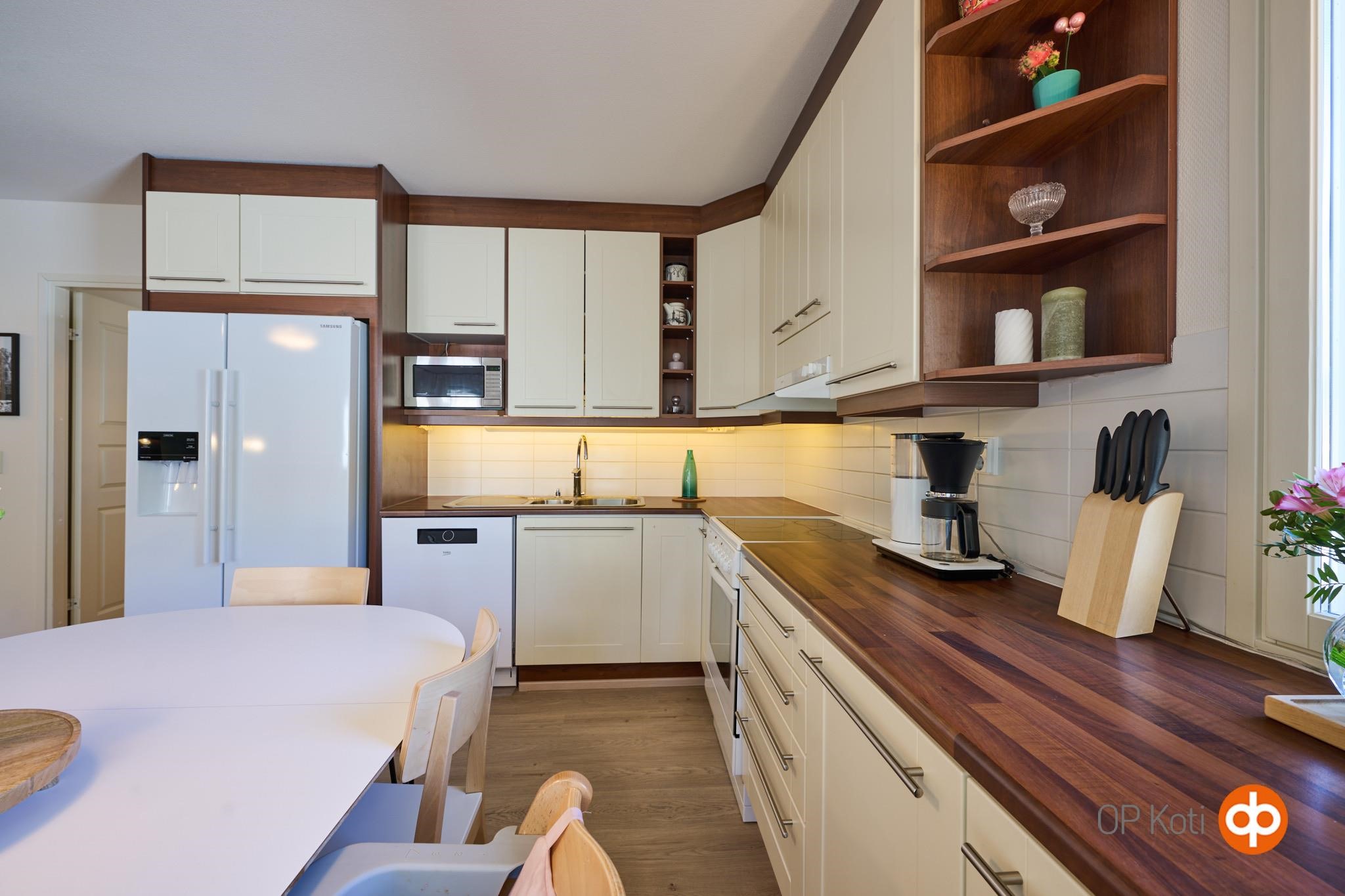 - Jääkaappipakastin, keraaminen liesi, liesituuletin, astianpesukone 2022 uusittu, kaapistot, kiinteät valaisimet.