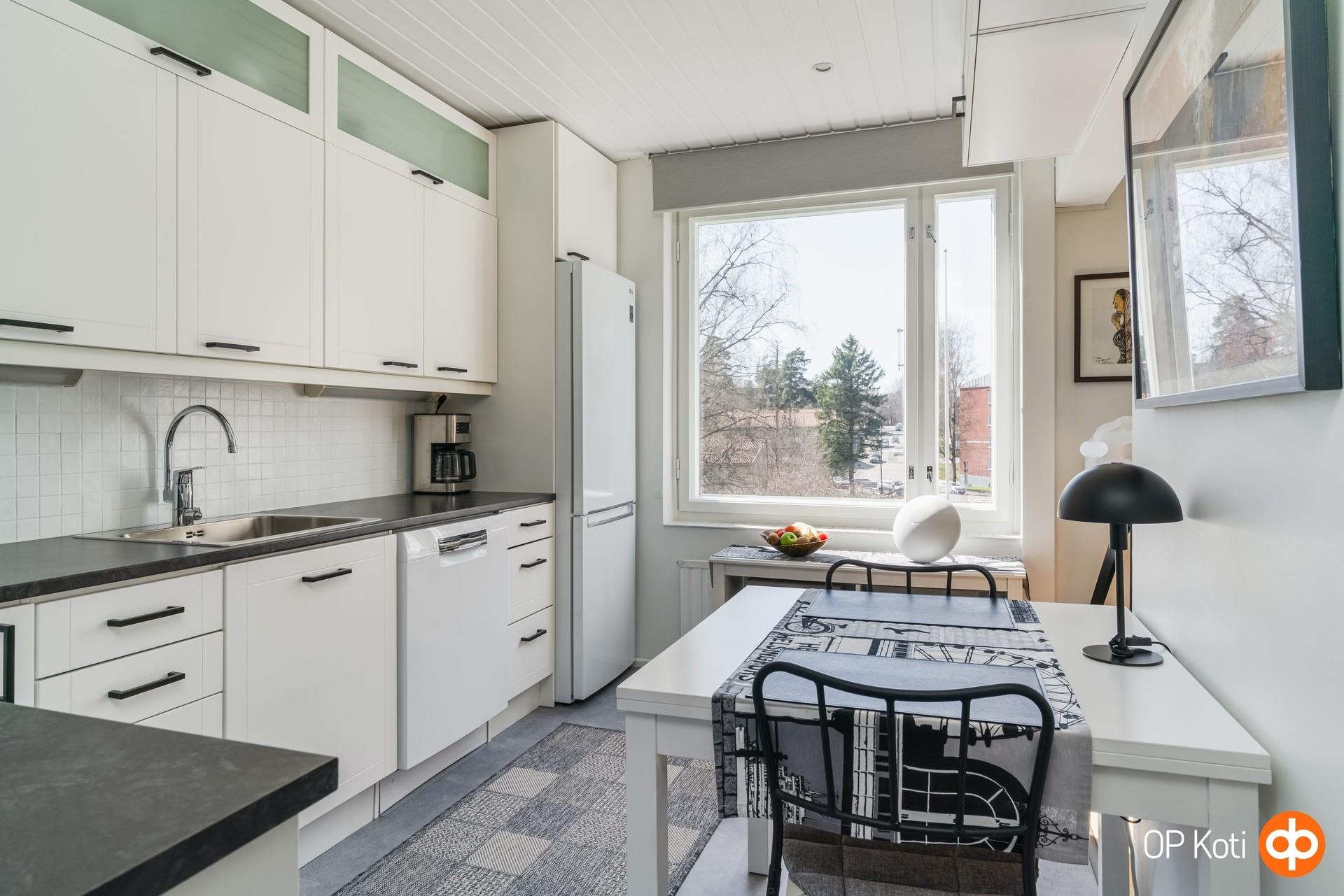 Pohjaratkaisu on käytännöllinen ja toimiva: iso olohuone ja tilavat makuuhuoneet. Tyylikästä keittiötä on uudistettu vuonna 2025 ja kylpyhuone on saneerattu vuonna 2015. Tilava vaatehuone tuo aina kaivattua lisäsäilytystilaa. Olohuoneesta on käynti reilunkokoiselle parvekkeelle (2,95X2,0 m), jossa voit nauttia loppupäivän auringosta iltaan asti. 3/4 krs. Hissi.