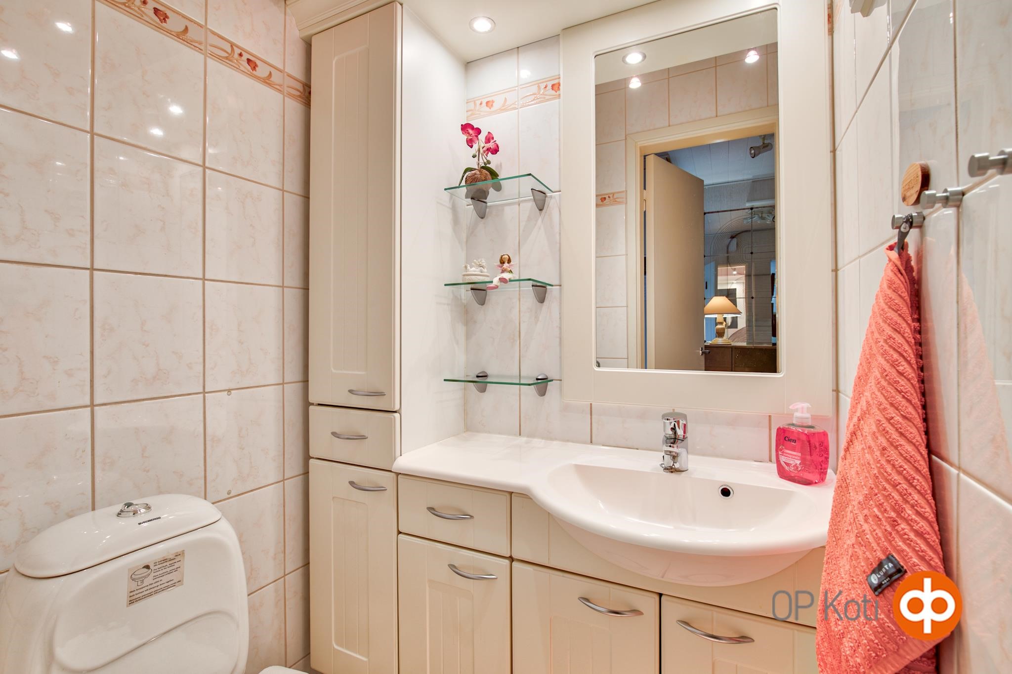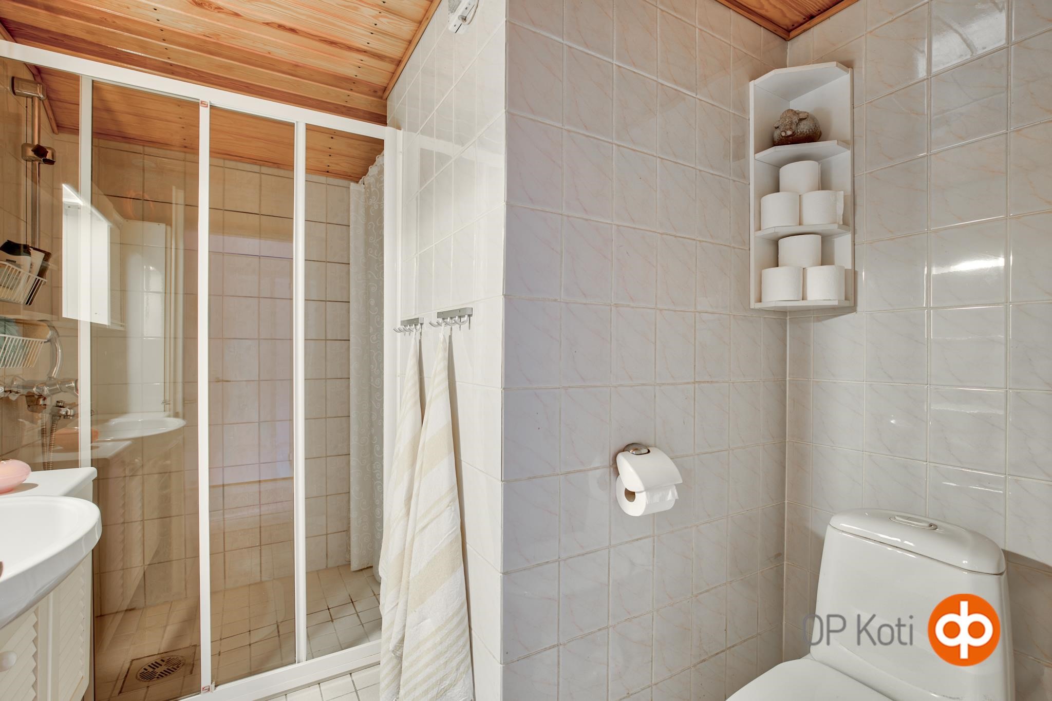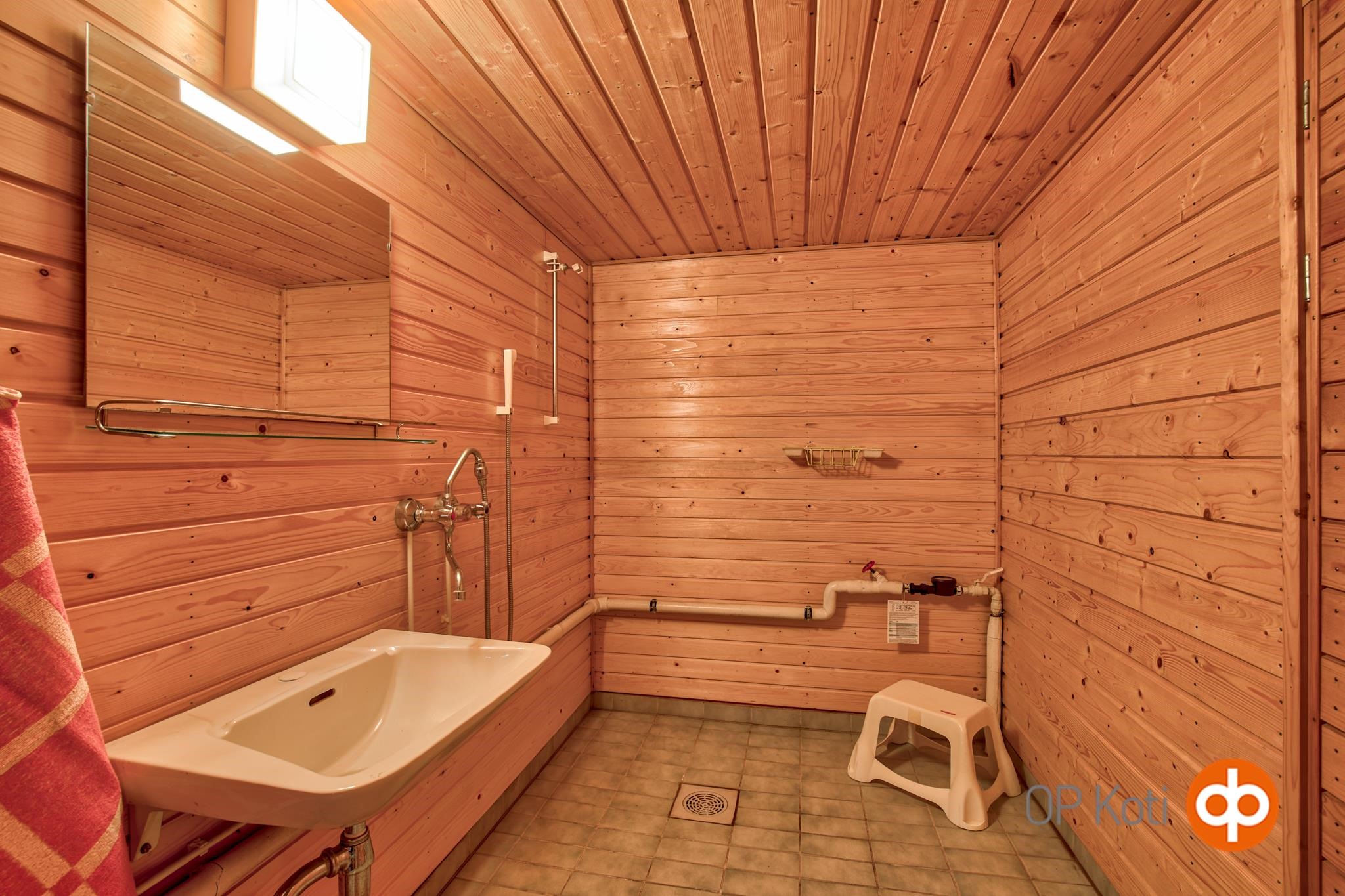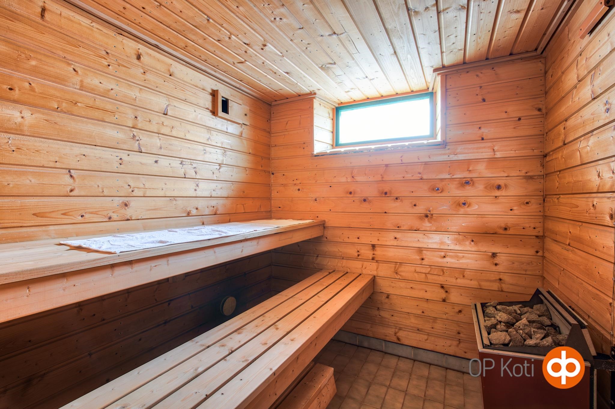 - Sauna, sähkökiuas, kylpyhuone, erillinen wc toinen wc-istuin yläkerran pesuhuoneessa, suihku alakerrassa sekä yläkerrassa, suihkuseinä, peilikaappi, kaapit, pesukoneliitäntä alakerta, kiinteät valaisimet.