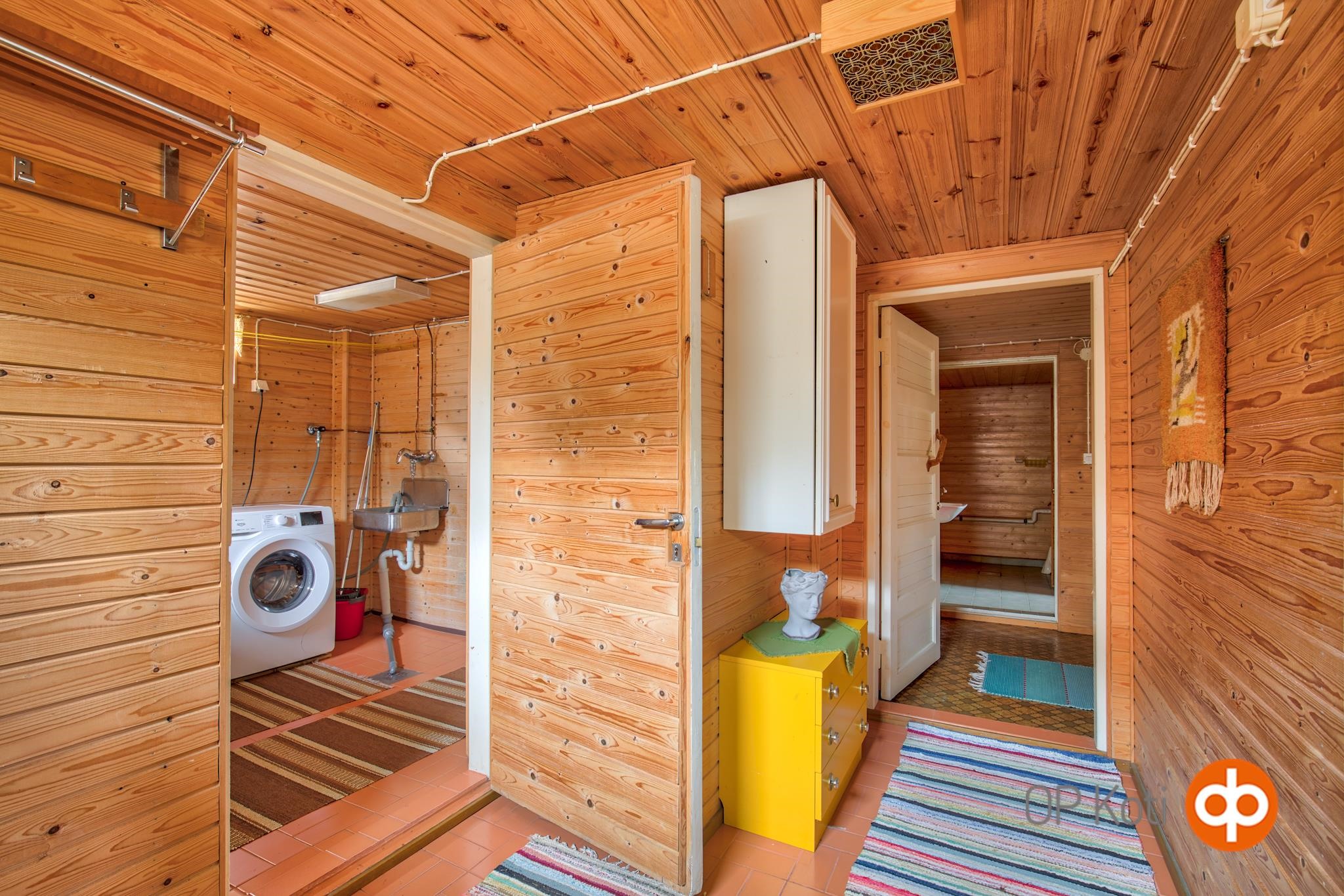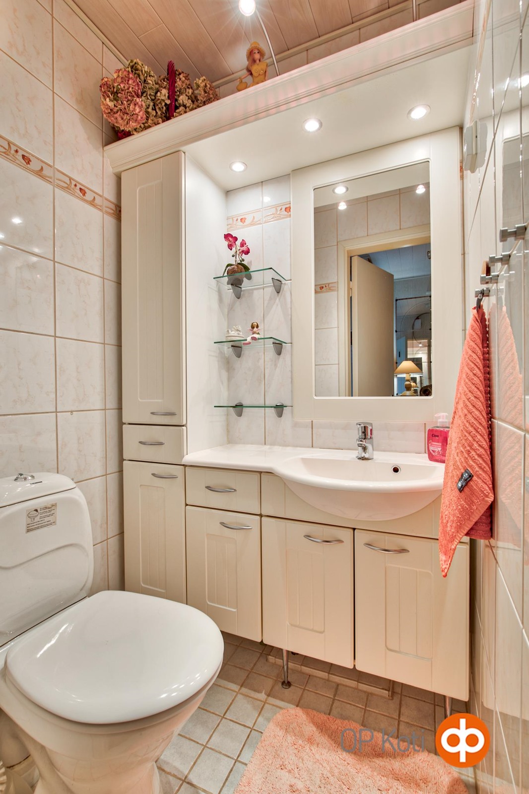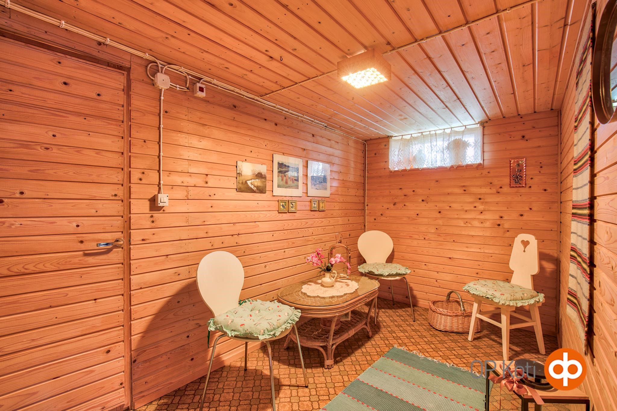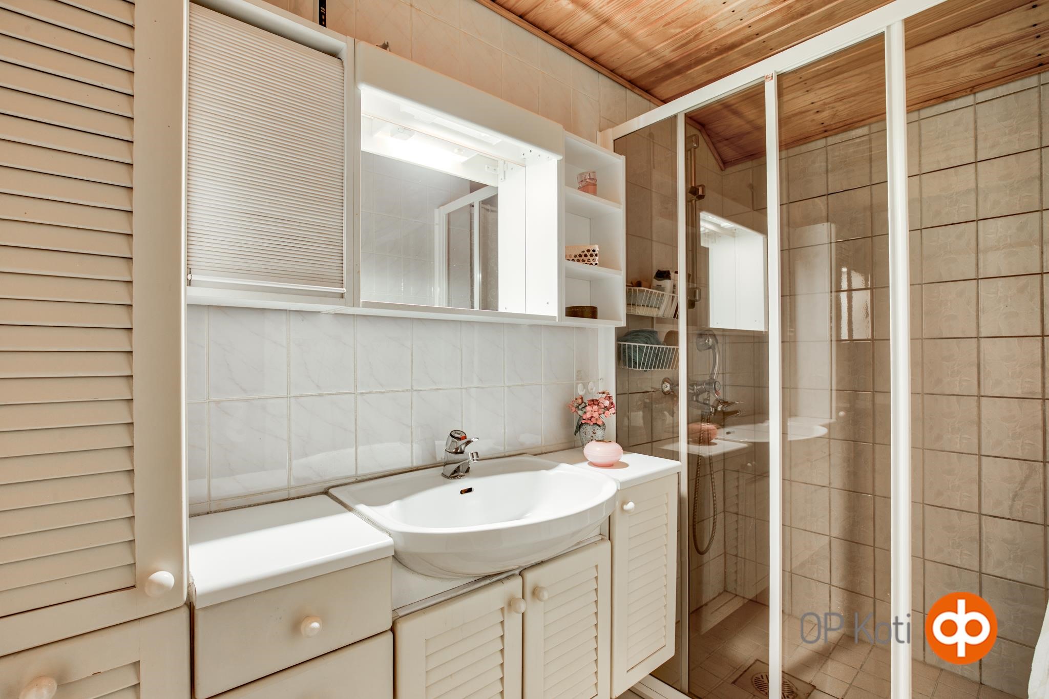- Sauna, sähkökiuas, kylpyhuone, erillinen wc toinen wc-istuin yläkerran pesuhuoneessa, suihku alakerrassa sekä yläkerrassa, suihkuseinä, peilikaappi, kaapit, pesukoneliitäntä alakerta, kiinteät valaisimet.