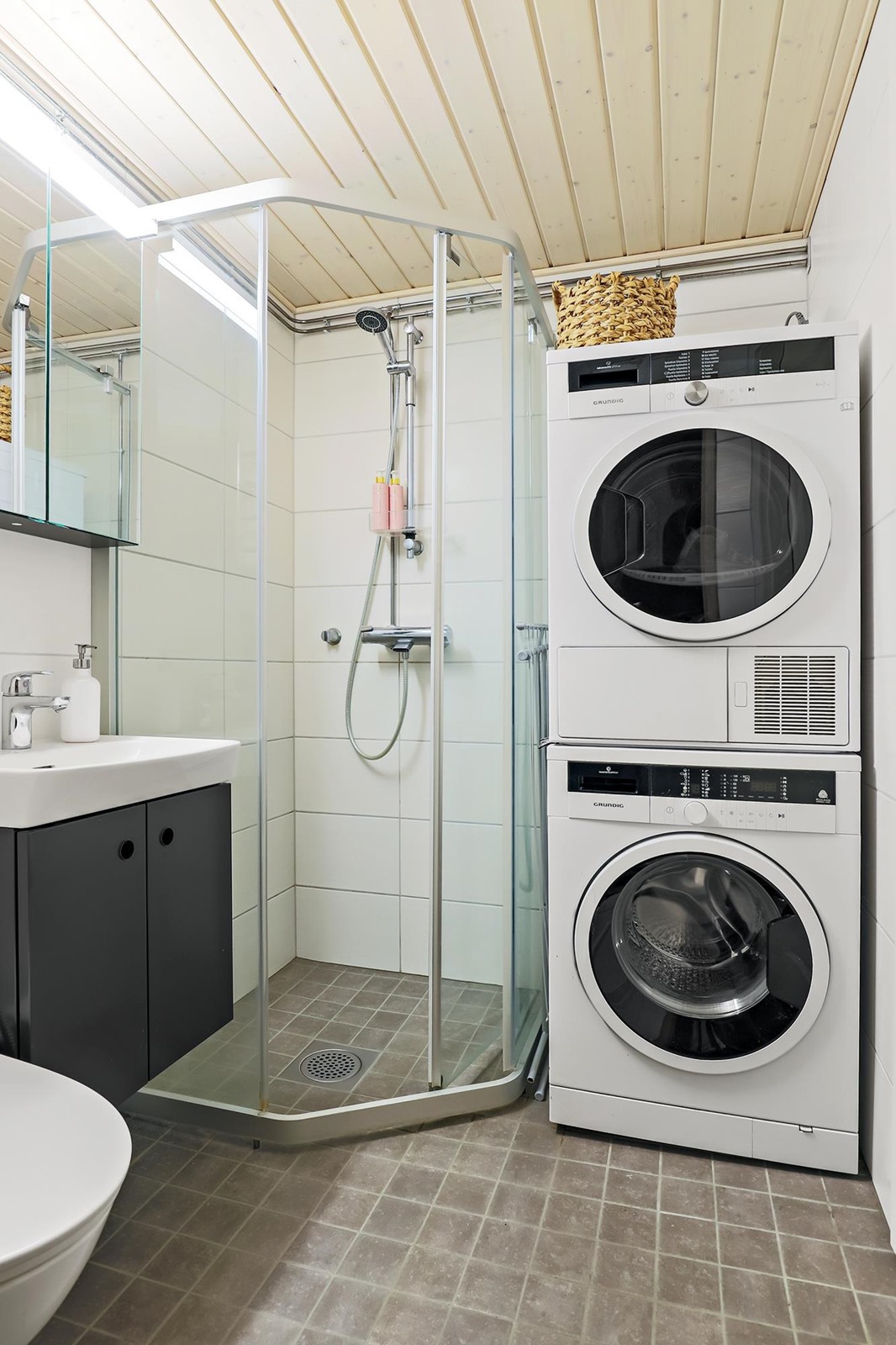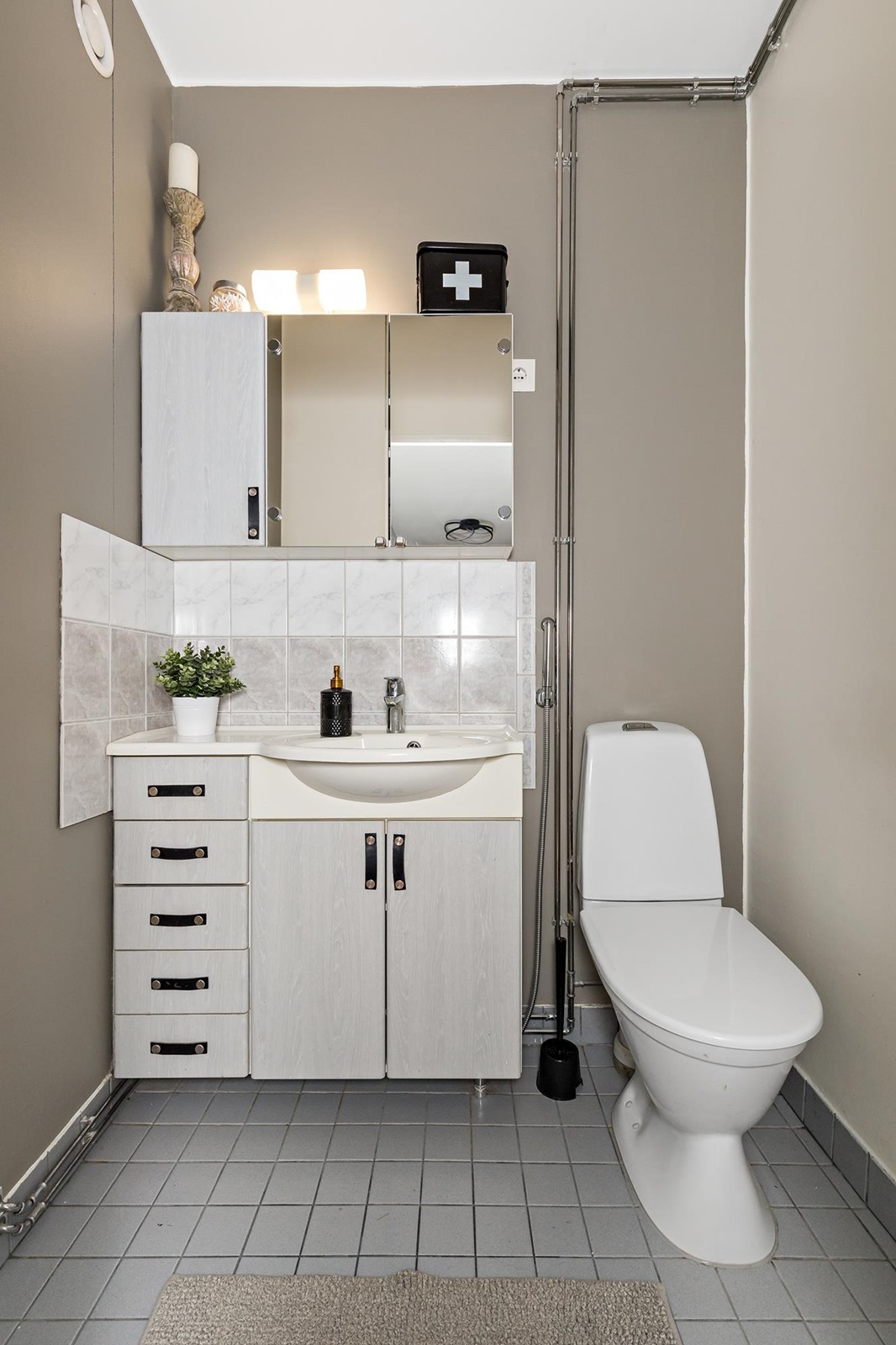 - Sauna, sähkökiuas, kylpyhuone, erillinen wc, suihkuseinä kehikko, peilikaappi 2, kaapit, allaskaappi 2, pesukoneliitäntä kph, kiinteät valaisimet.