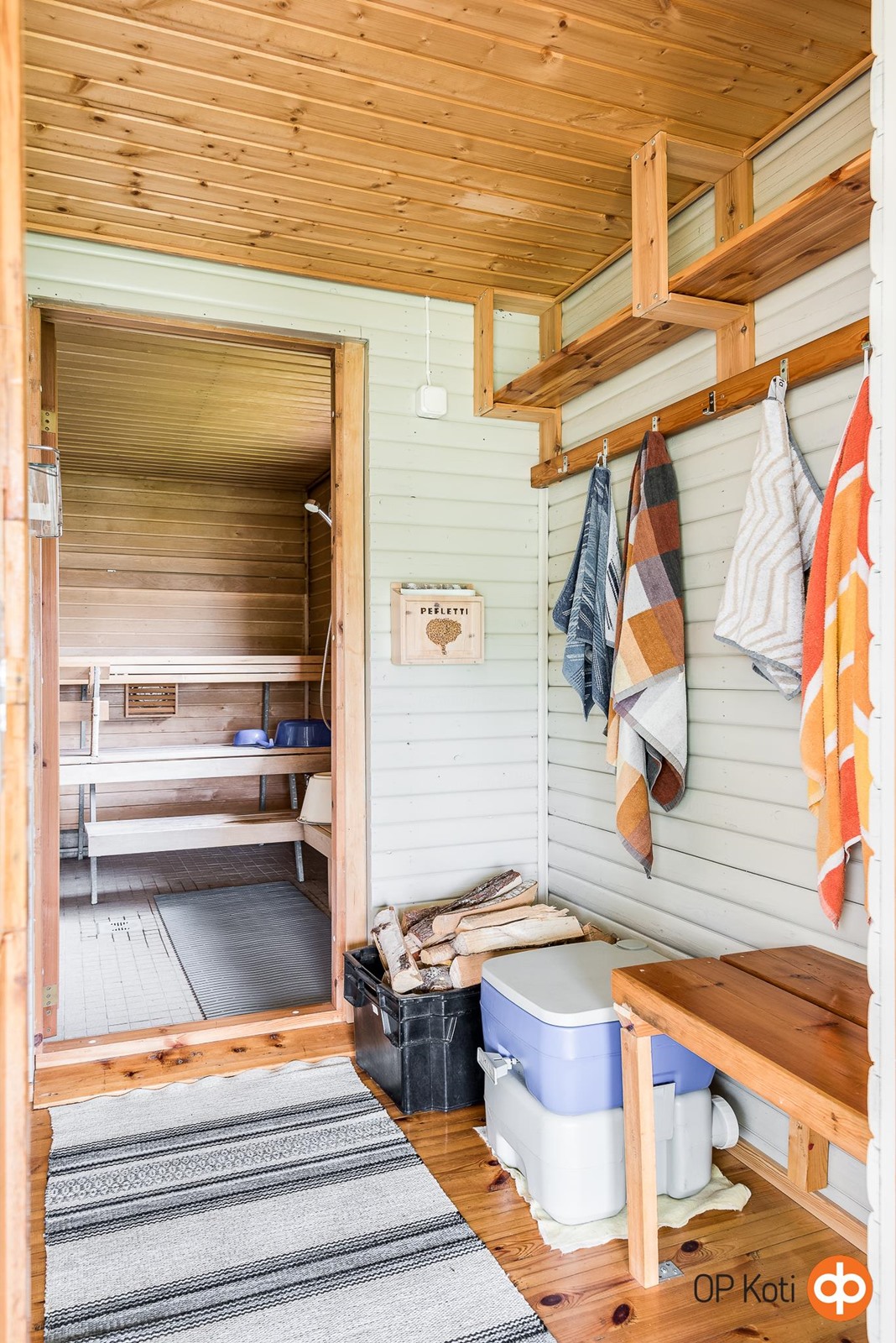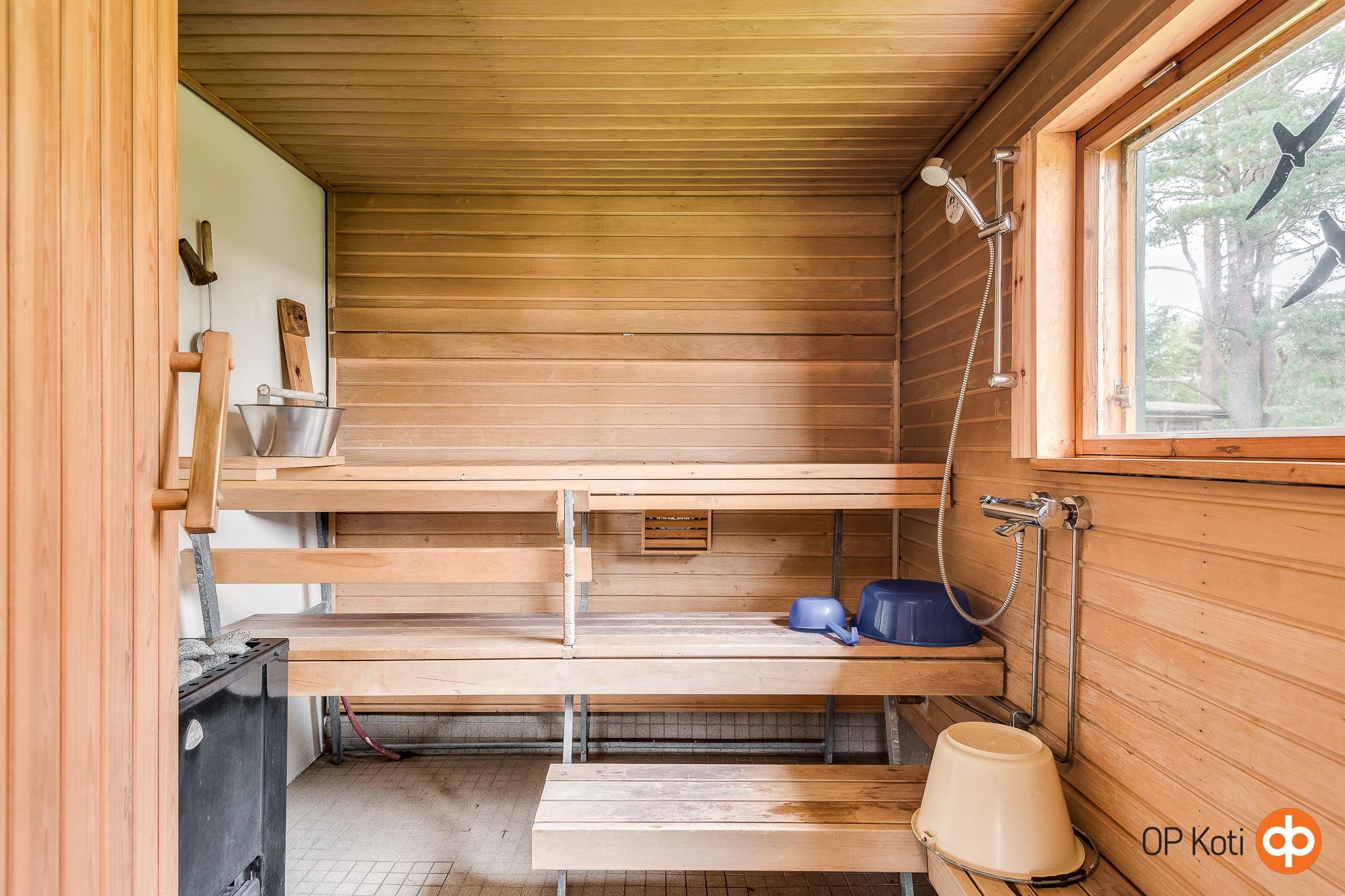 - Sauna, puukiuas, suihku, kiinteät valaisimet.