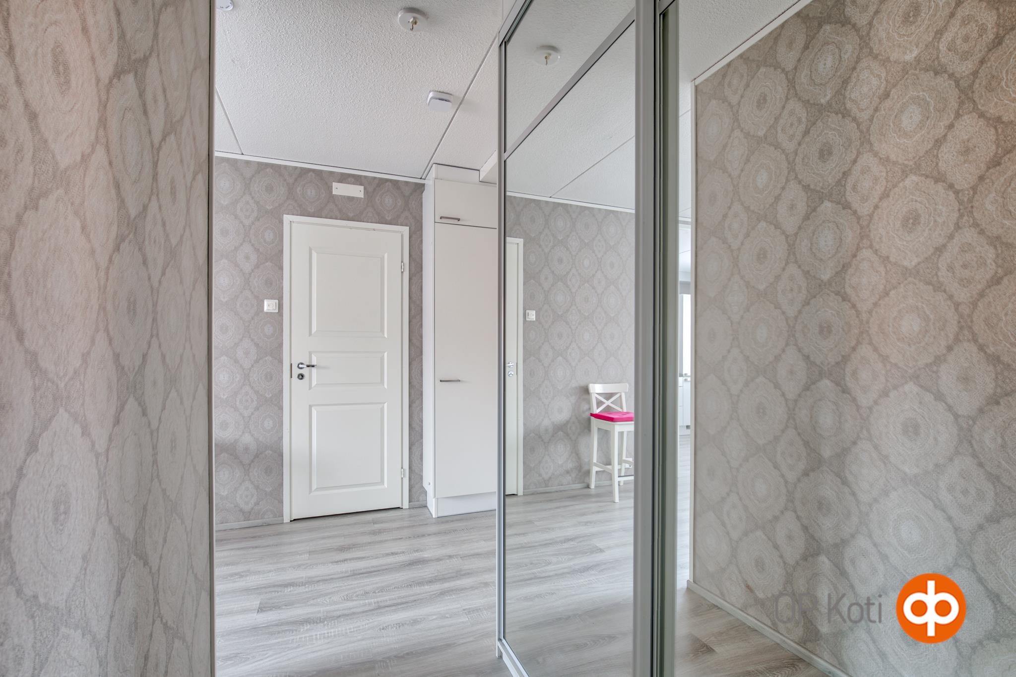 Keittiö: maalatut seinät, laminaatti. Olohuone: tapetti, laminaatti. Makuuhuone 1: tapetti, laminaatti. Kylpyhuone: laatta, laatta.