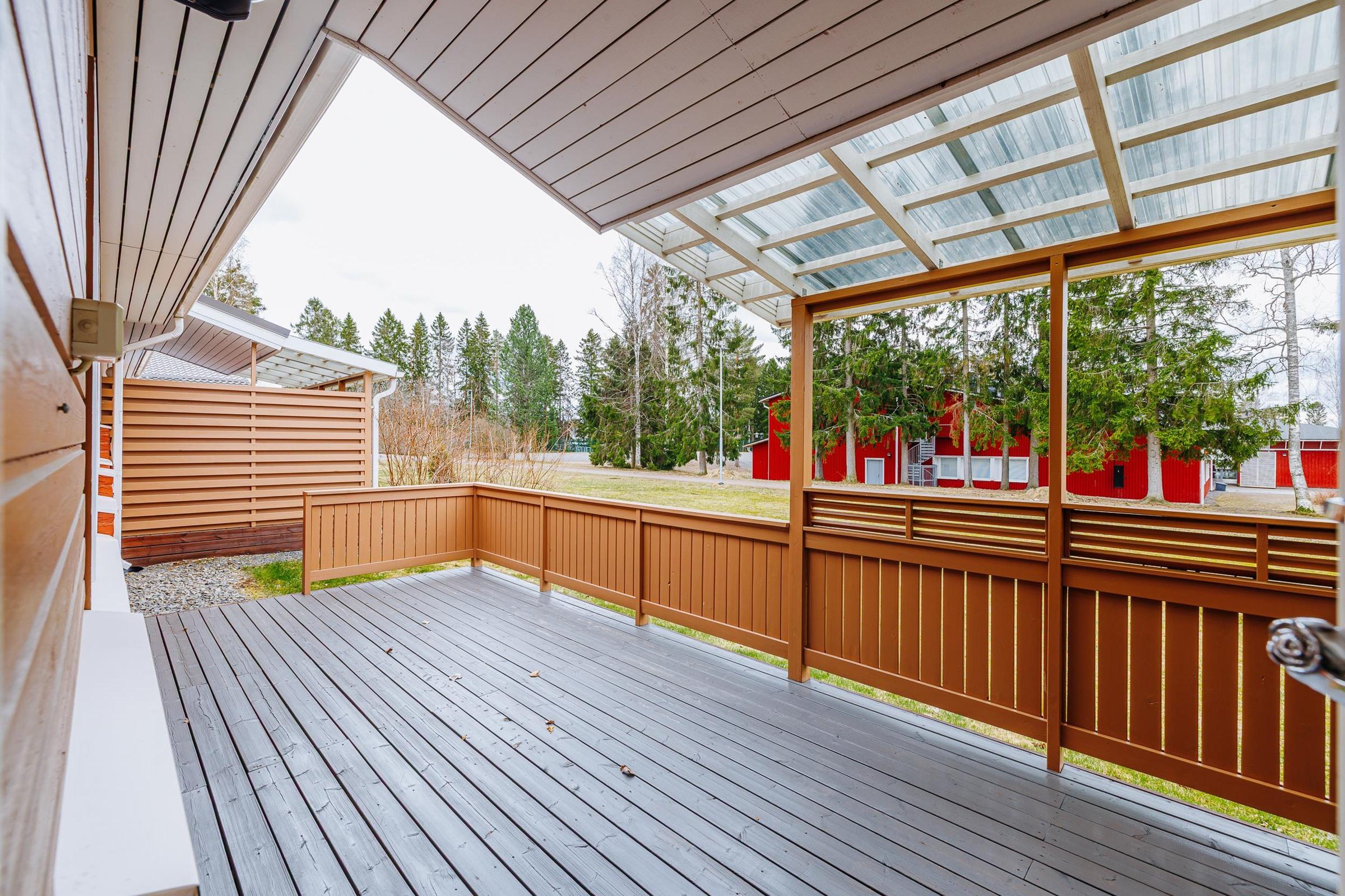 Asunnon kruunaa lähes koko huoneiston levyinen terassi, jossa voit nauttia rauhallisista näkymistä ja auringonpaisteesta pitkin päivää. Tämä on täydellinen paikka aamukahville, oleskeluun tai vaikka kesäillan illanviettoon.