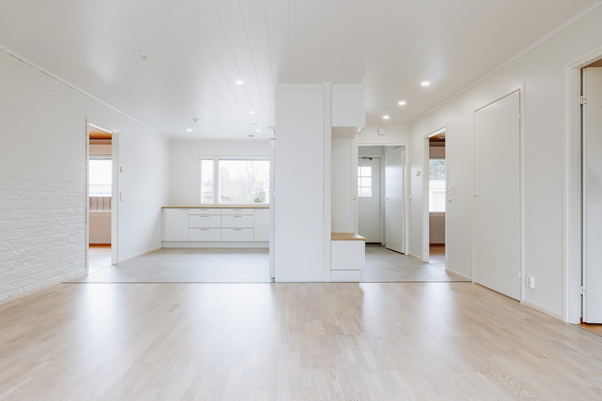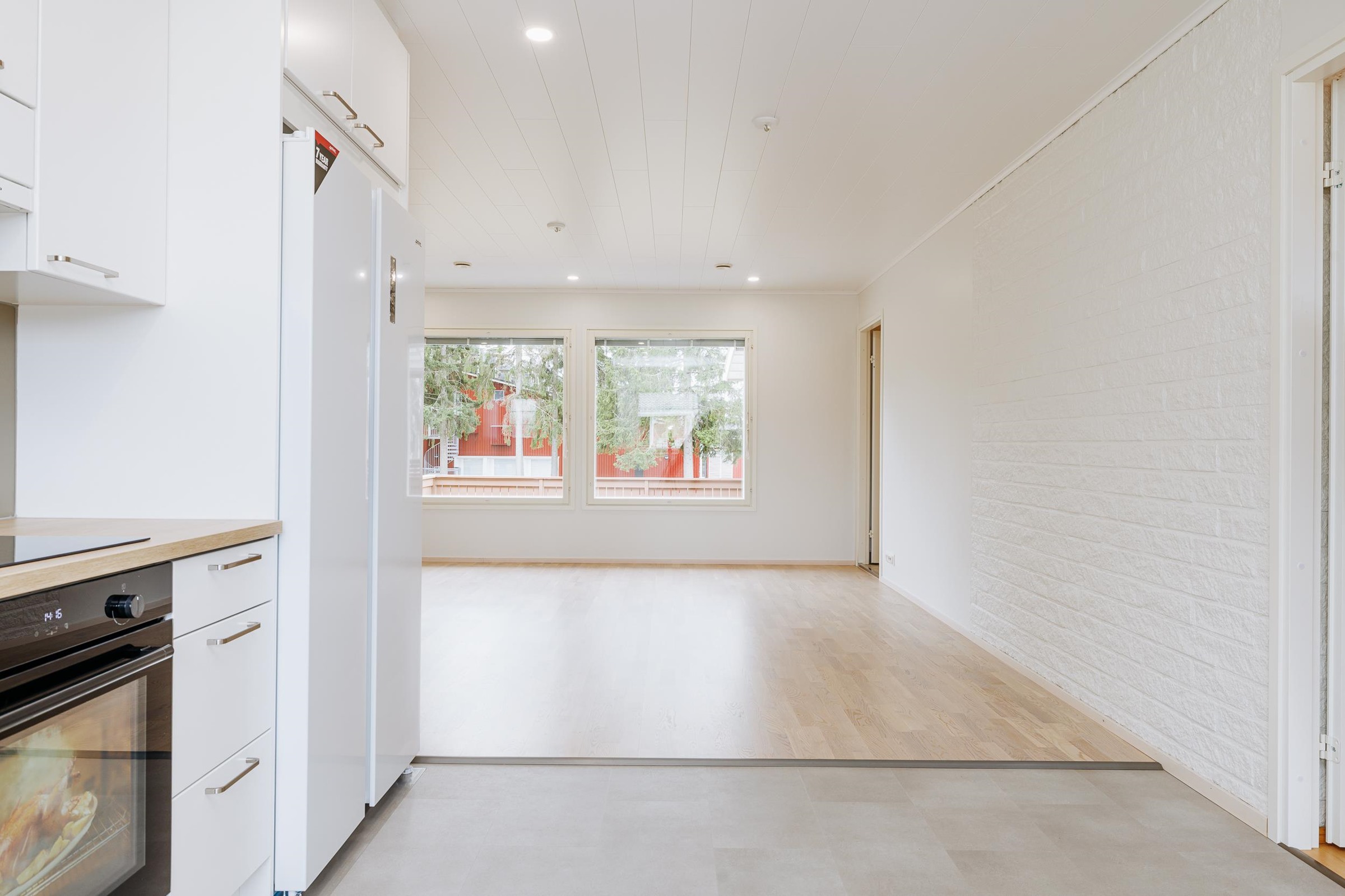 Kodissa on neljä huonetta, joista avara olohuone toimii luonnollisena koko perheen kohtaamispaikkana. Olohuone yhdistyy saumattomasti juuri remontoituun, moderniin keittiöön, luoden yhtenäisen ja viihtyisän oleskelutilan.