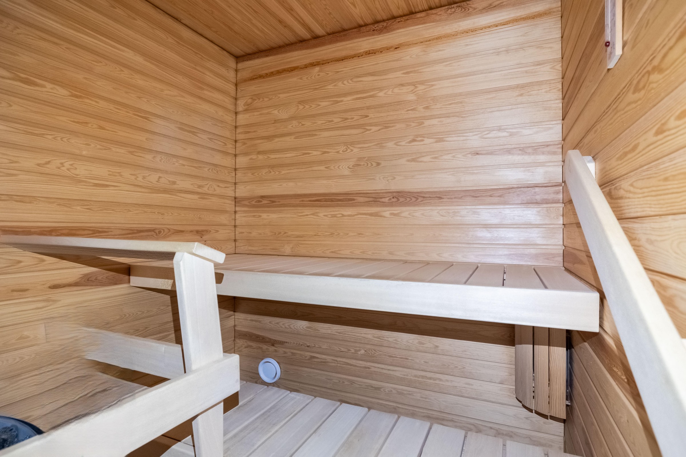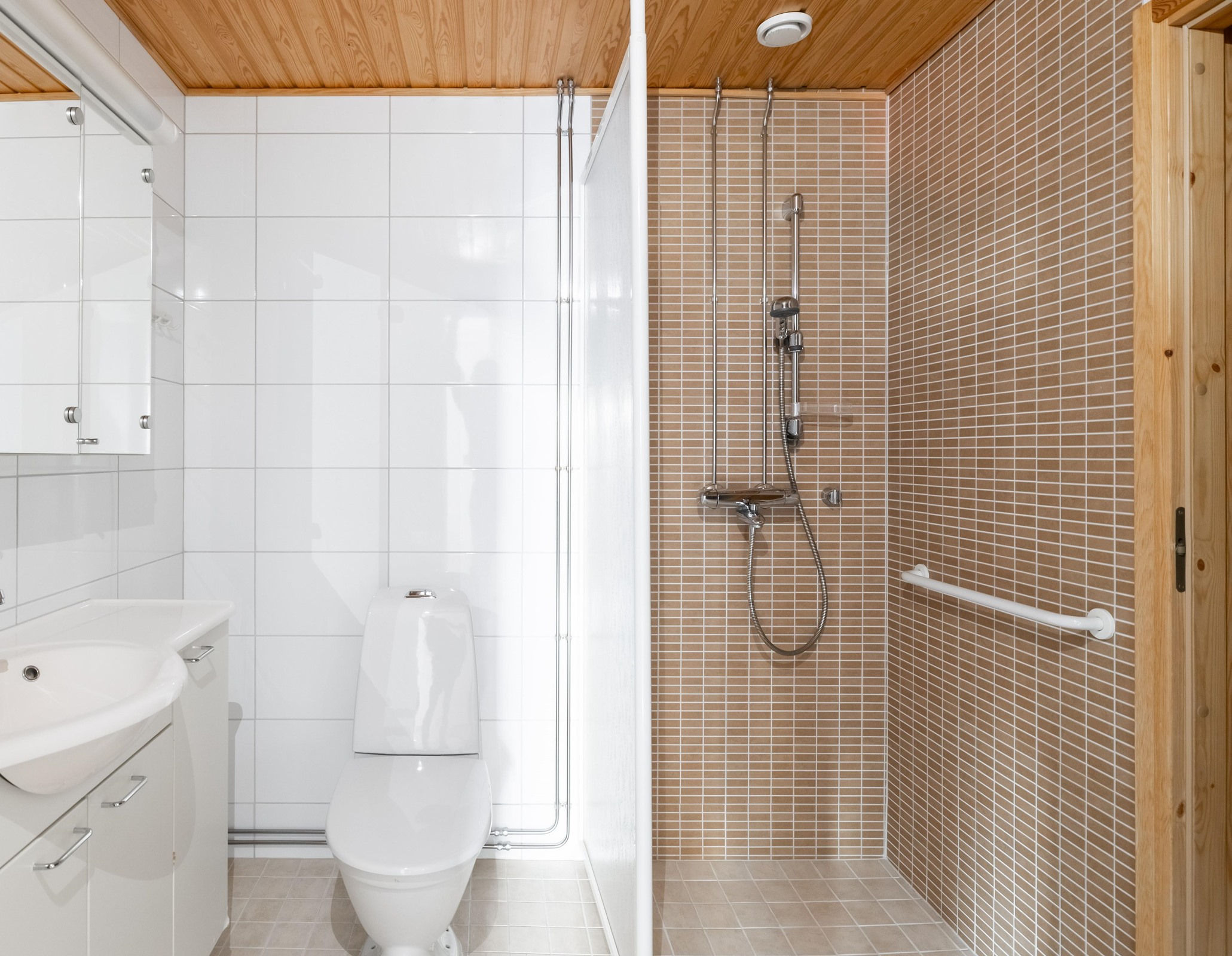 - Sauna, sähkökiuas, kylpyhuone, suihku, suihkuseinä, peilikaappi, allaskaappi, pesukoneliitäntä, lattialämmitys.