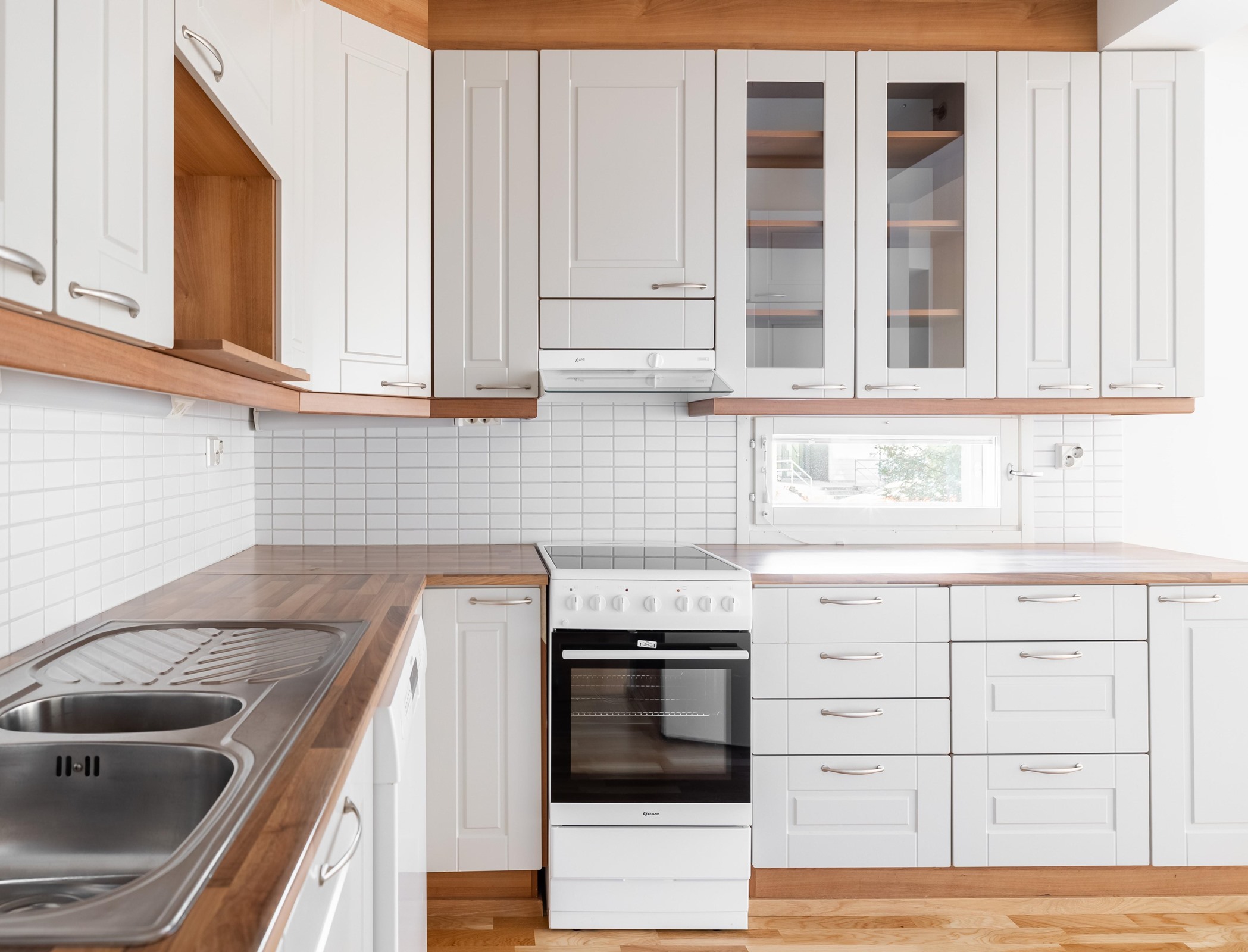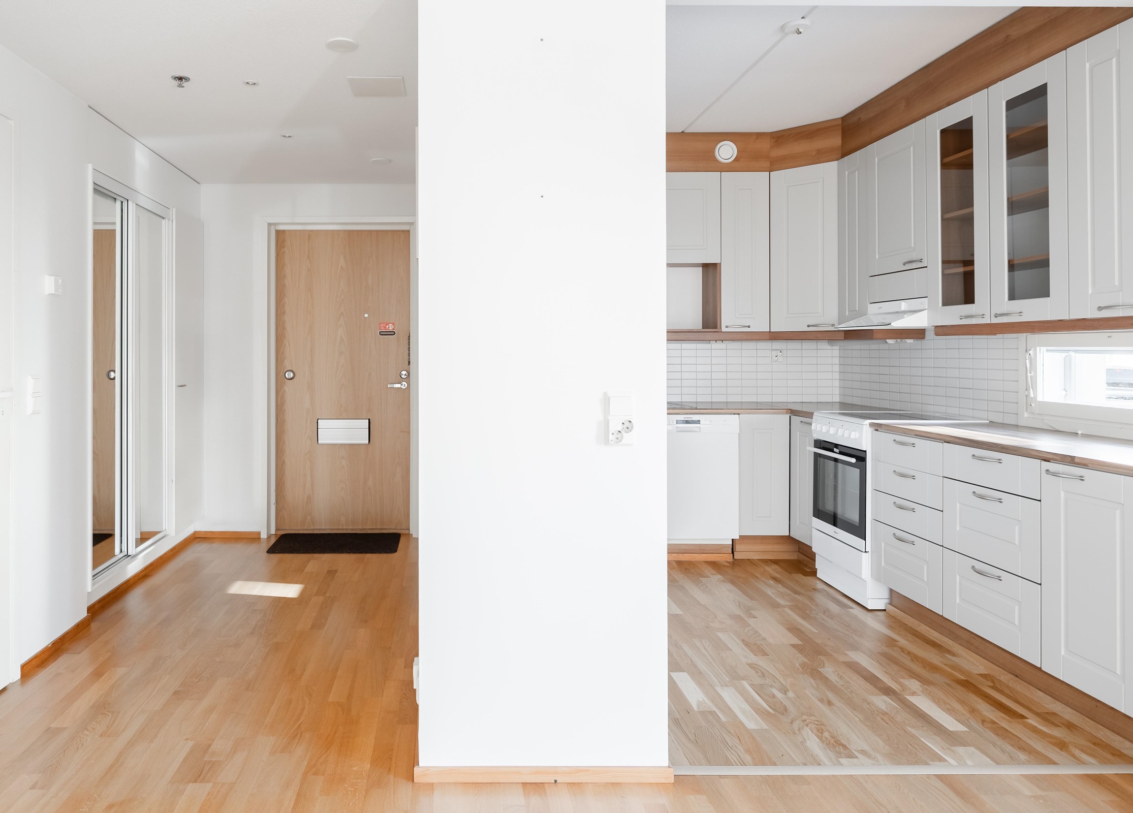 - Jääkaappipakastin, keraaminen liesi, liesituuletin, astianpesukone, kaapistot.