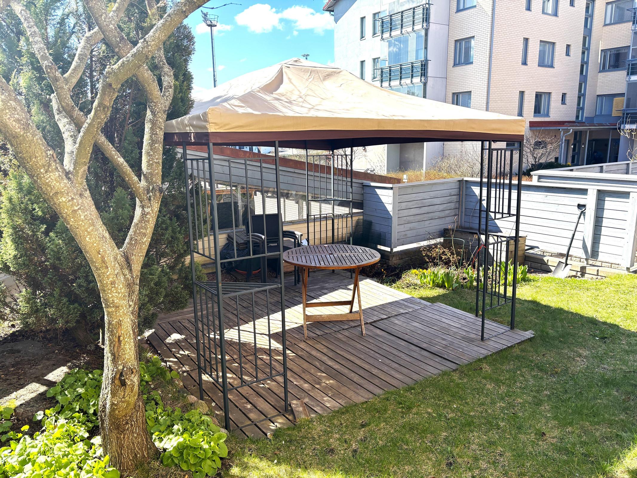 - Suojaisa lasitettu parveke talon etelä päädyssä, josta näkymät aidatulle piha-alueelle.