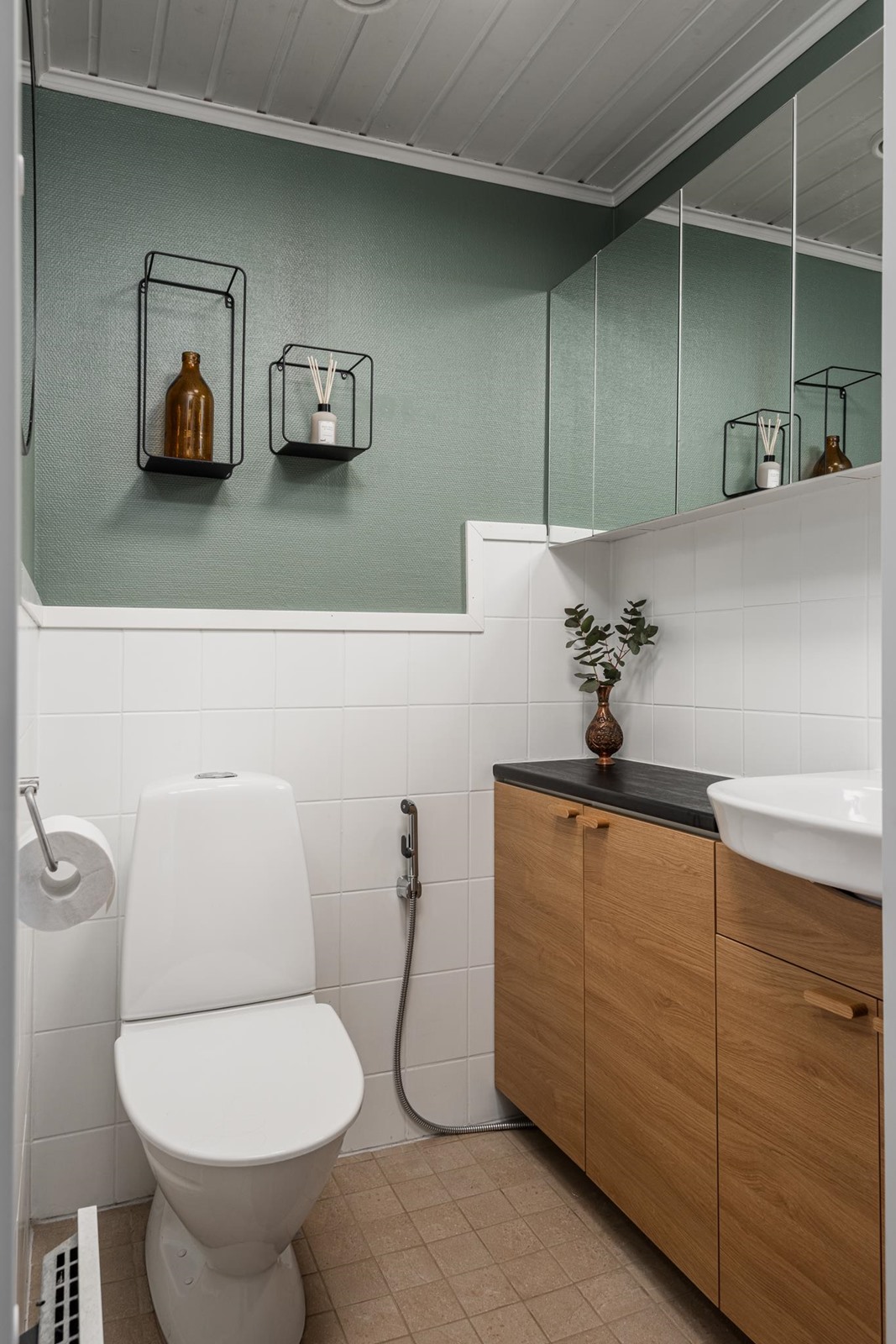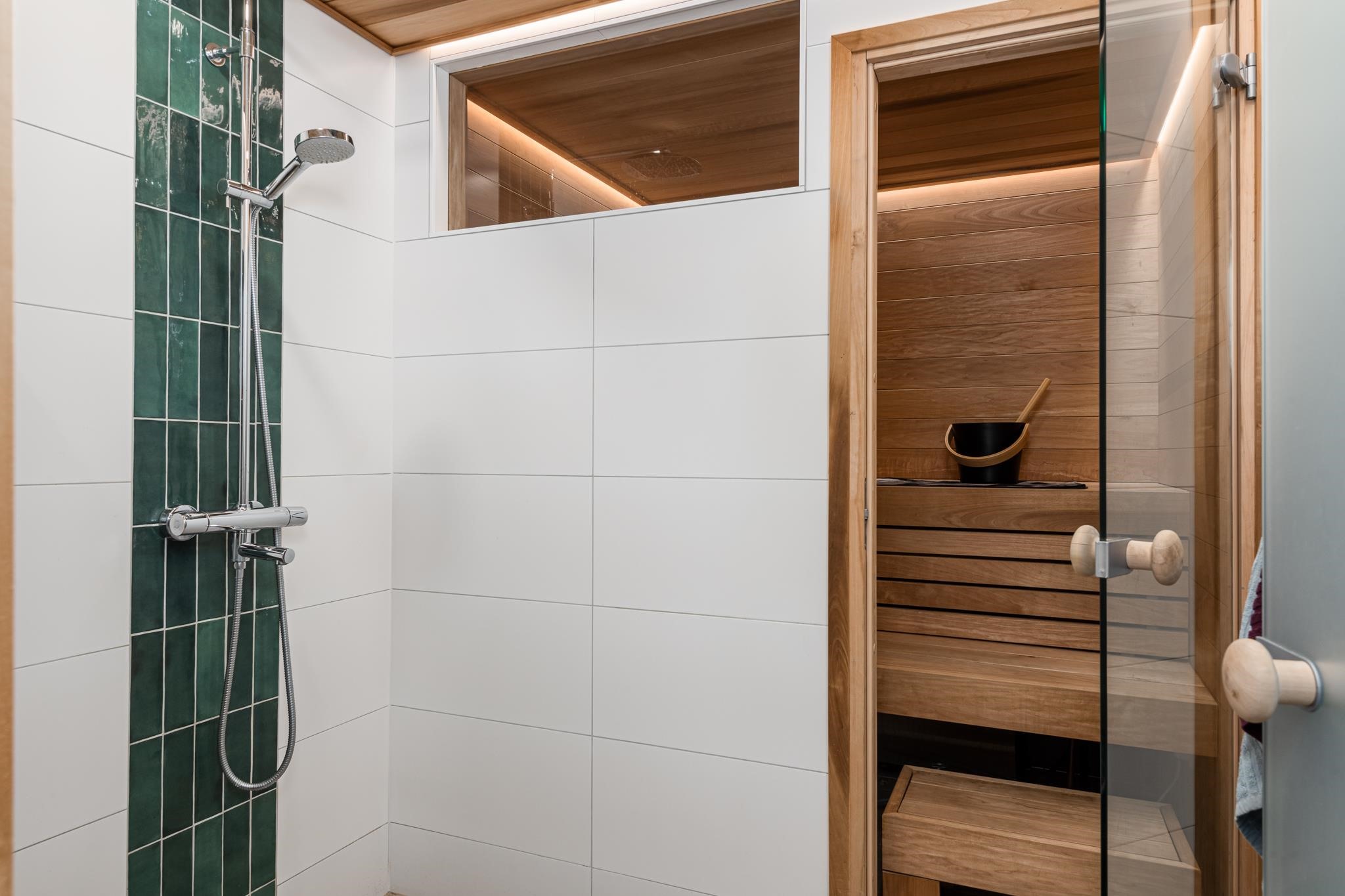 - Sauna, sähkökiuas, kylpyhuone, erillinen wc, peilikaappi, allaskaappi, pesukoneliitäntä, lattialämmitys, kiinteät valaisimet.